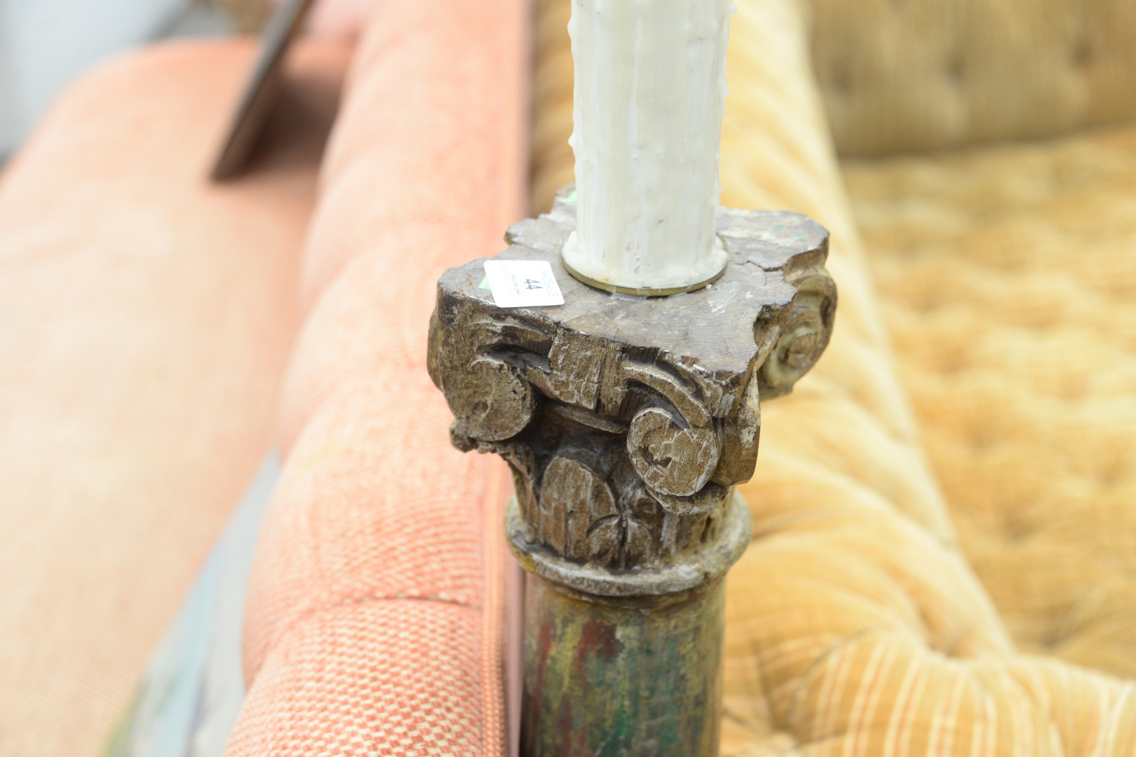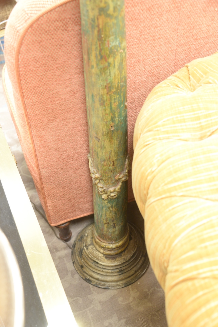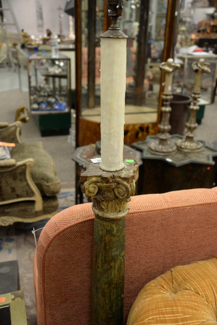 Continental Floor Lamp, carved and painted, in the form of a column, total height 60 inches.