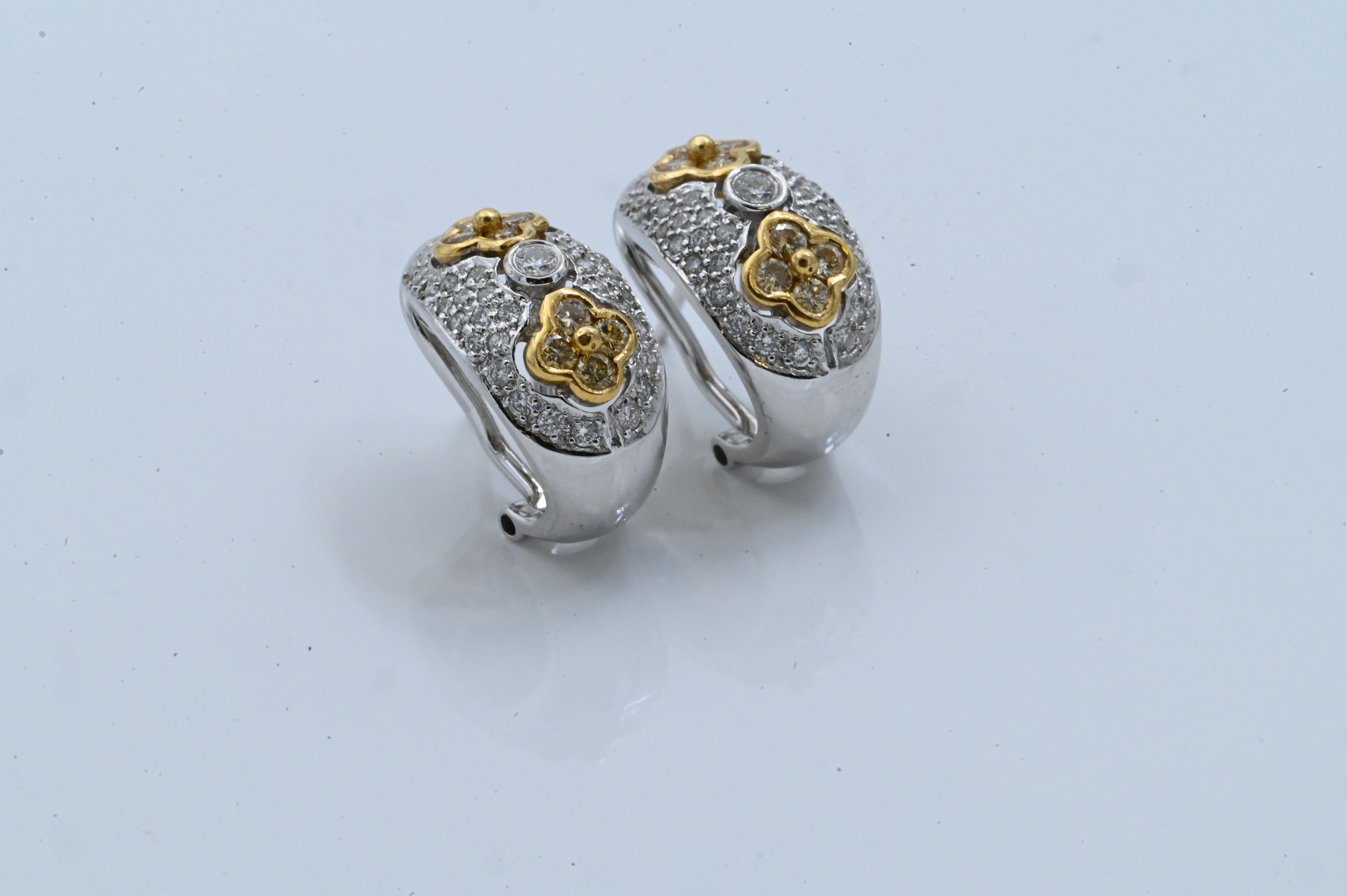 Lot 44: Pair of 18K White and Yellow Gold Earring