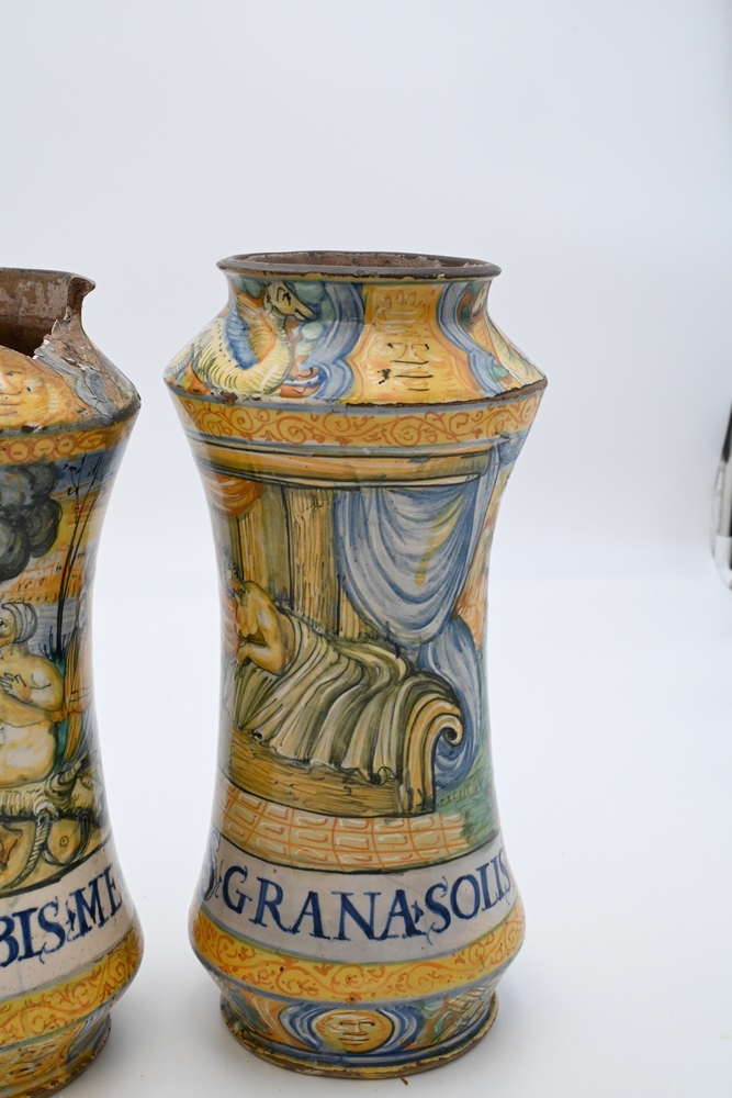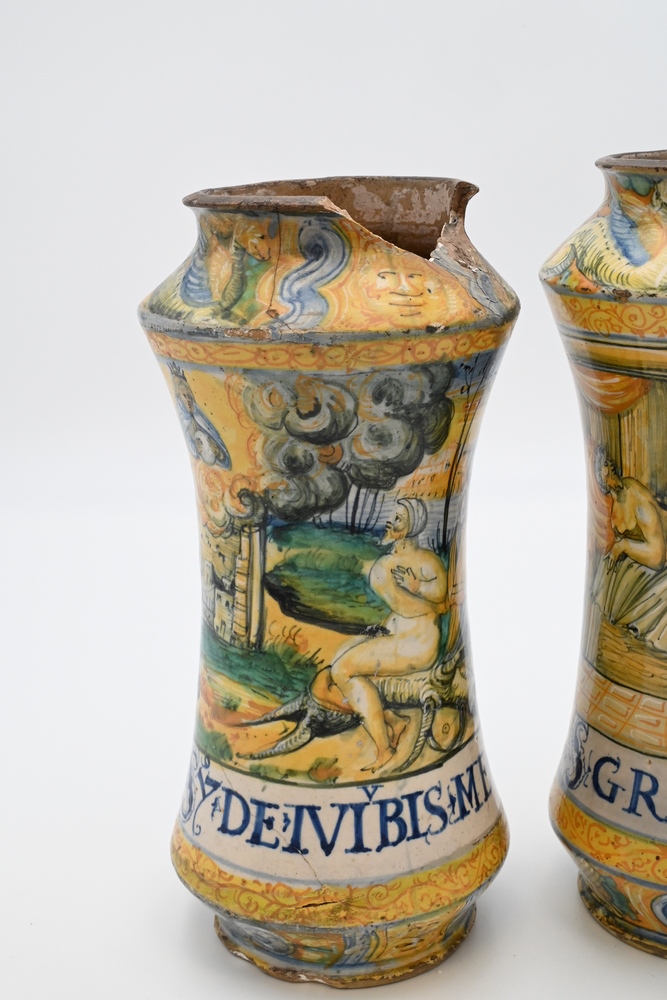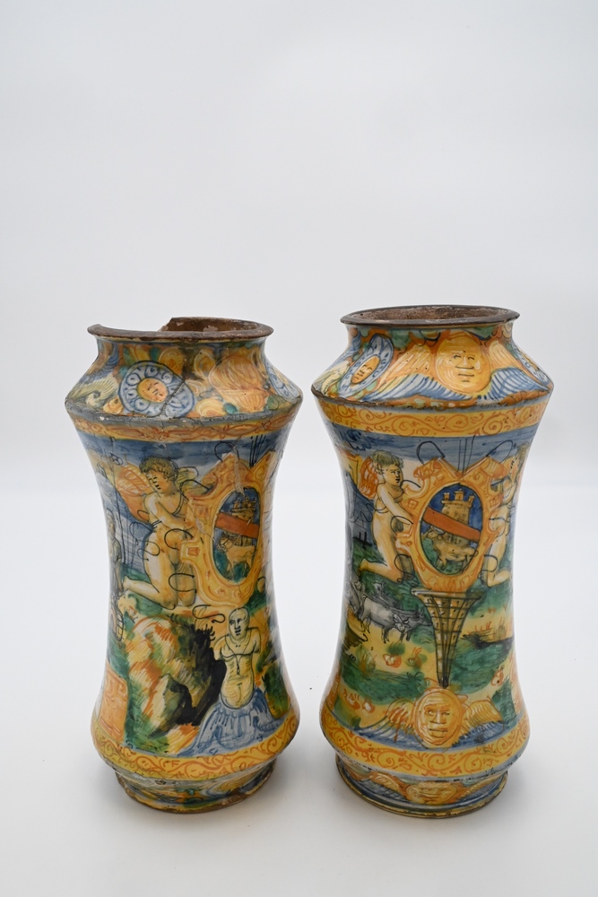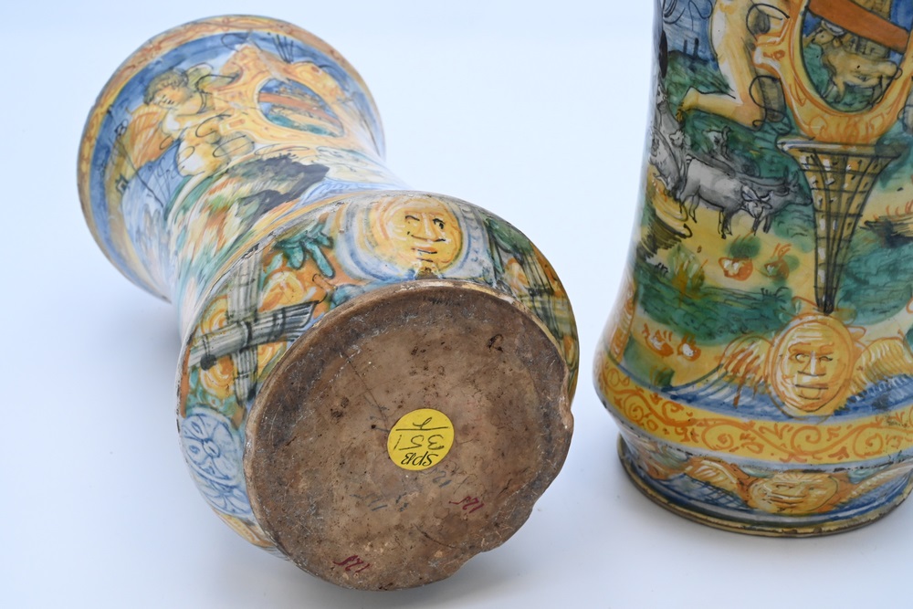 Lot 44: Pair of Majolica Polychrome Decorated Vessels
