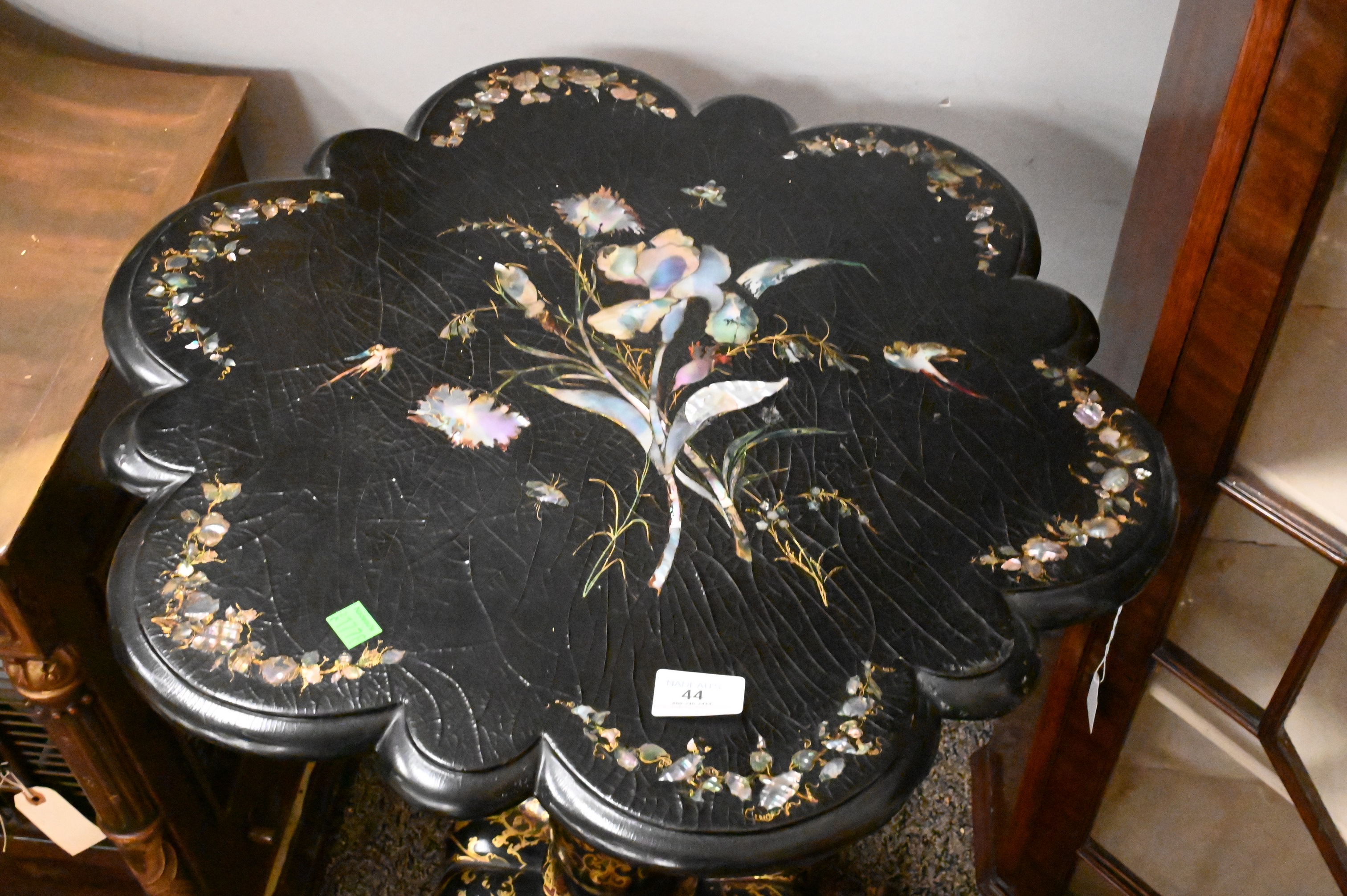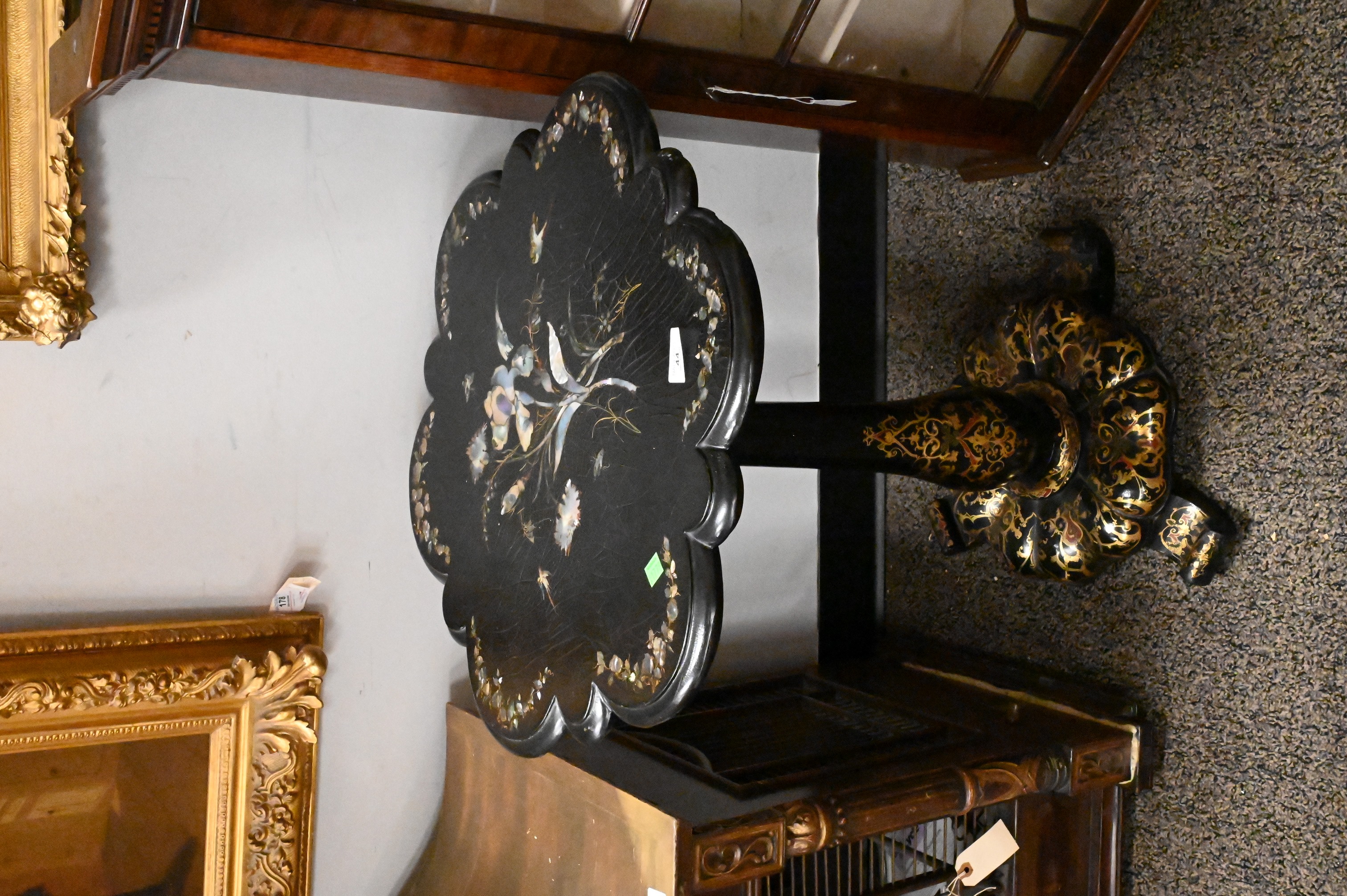 having shaped top with mother of pearl inlaid flowers, butterflies, and birds
