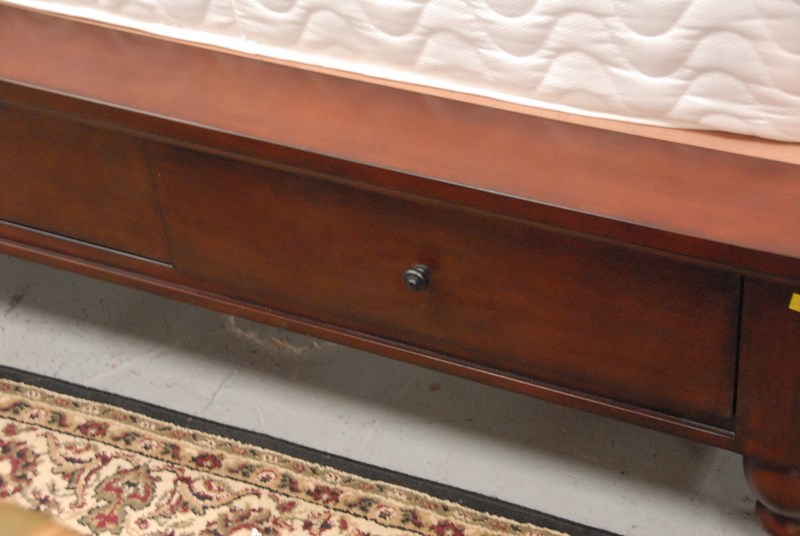 Queen size bed with two drawer storage, ht. 56in. lg. 90 in.