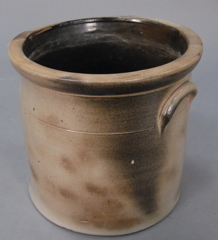 Lot 44: Stoneware four gallon crock with blue bird. ht. 11in. From the collection of Thomas and Alice Kugelman