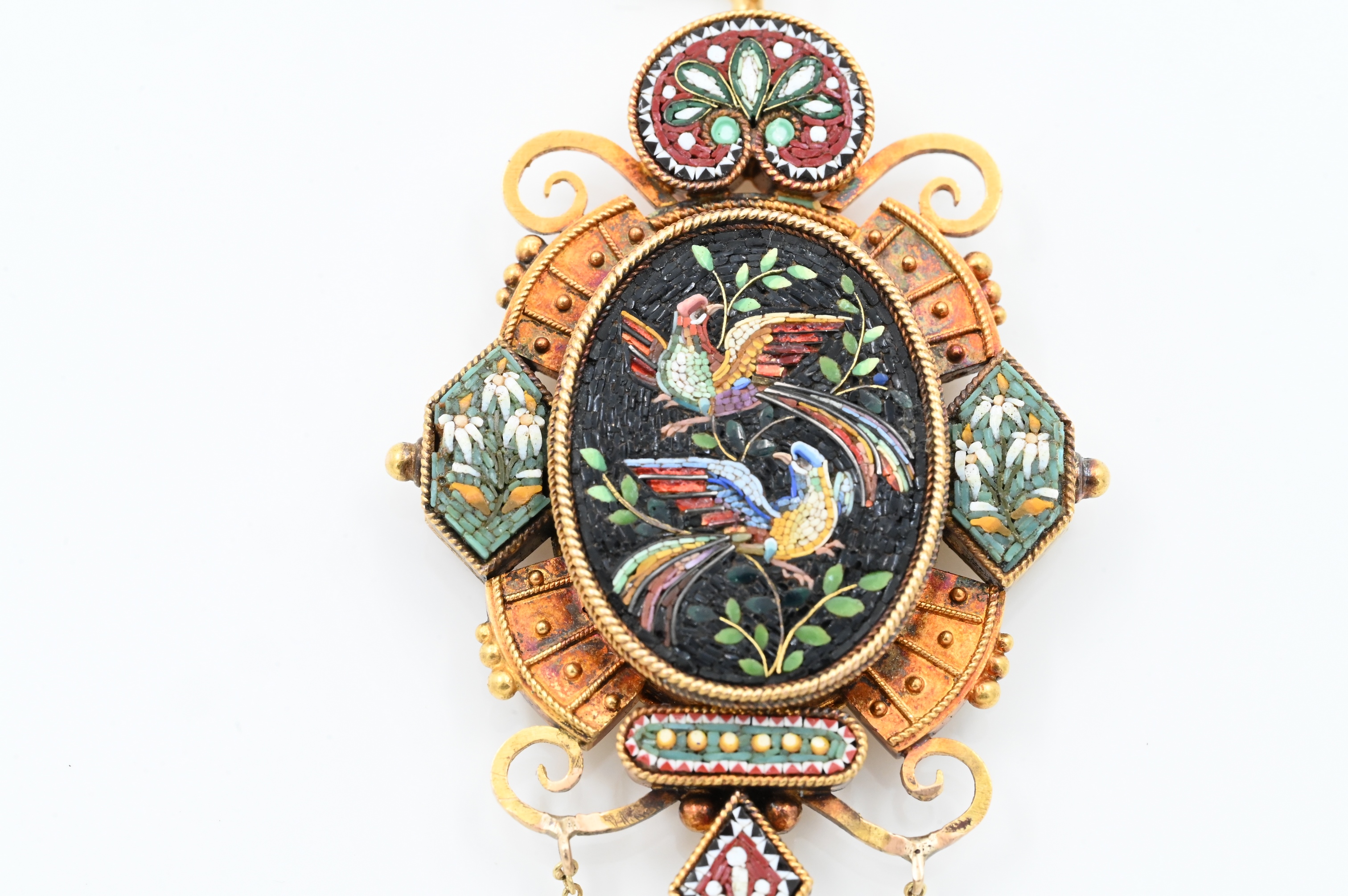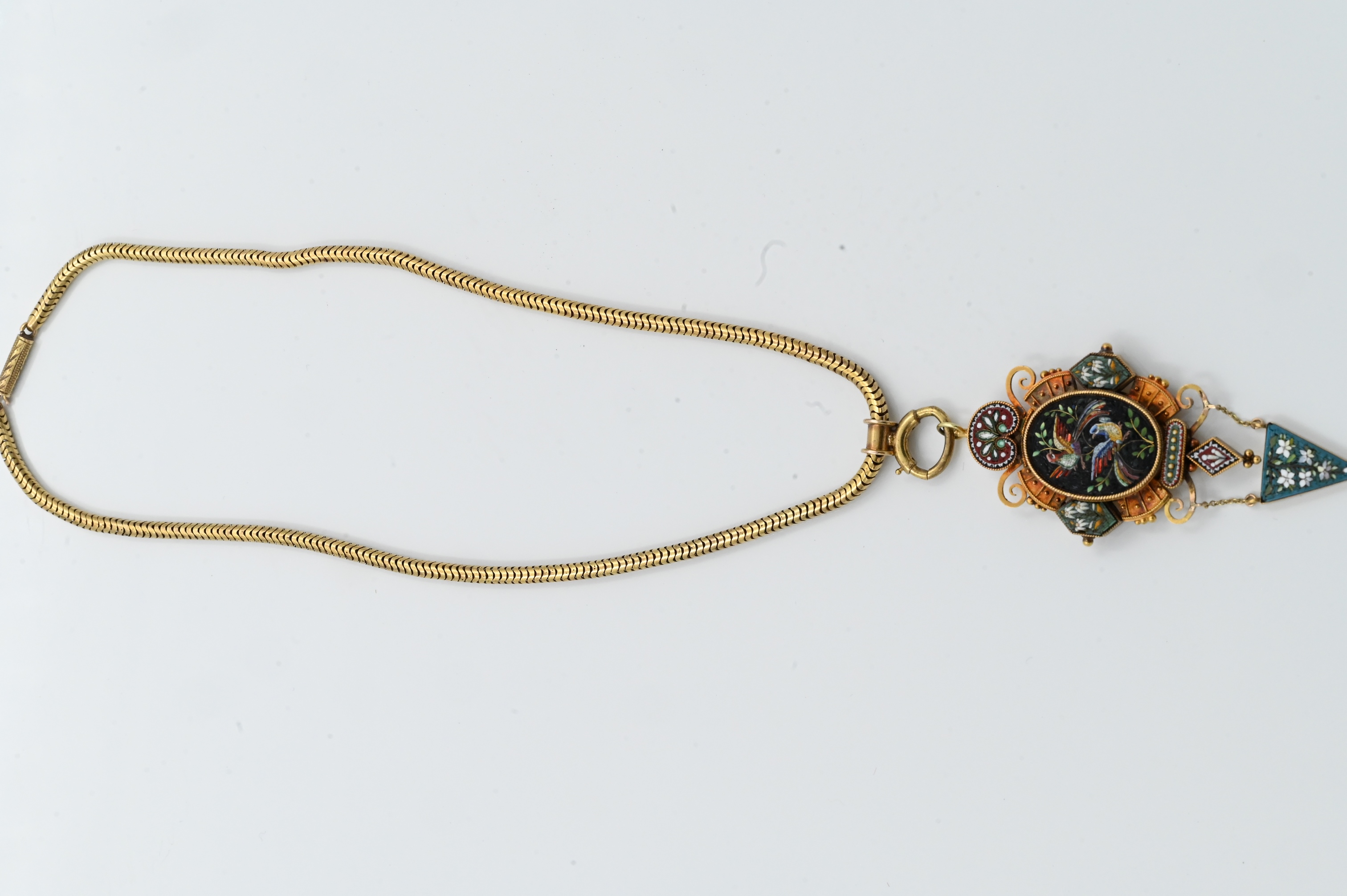Lot 44: Yellow Gold Necklace with 18K Micro Mosaic Pendant