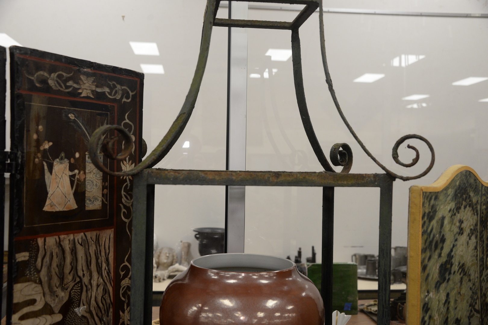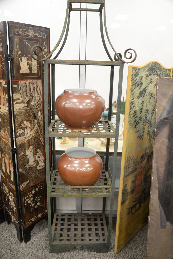 French Iron Garden Etagere, height 77 inches, 22 x 26.