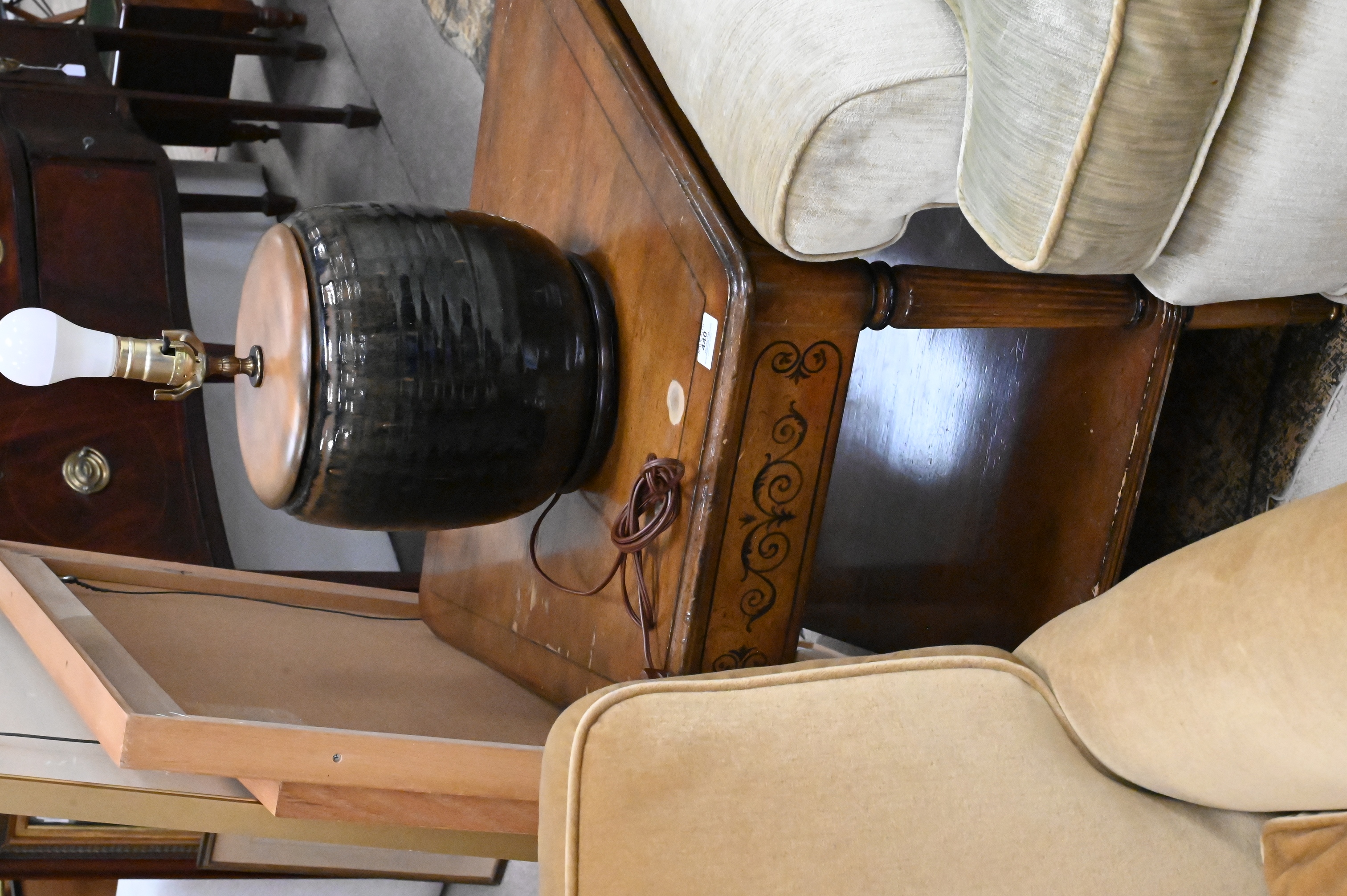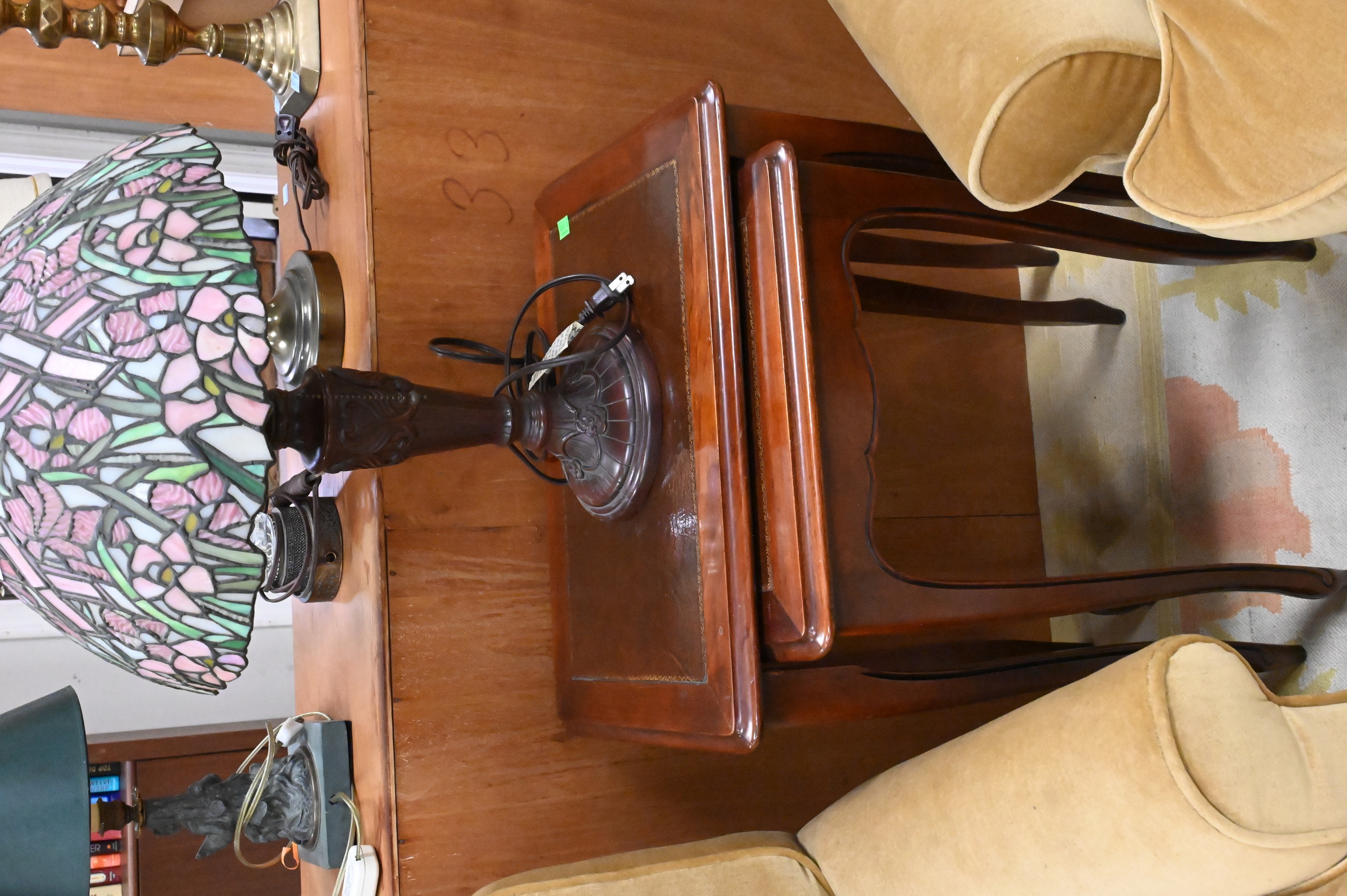 to include a pair of leather stacking tables, a gilt decorative table having shaped top, along with an inlaid table