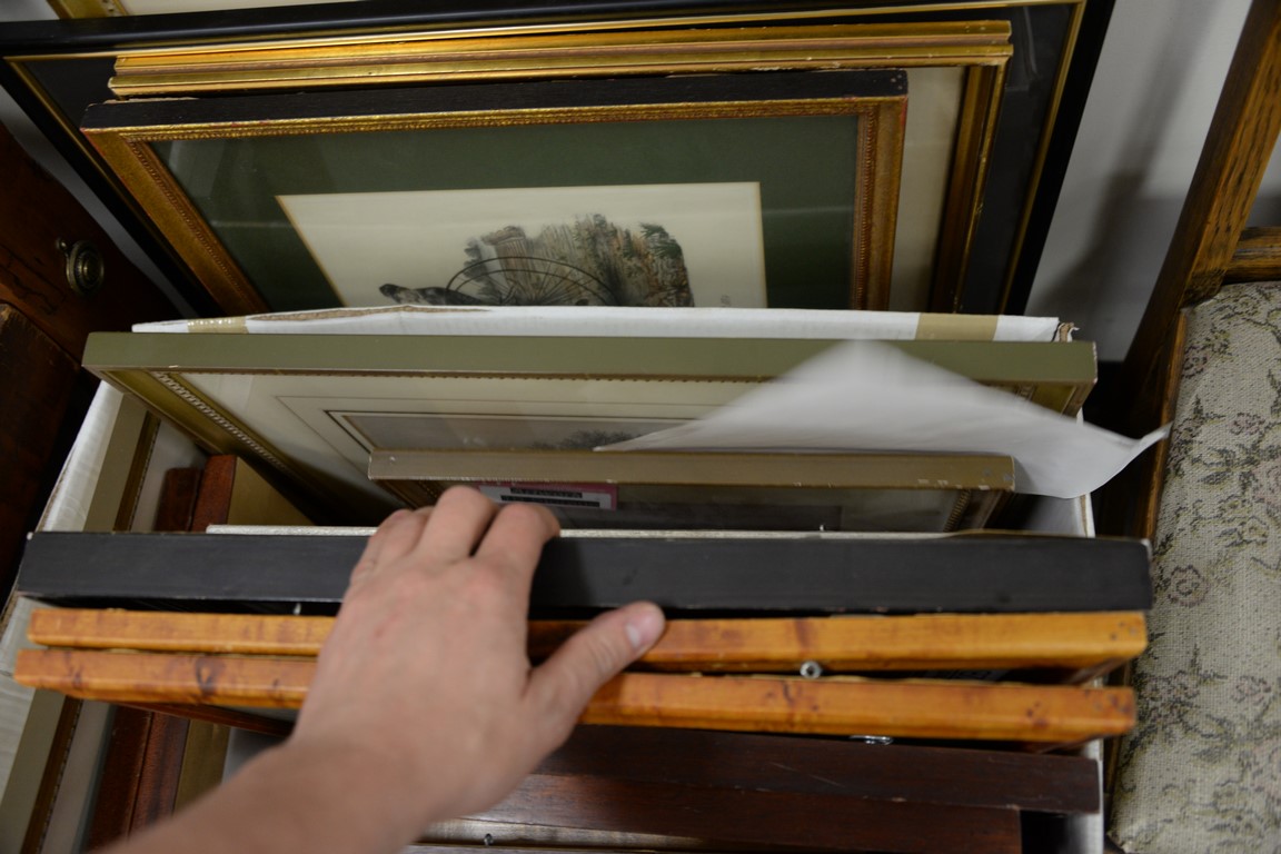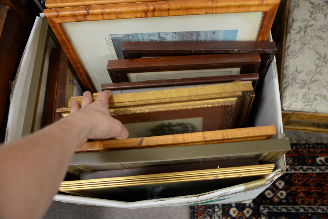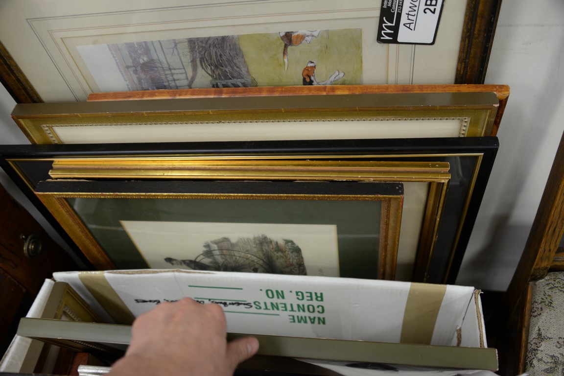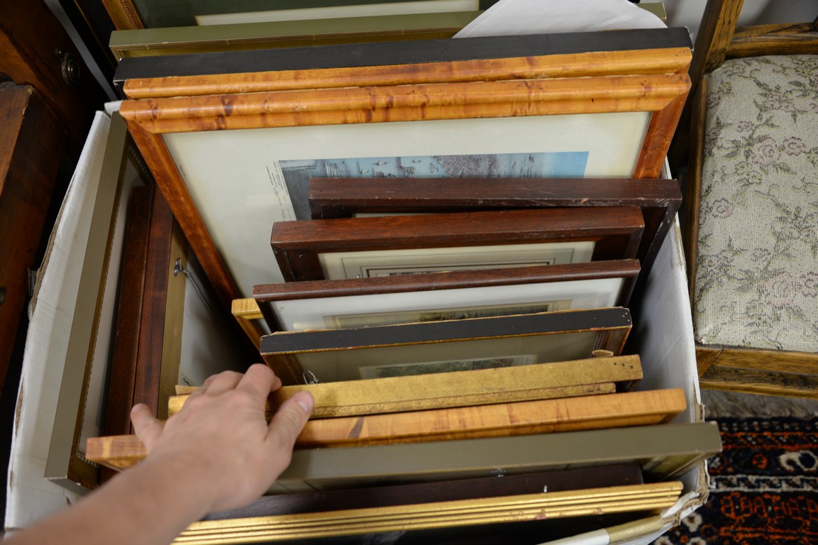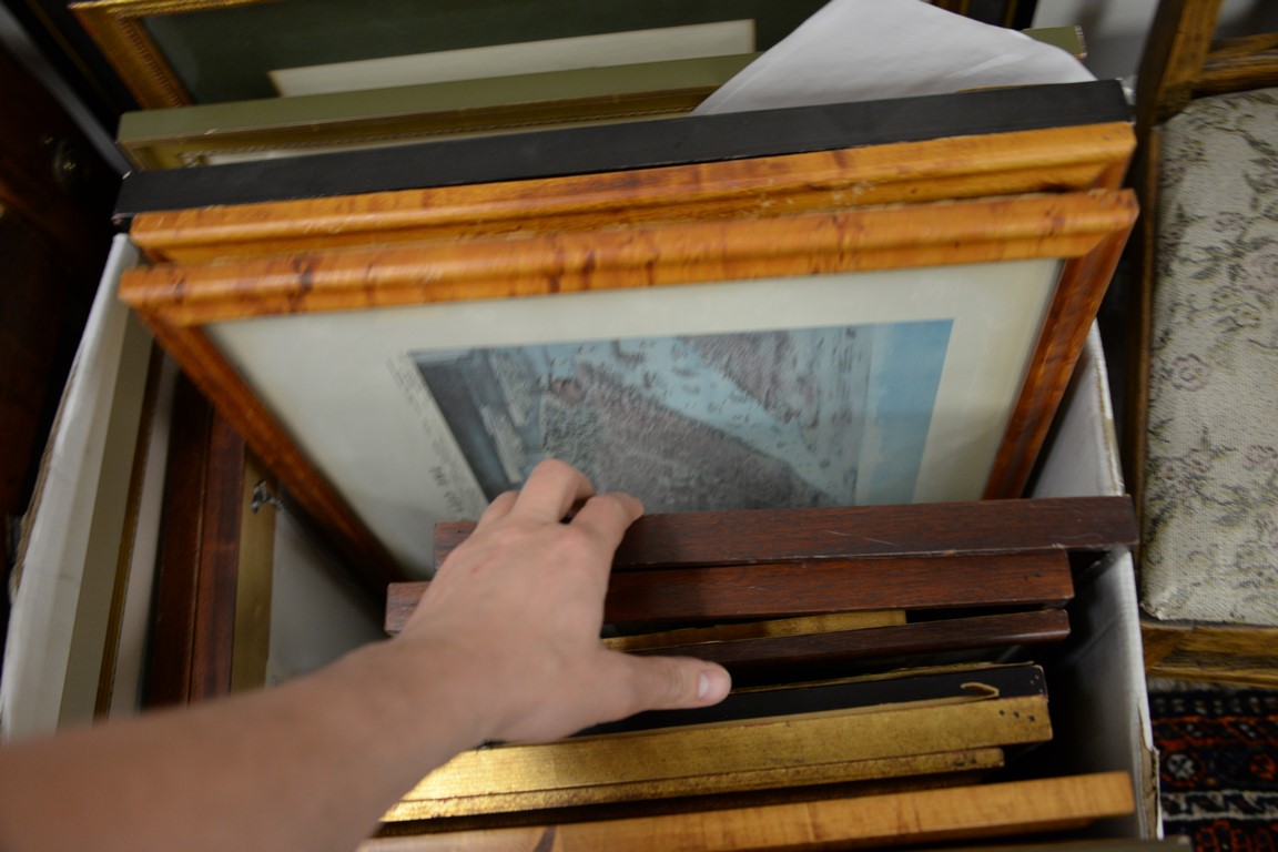 Lot 440: Group of thirty-eight framed prints, lithographs, and maps to include Robert Winthrop signature, Sporting prints, several maps, etc….