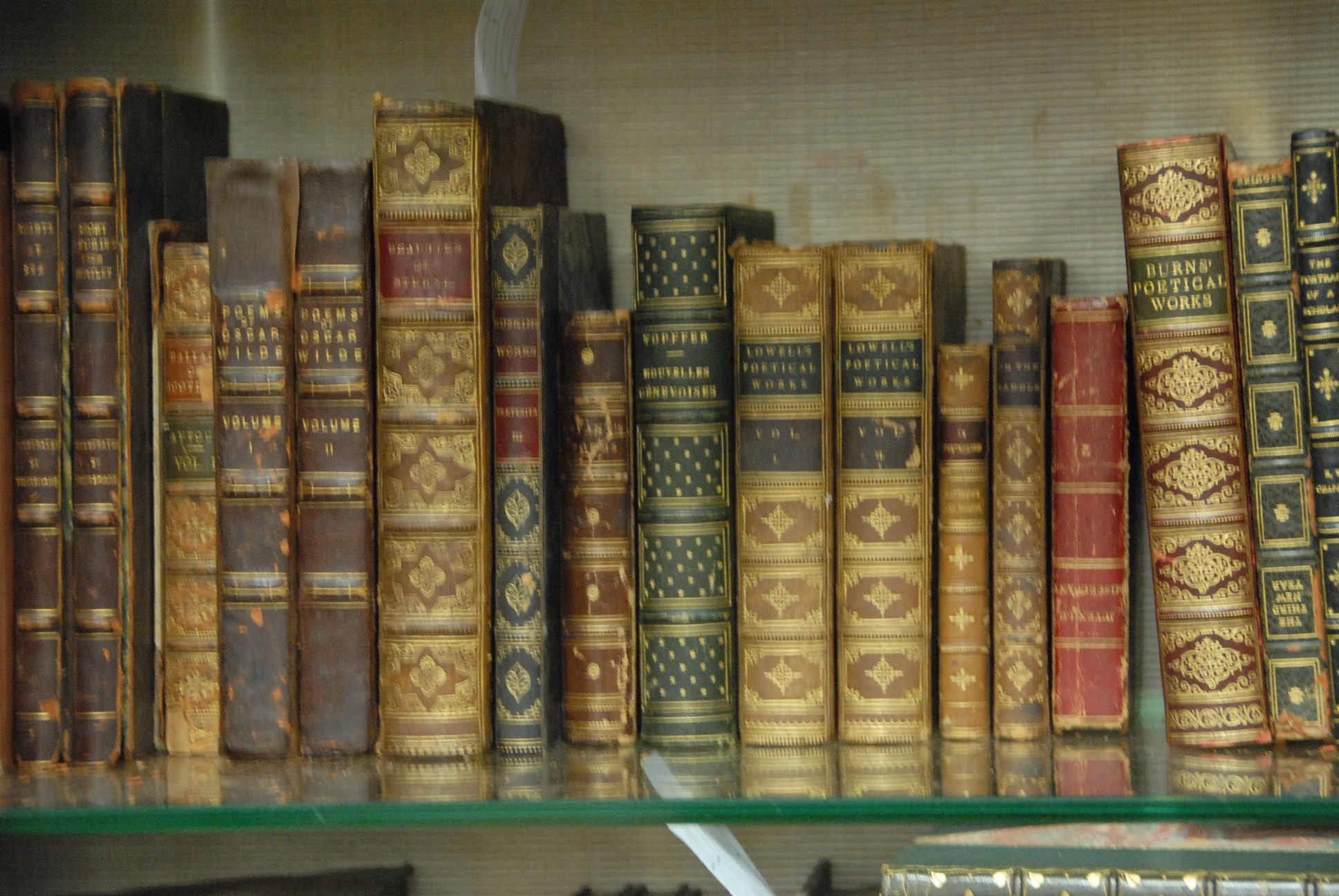 Thirty-Eight leather bound books including Bismarck volumes I & II, Life and Letters of Charles Darwin volumes I & II, Contemplations from the Writings of Elbert Hubbard, Poems of Oscar Wilde volumes I & II, etc., from the library of Theodore Weicker.