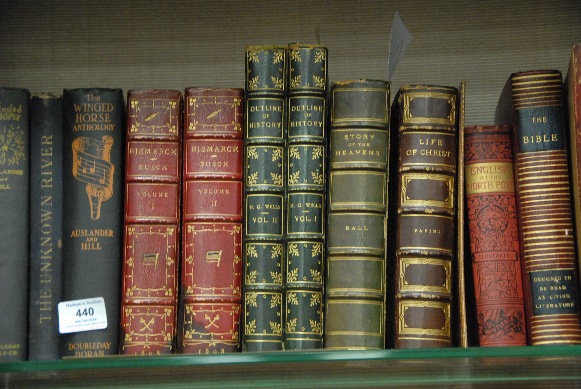 Lot 440: Thirty-Eight leather bound books including Bismarck volumes I & II, Life and Letters of Charles Darwin volumes I & II, Contemplations from the Writings of Elbert Hubbard, Poems of Oscar Wilde volumes I & II, etc., from the library of Theodore Weicker