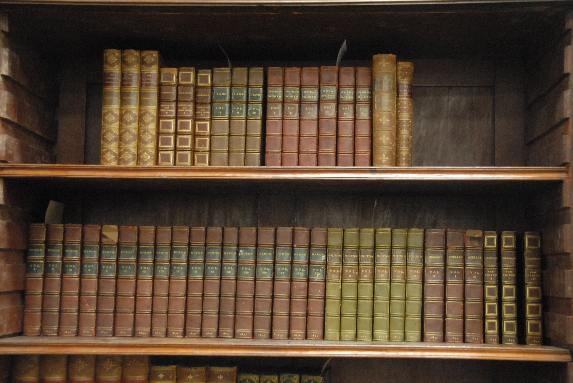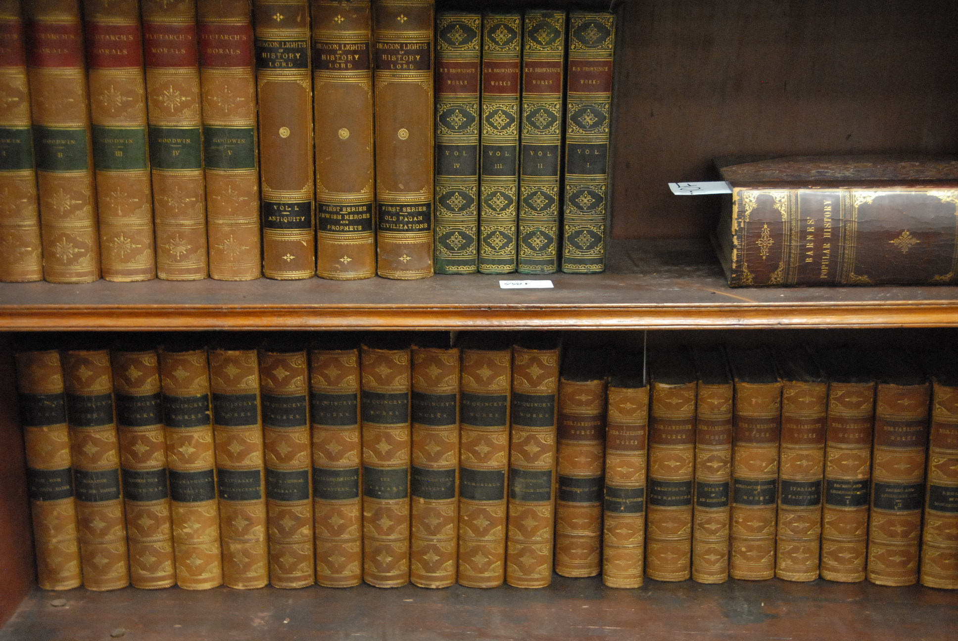 Eighty leather bound books including Works of Lord Byron, Plutarch’s Morals, Poetical Works of William Wordsworth, Prose Works of Charles Lamb, Barne’s A Popular History of the United States, etc., from the Library of Theodore Weicker.