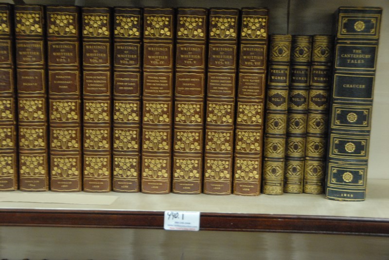 Forty-Three volumes including The Canterbury Tales of Geoffrey Chaucer, thirty volumes of Horace Walpole leather books, Peele’s Works volumes I-III, etc., from the library of Theodore Weicker.