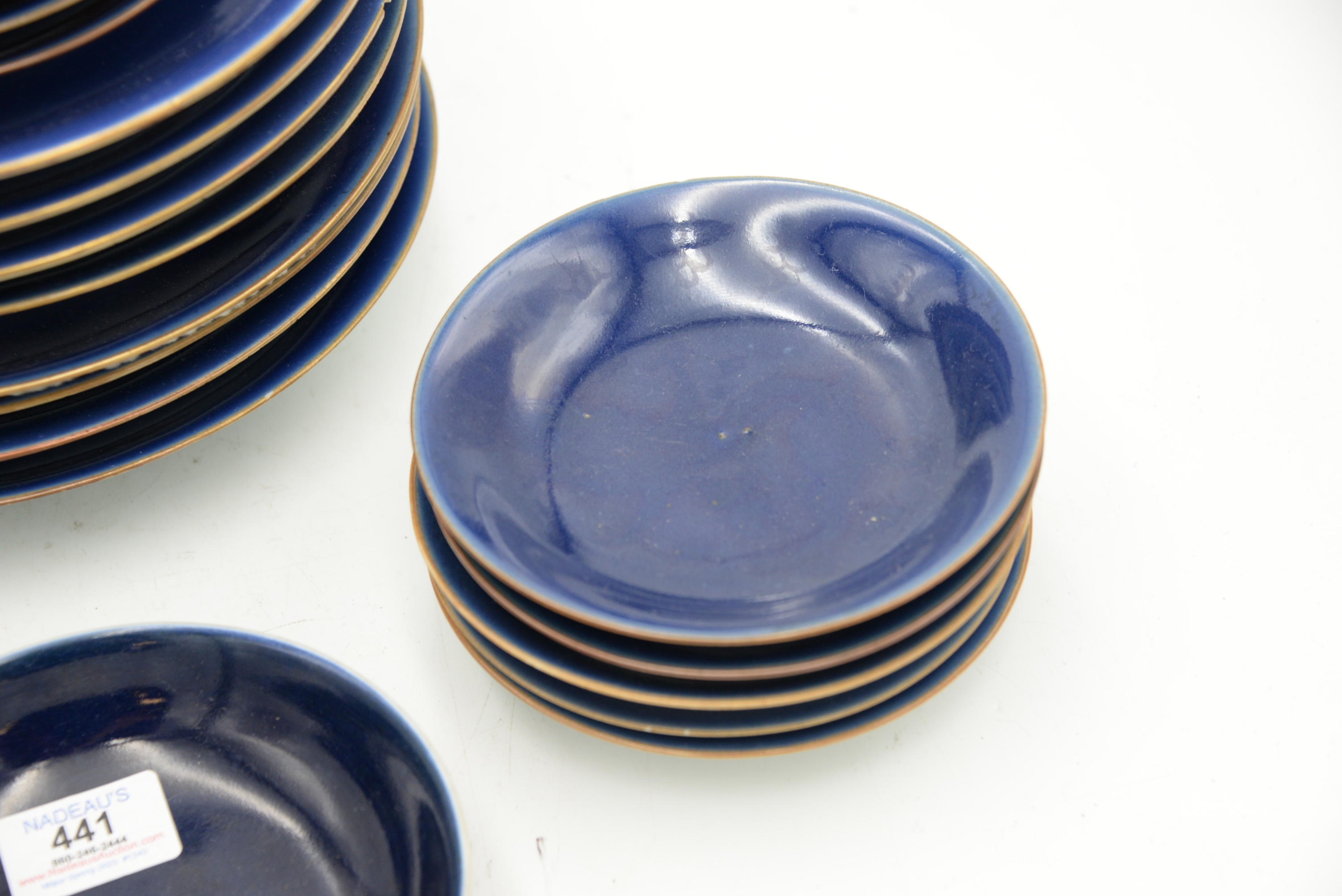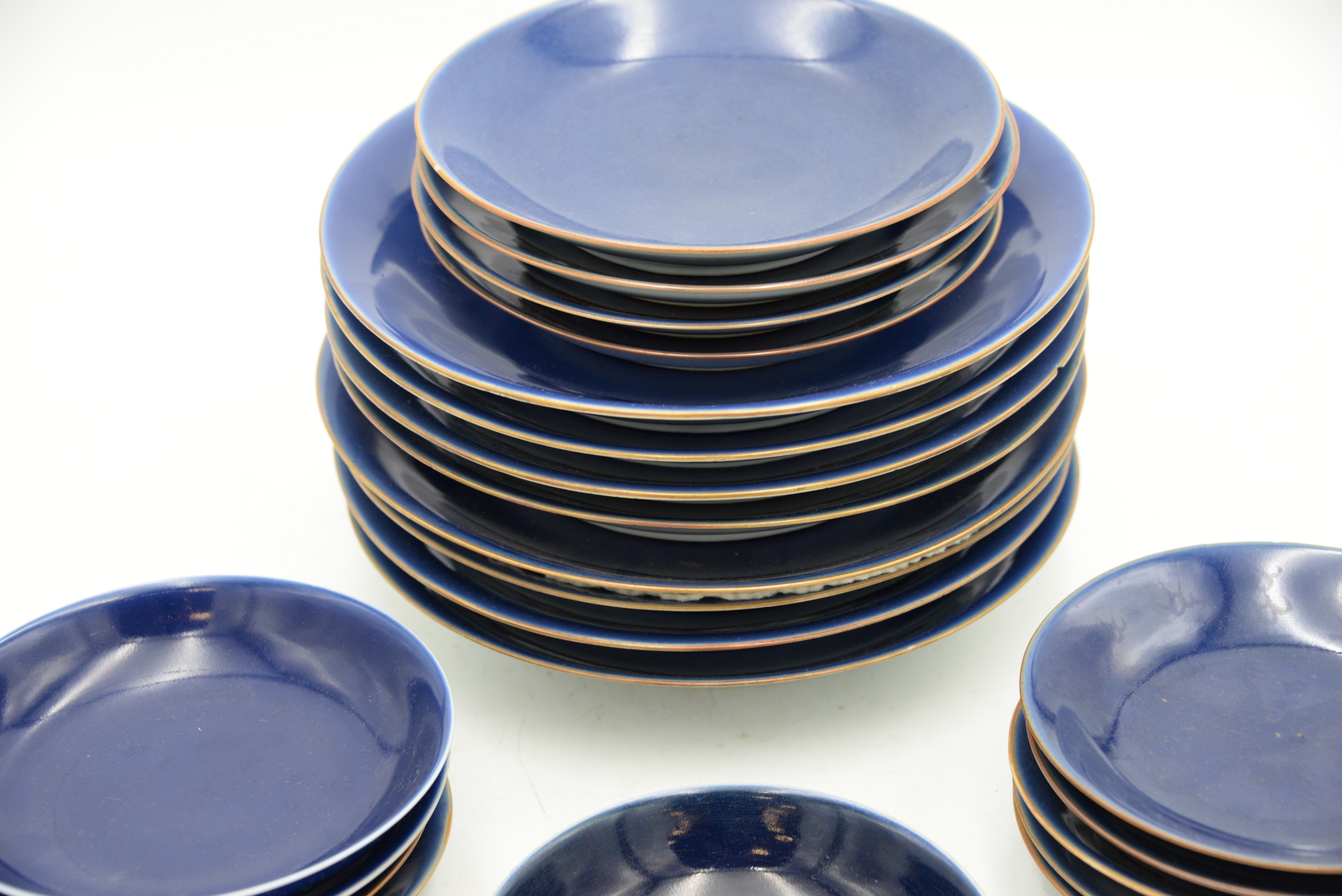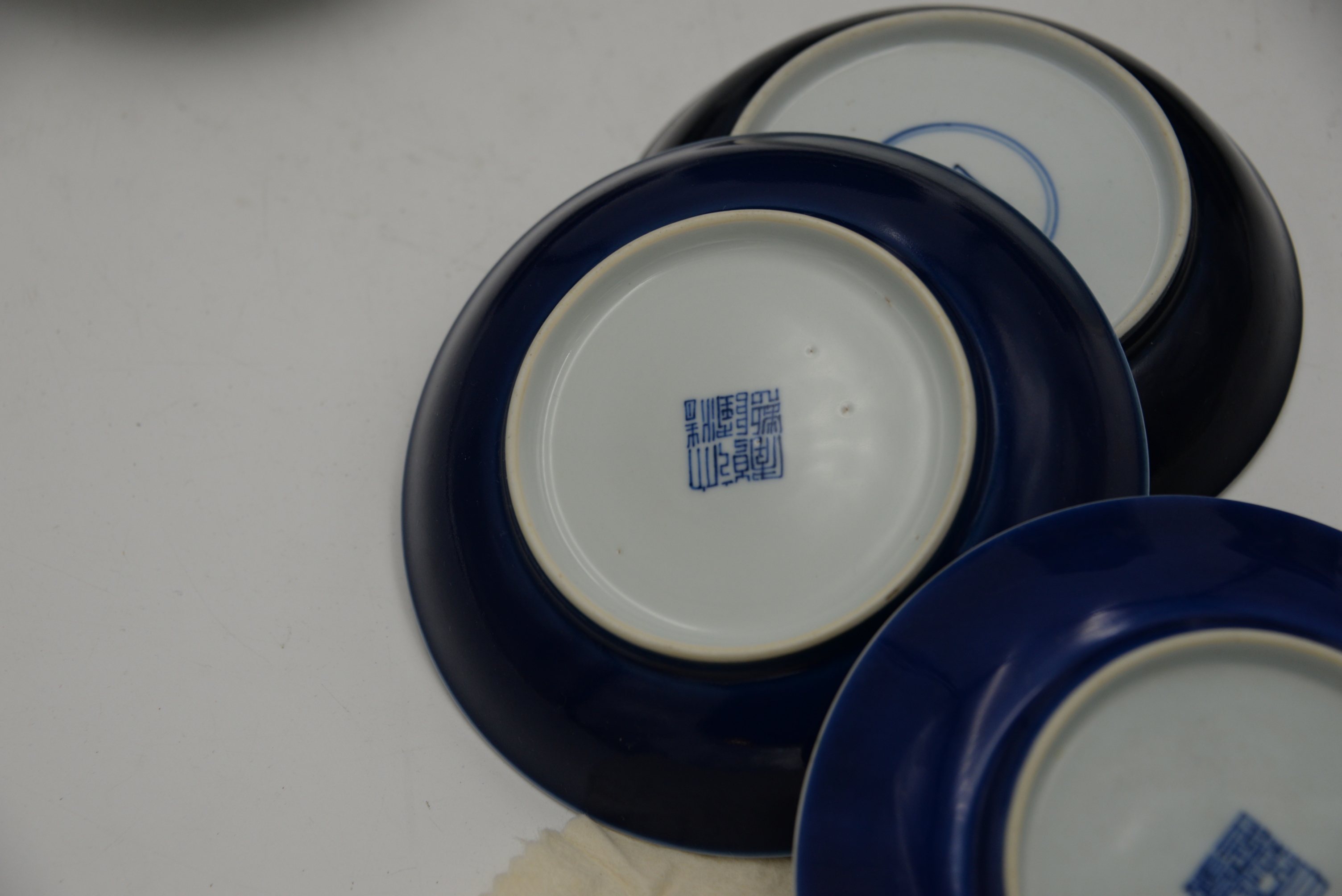 15 Piece Group of Underglaze Blue Chinese Porcelain Plates, to include 8 matching dinner plates with seal mark on bottom, 7 small dishes with dragons, a set of 4 luncheon plates, along with 3 bread plates; all having seal mark on bottom; diameters 6 – 10 1/4 inches.