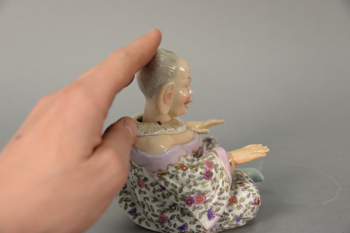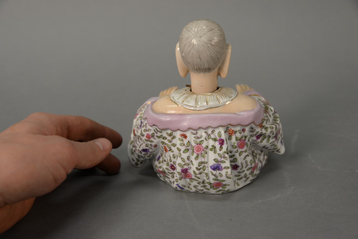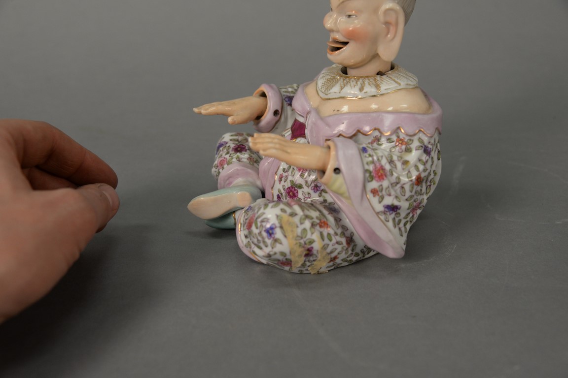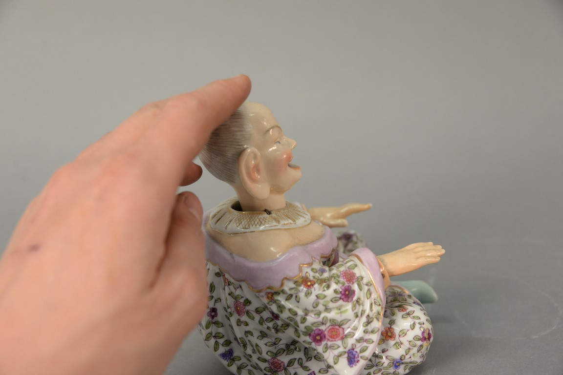 Lot 441: Meissen style German porcelain nodding Pagoda figure Rudolstadt Ernst Bohne Sohne, depicting male figure and having moving tongue he…