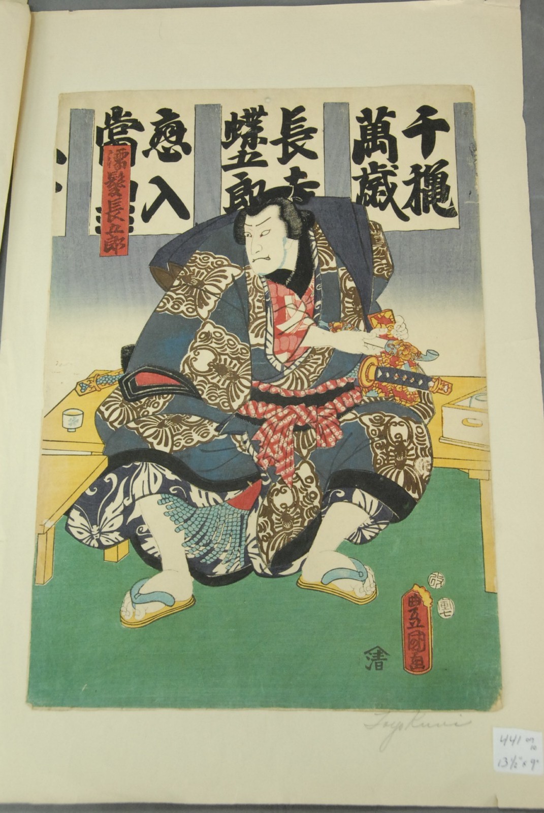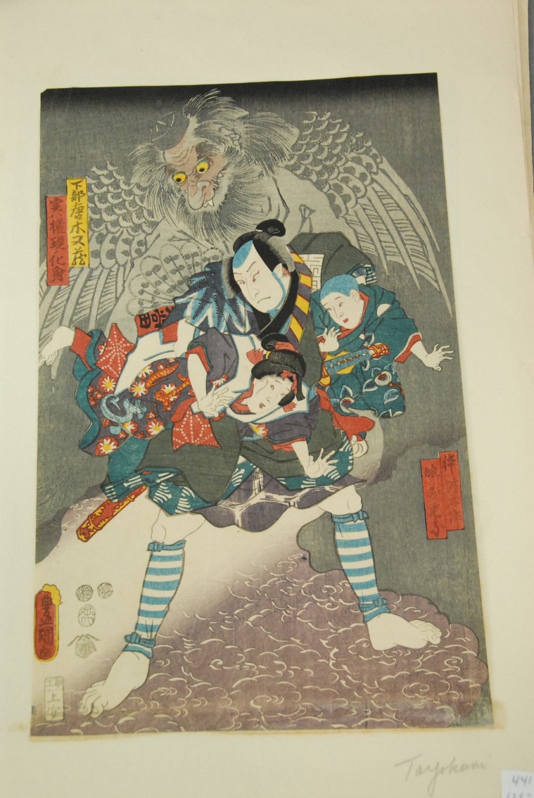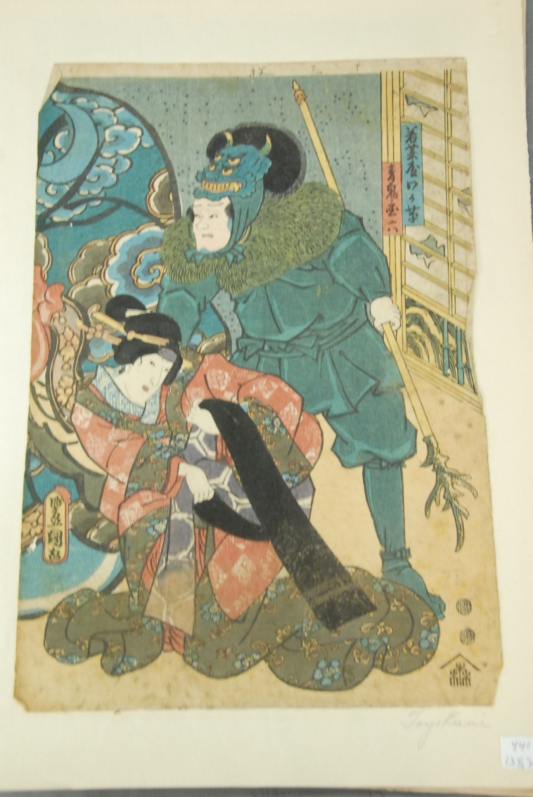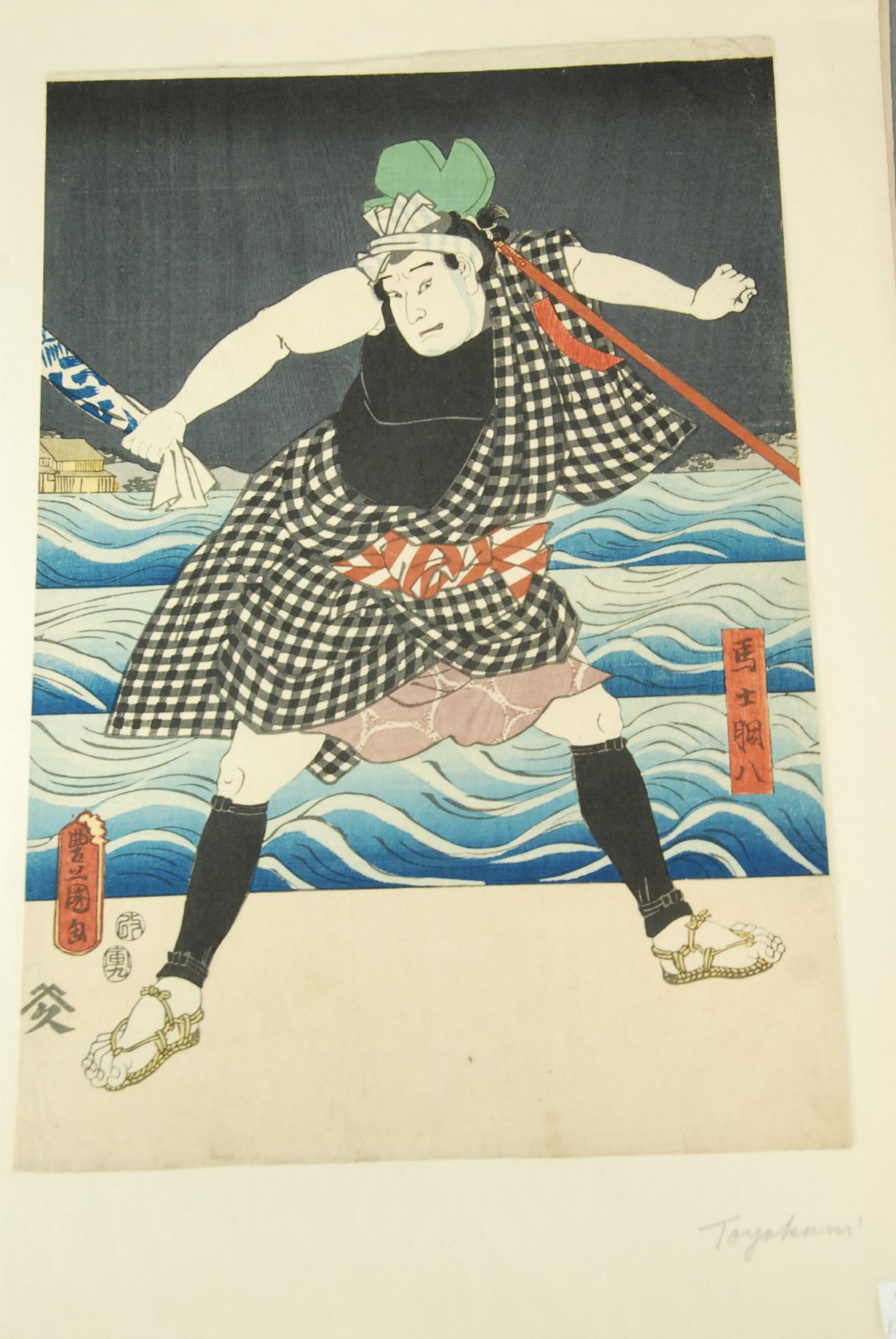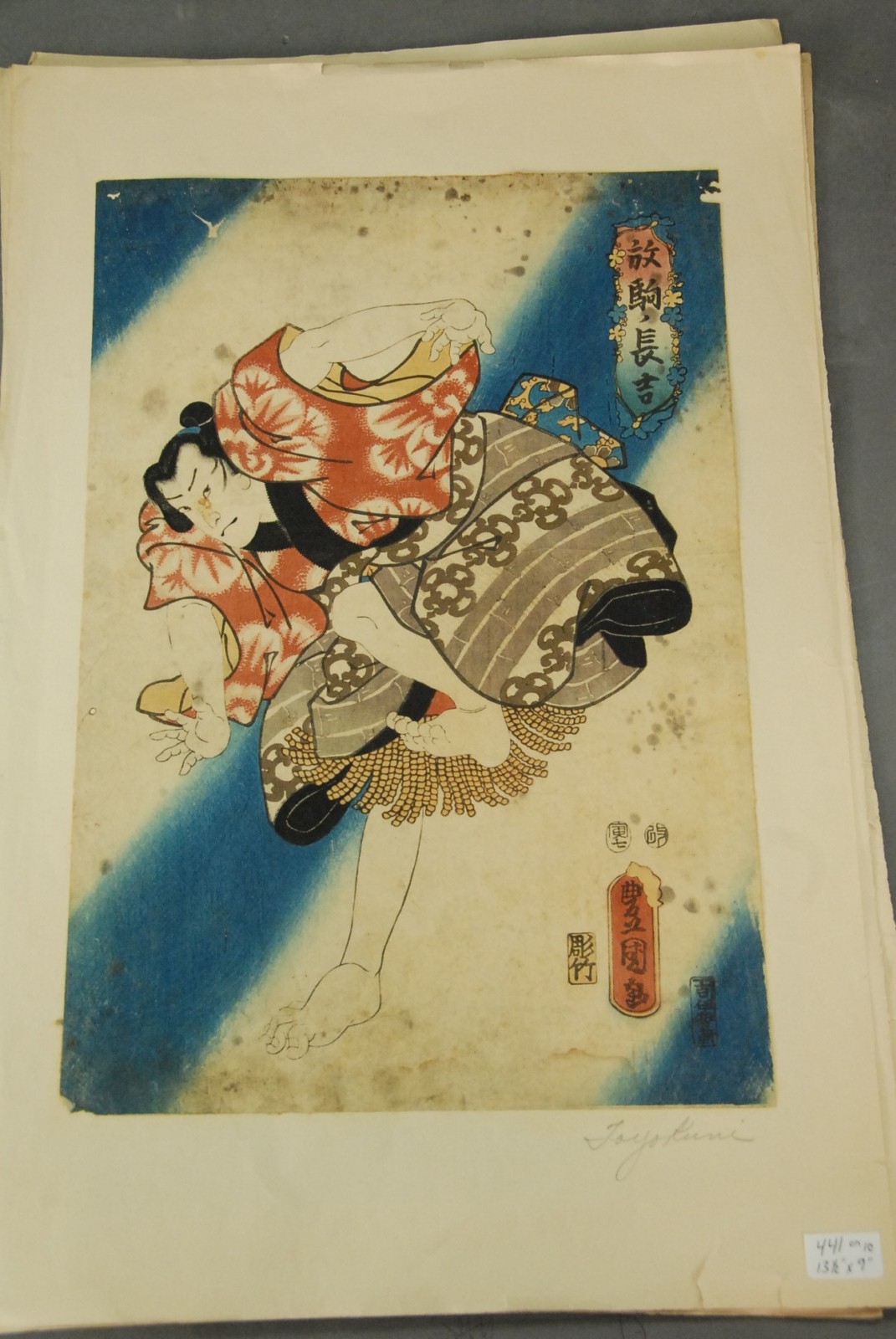 Ten Japanese woodblock prints, pencil signed Toyokuni.