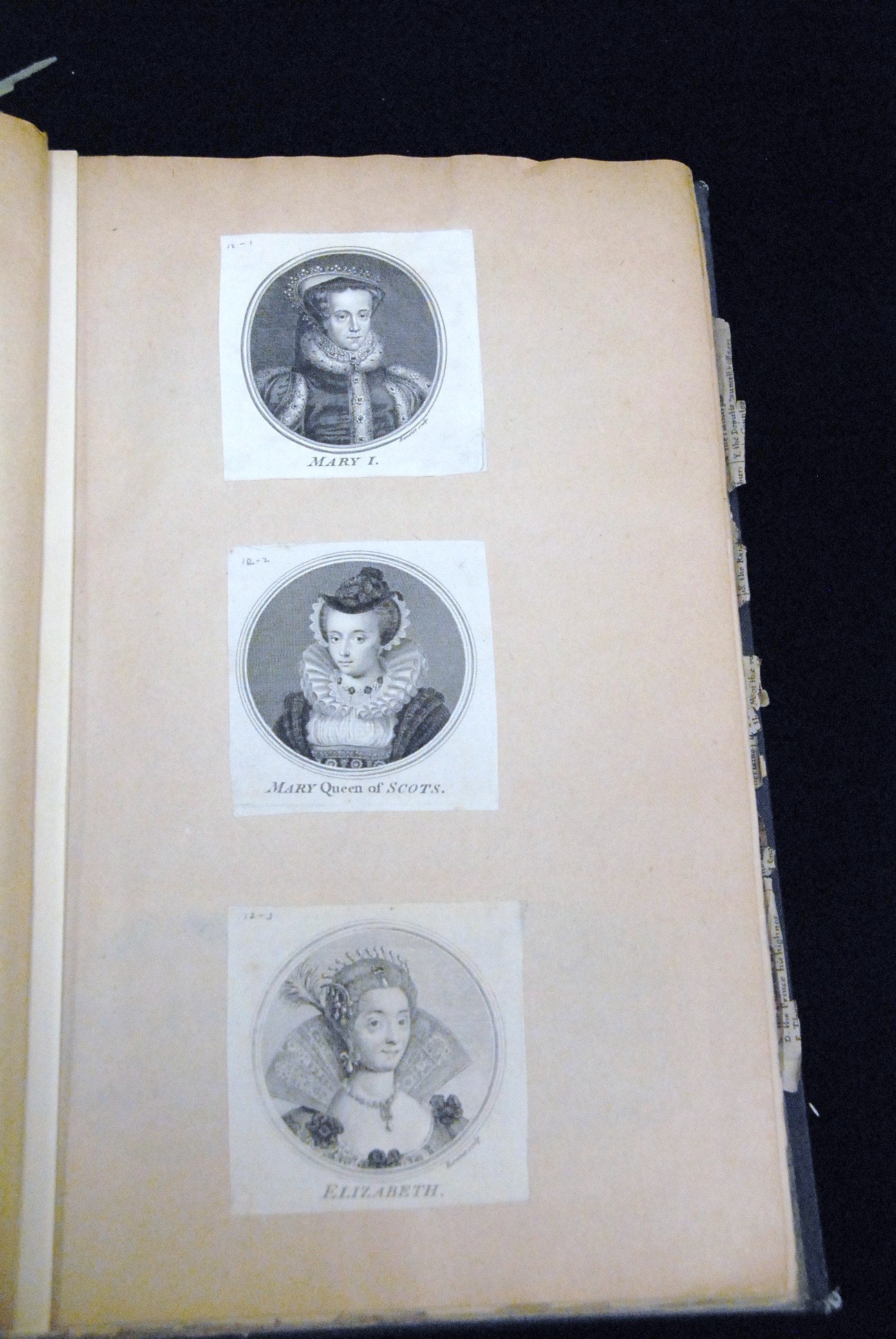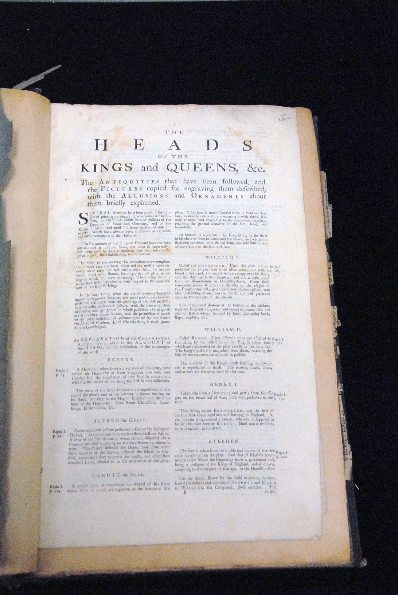 The heads of the Kings & Queens put into a scrapbook with many prints, 1736.