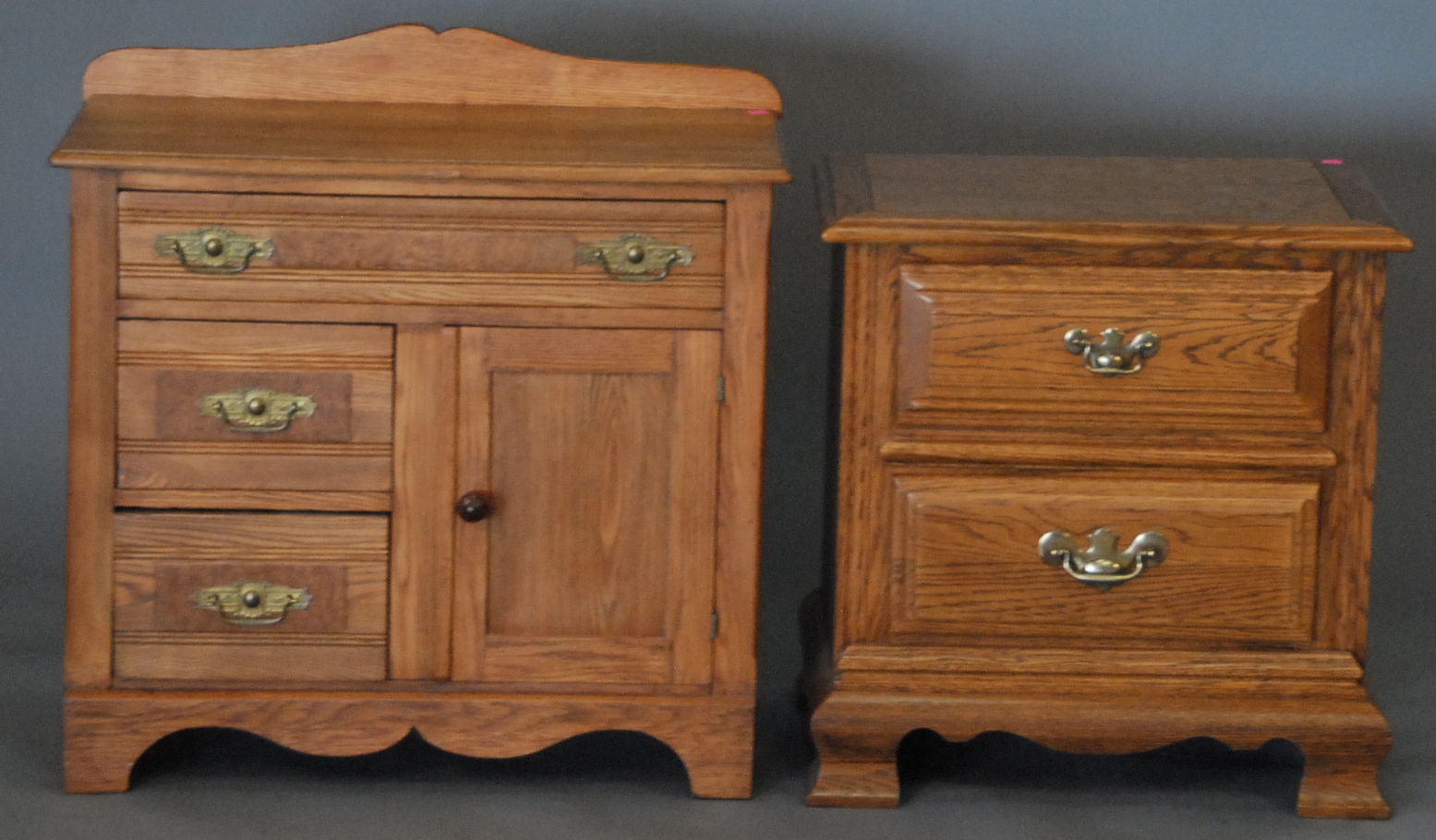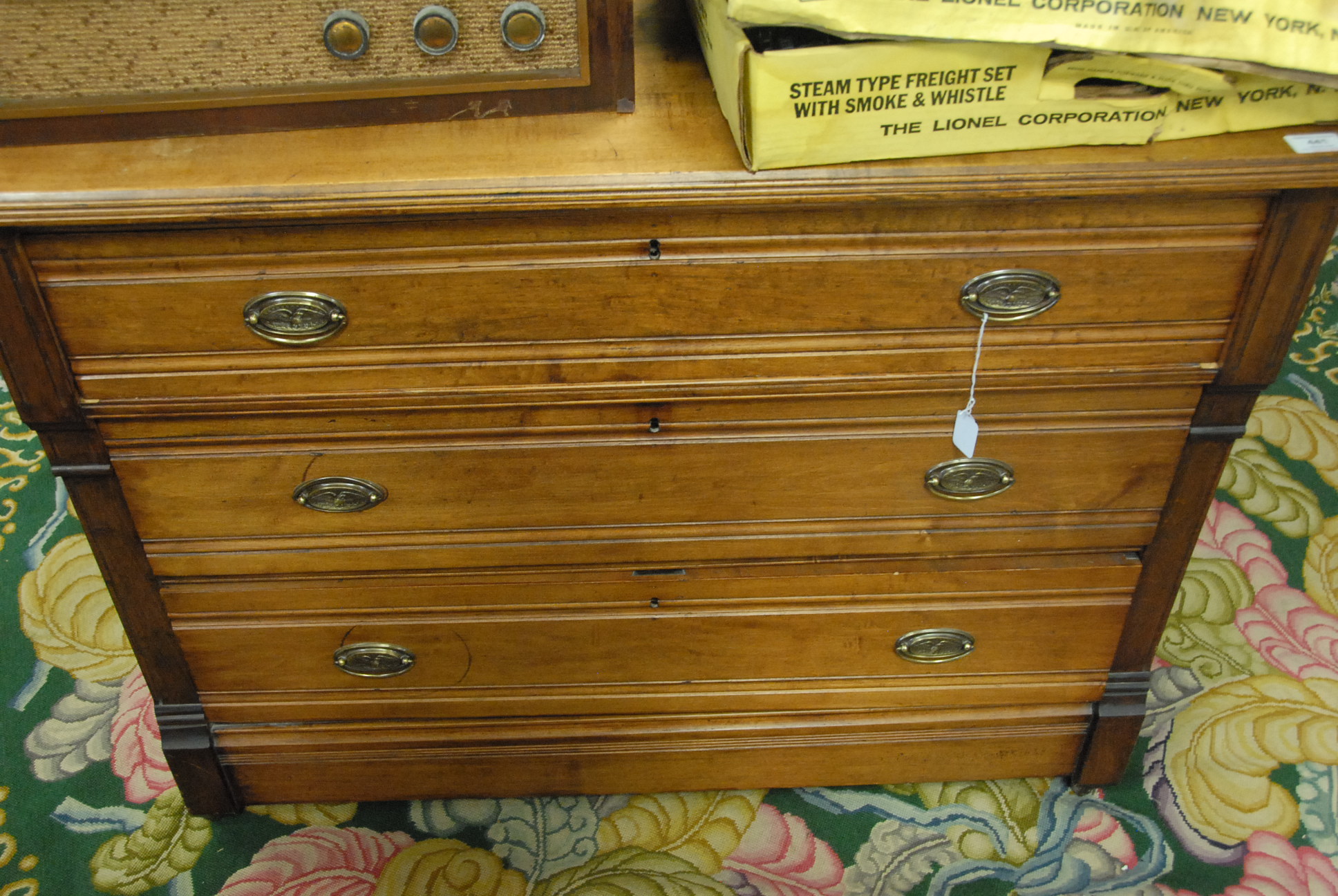 Victorian three drawer chest along with a small oak commode and a two drawer night stand.