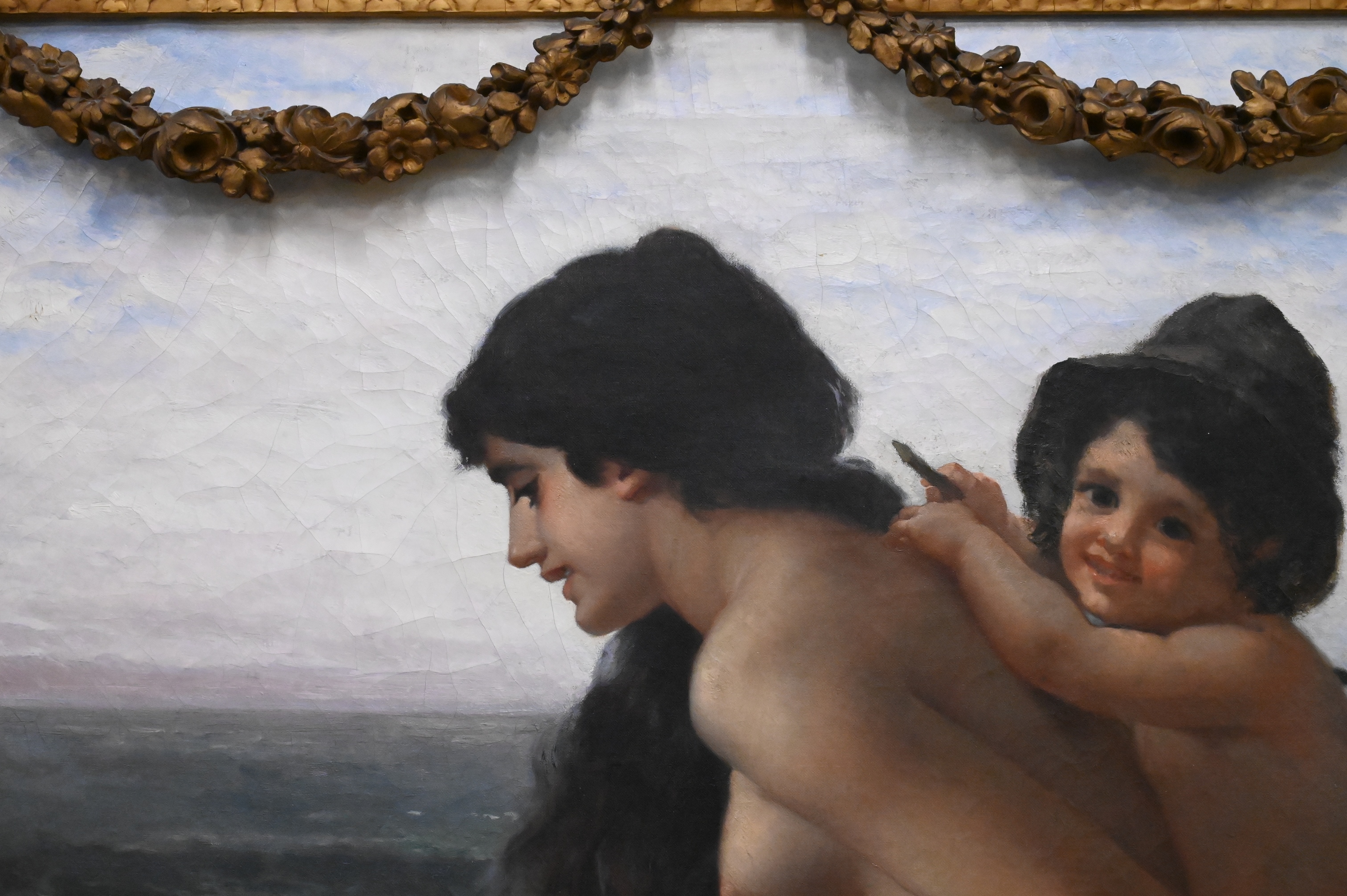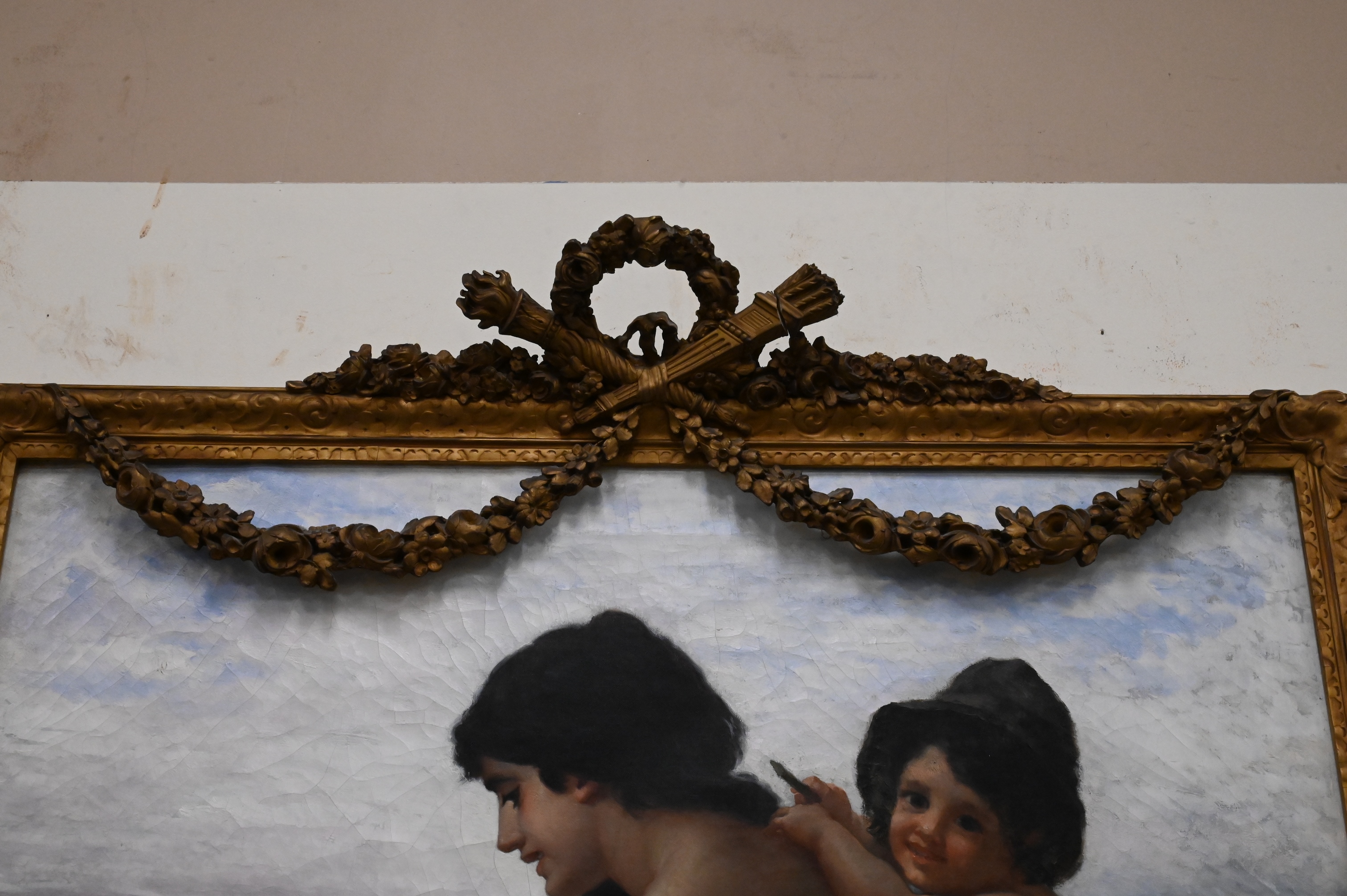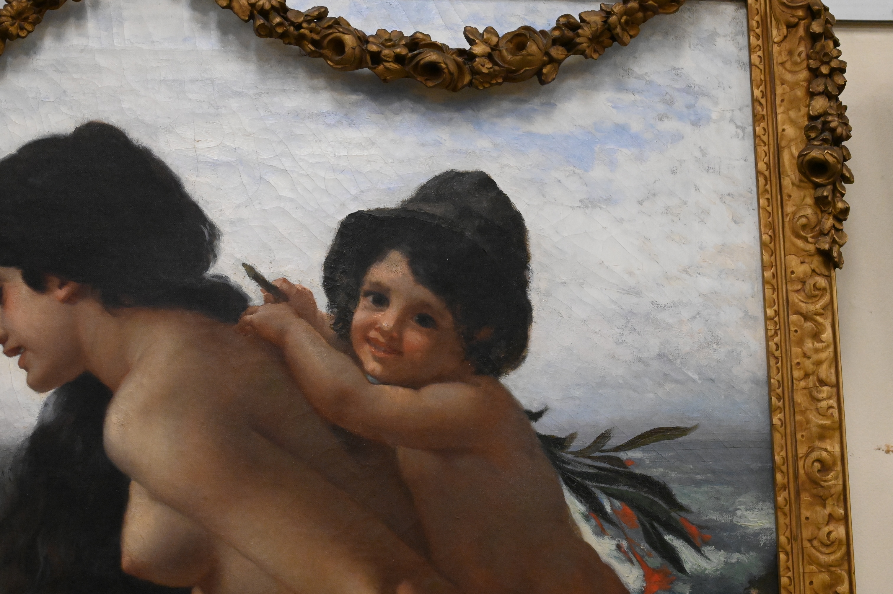 Condition: presents well, appears to be original canvas, craquelure throughout, spot varnish and inpainting to faces, some surface grime, horizontal stretcher bar lines