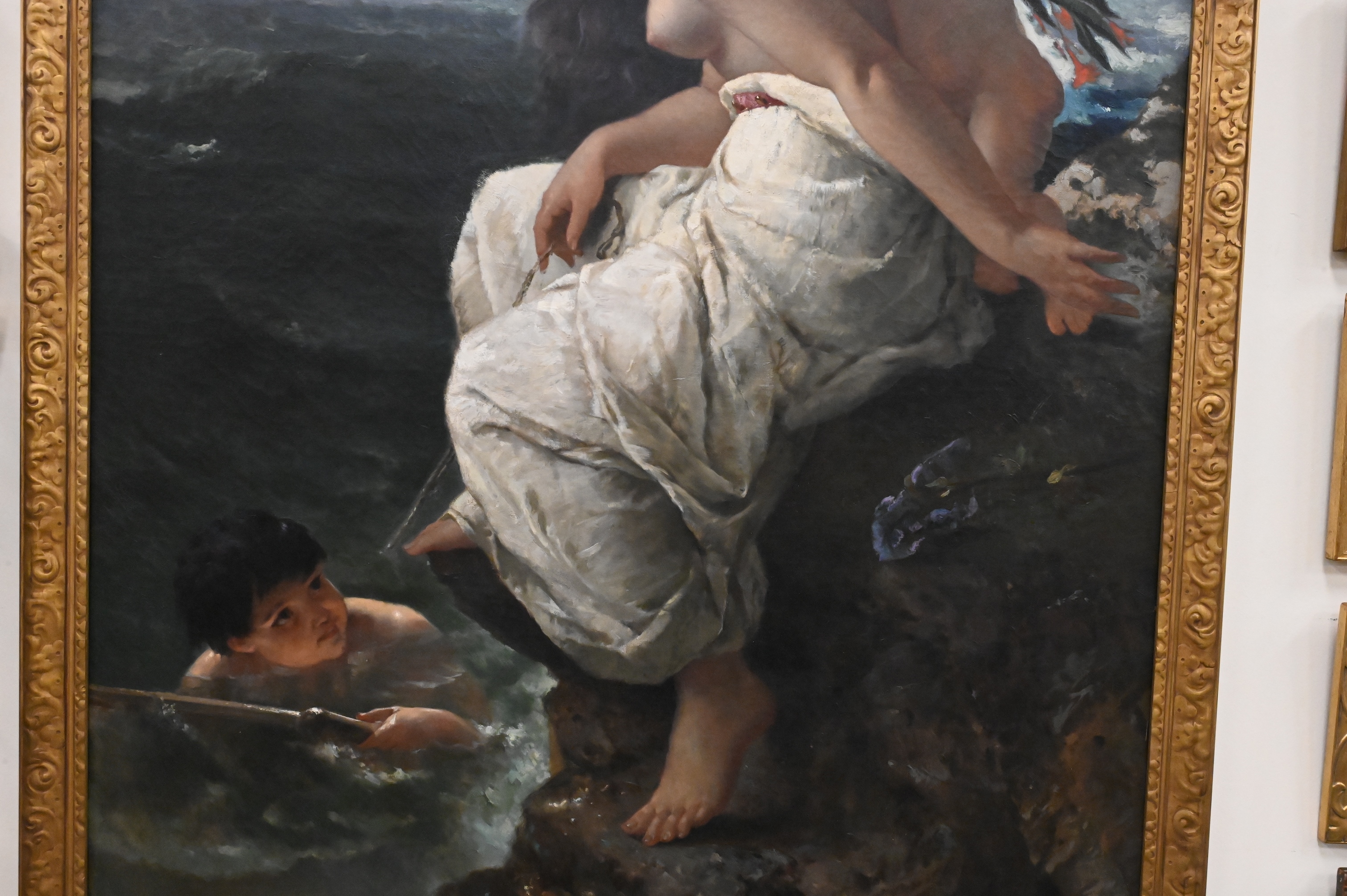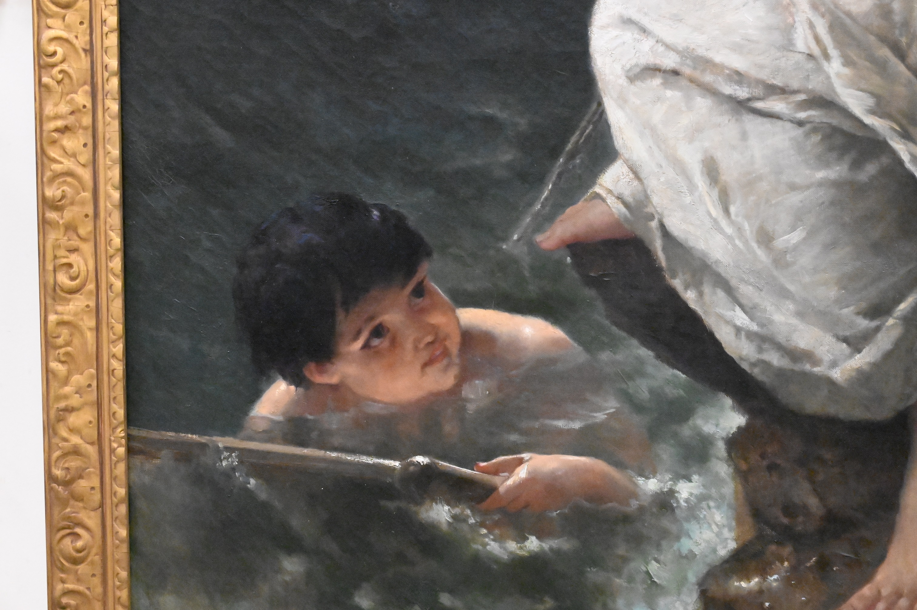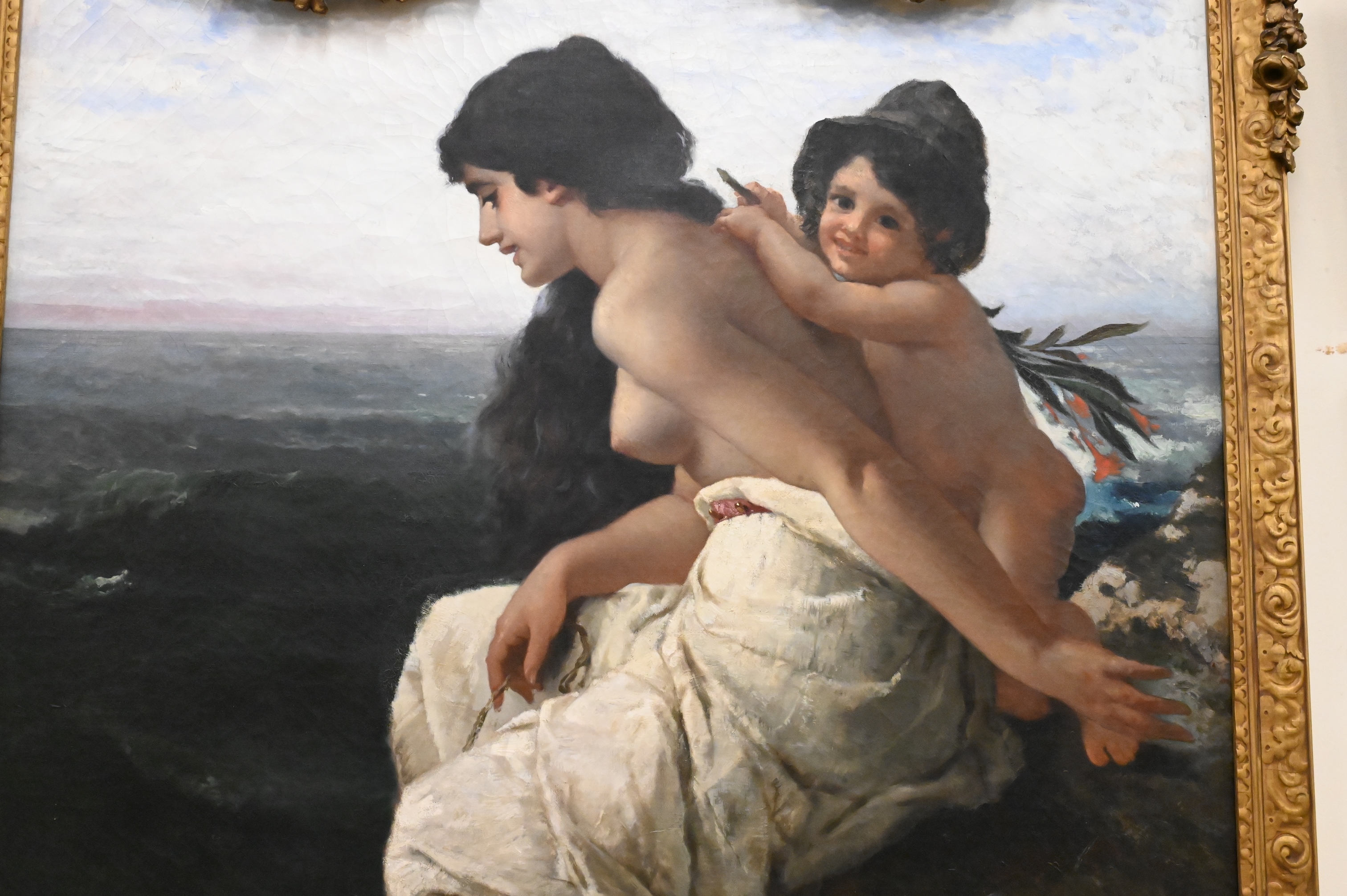 Condition: presents well, appears to be original canvas, craquelure throughout, spot varnish and inpainting to faces, some surface grime, horizontal stretcher bar lines