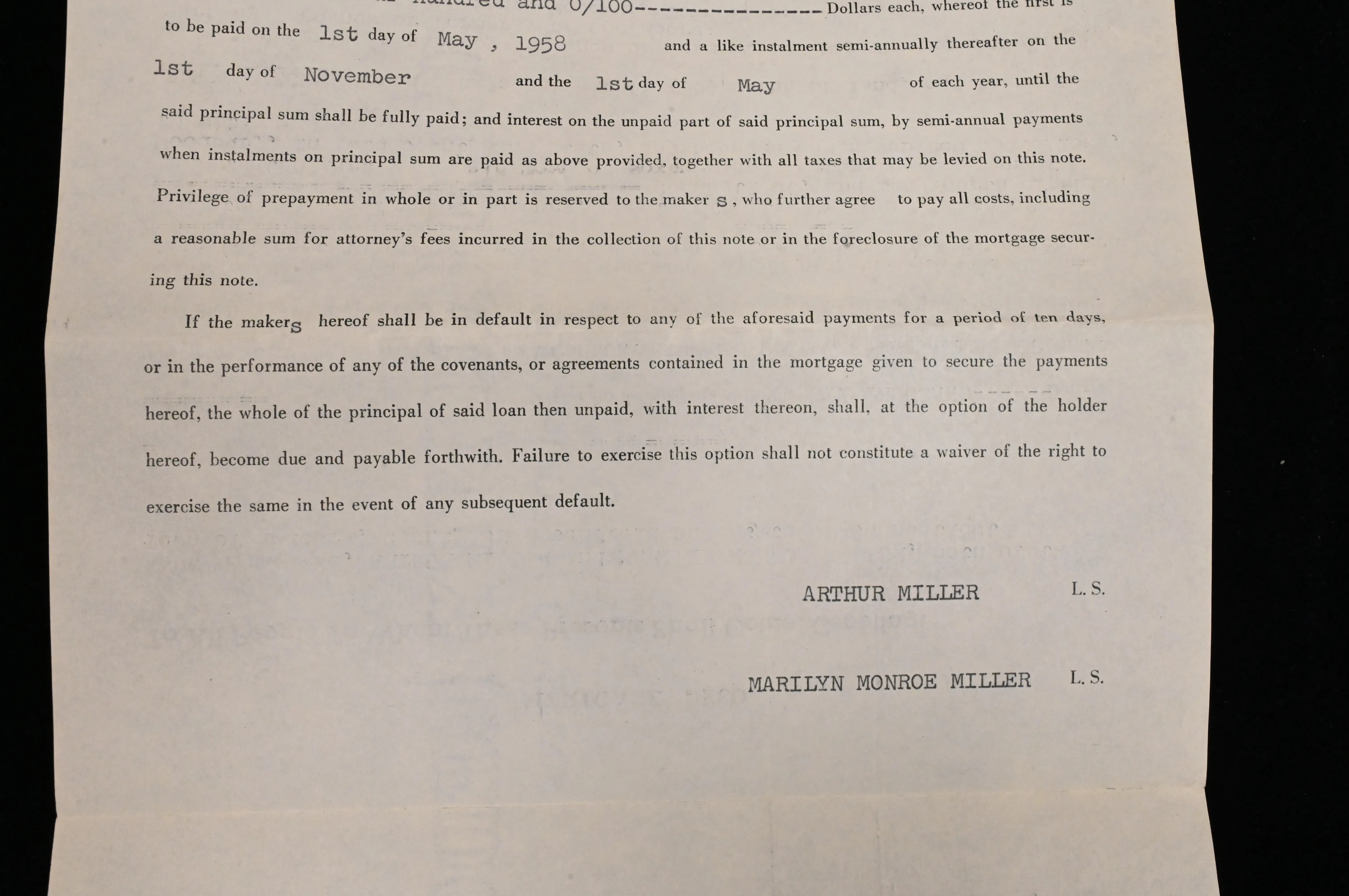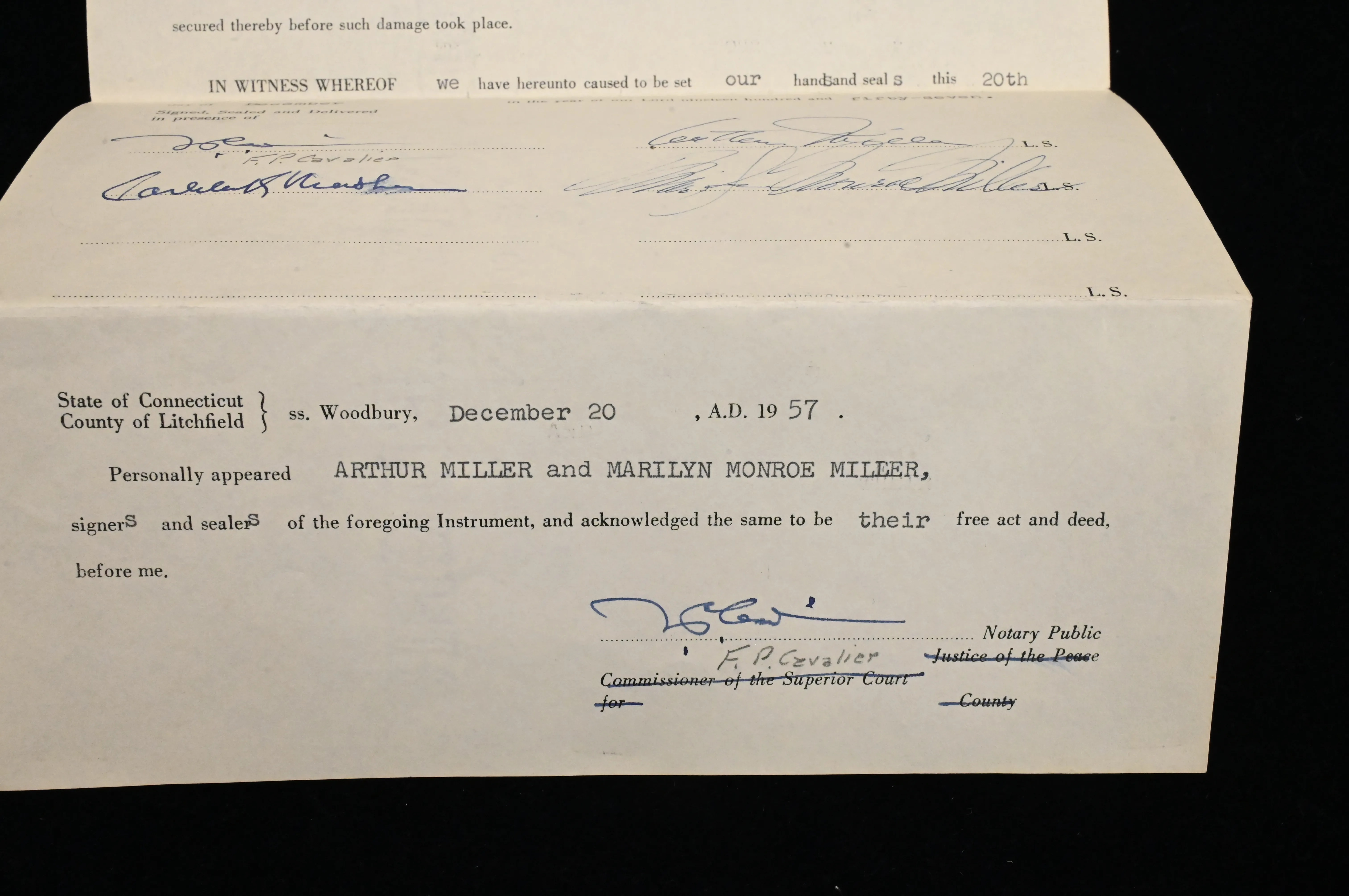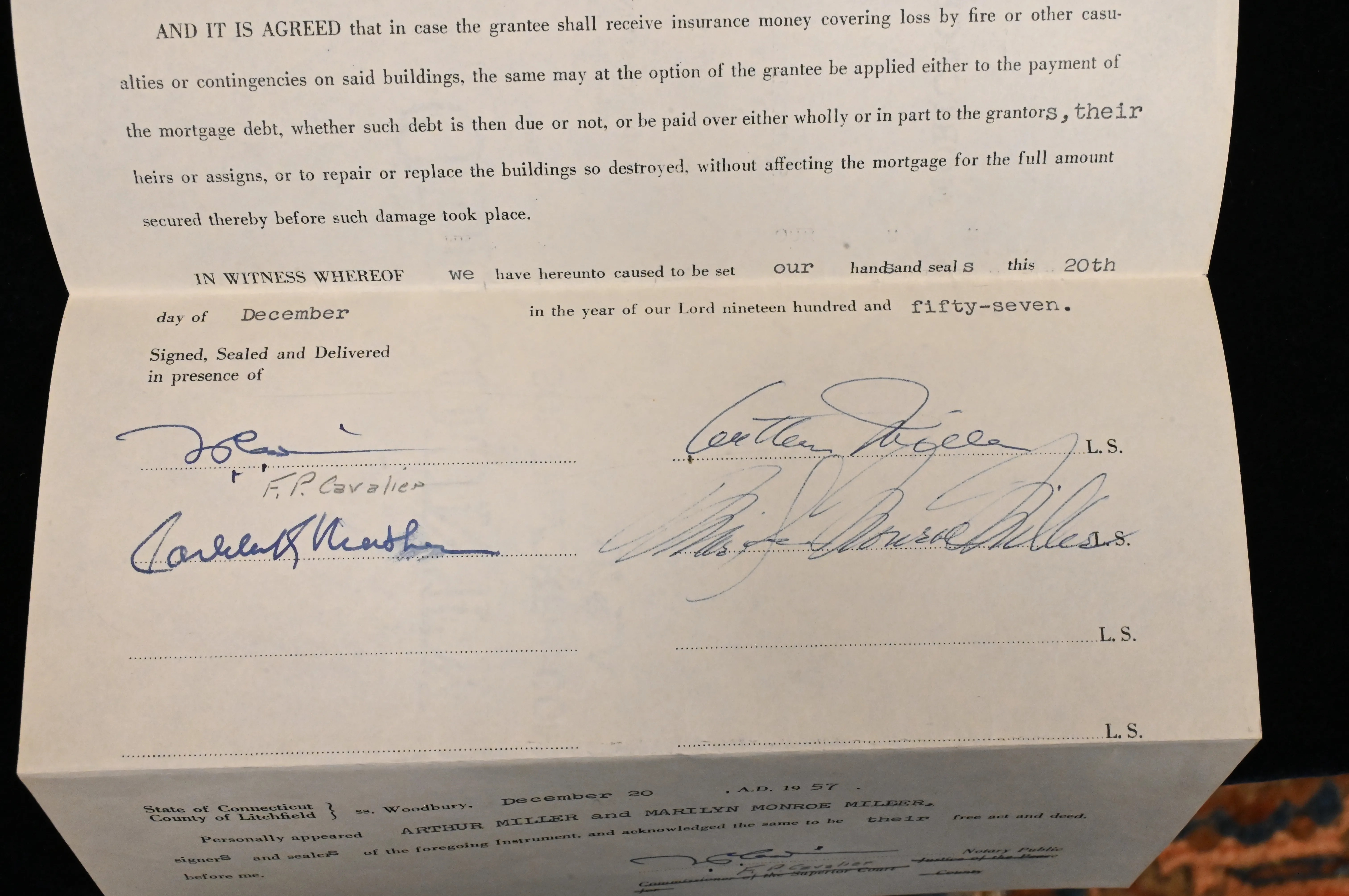 also signed by her husband Arthur Miller on December 20, 1957