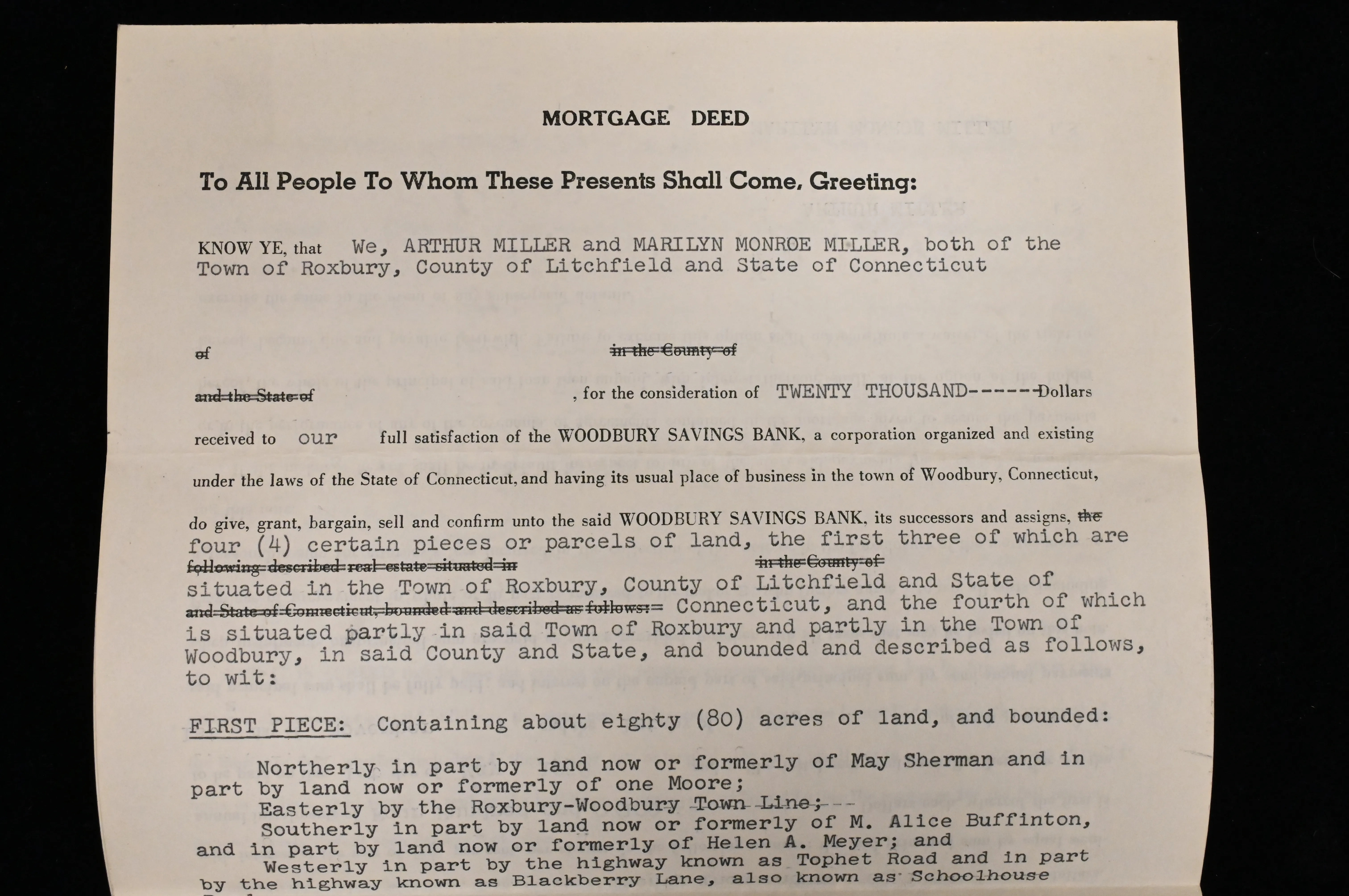 Mortgage Deeds Both Signed by Marilyn Monroe Miller in 1957