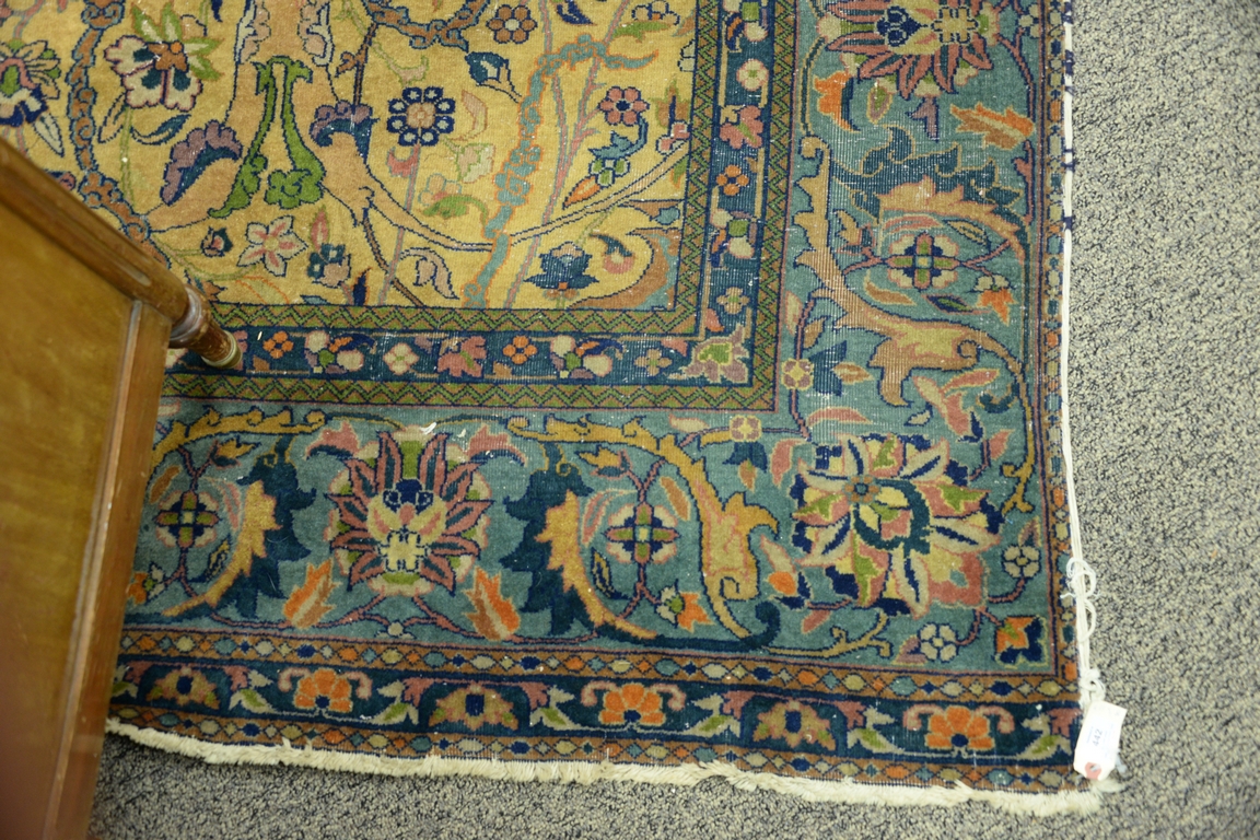 Lot 442: Oriental carpet wear, ends off, 8’4 x 11’9. Provenance: Collection of Anne Jones Willis and the late John Ralph Willis, New Jersey