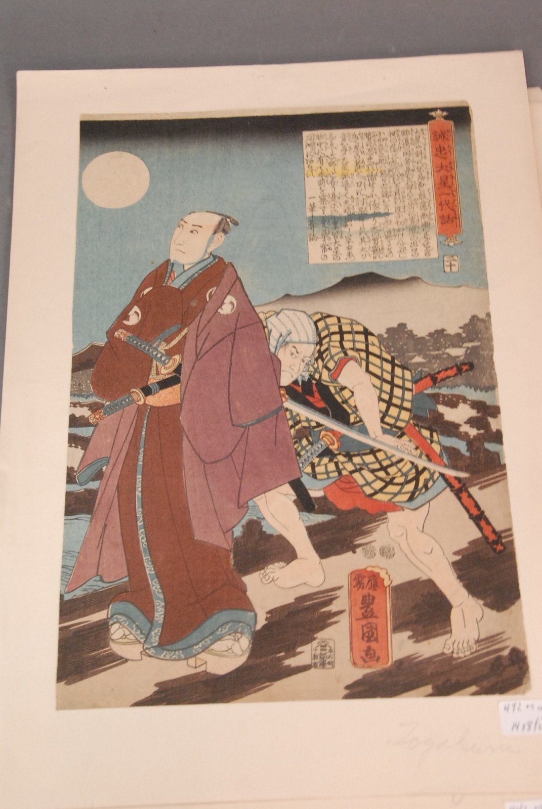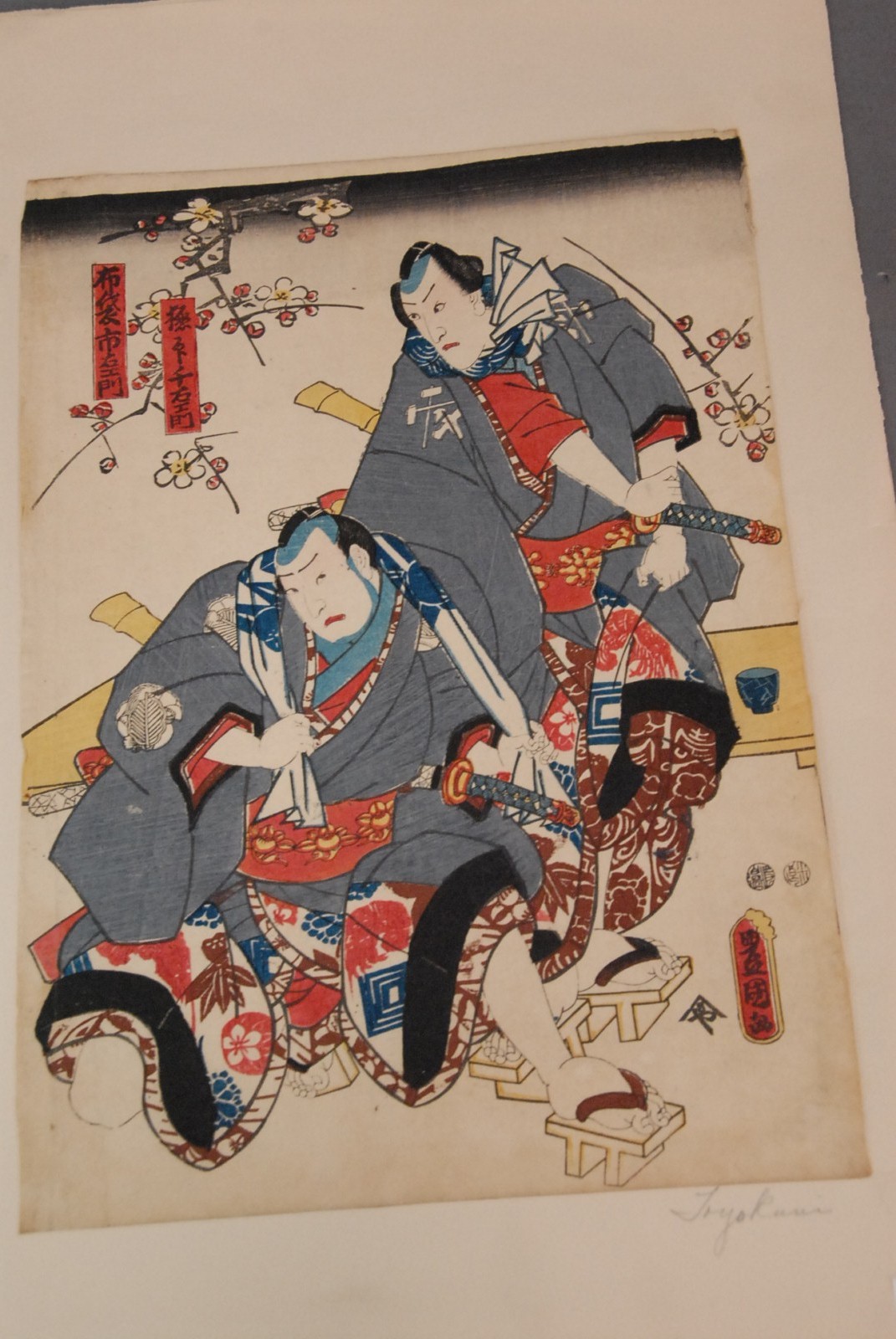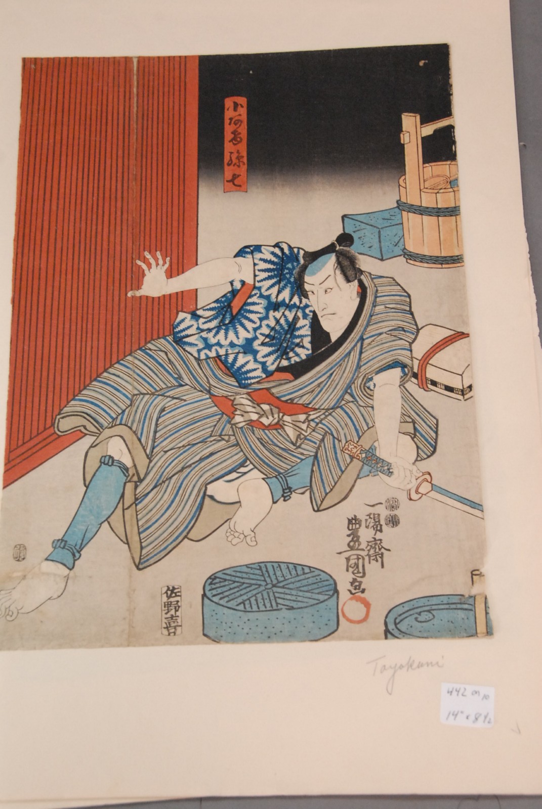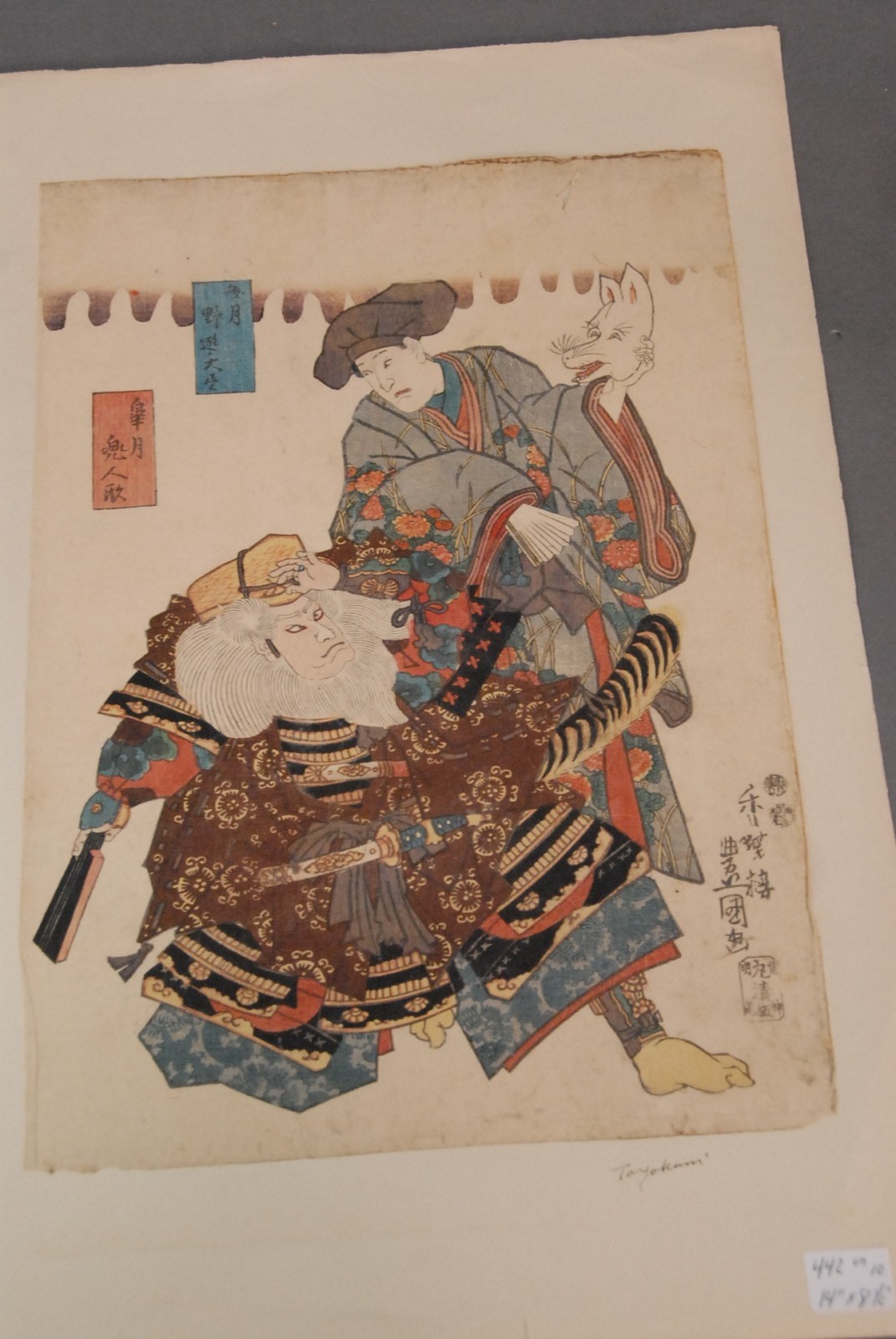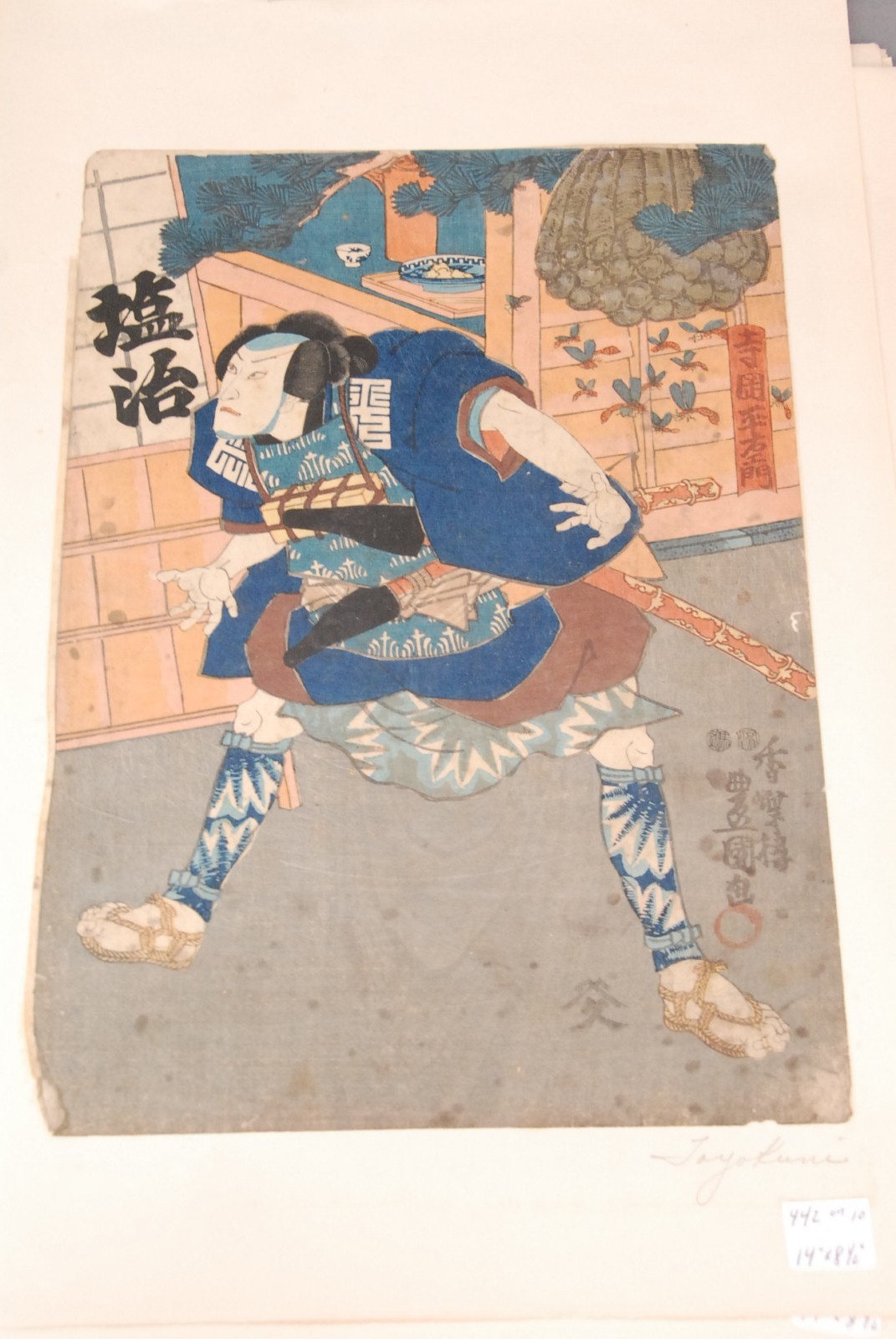 Ten Japanese woodblock prints, pencil signed Toyokuni.