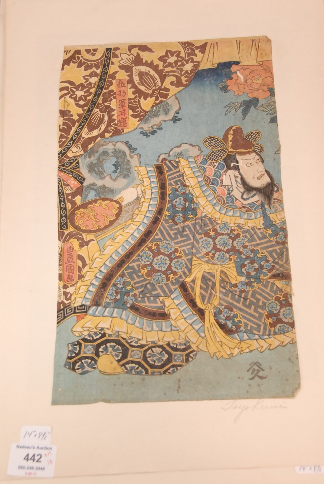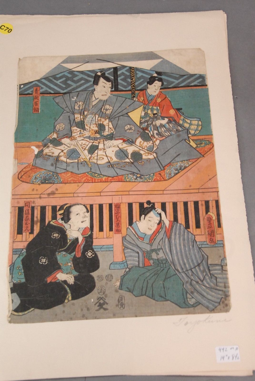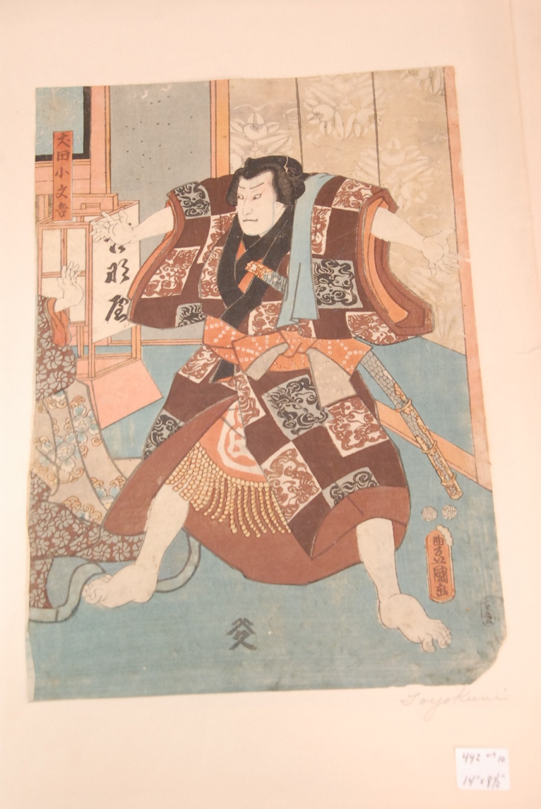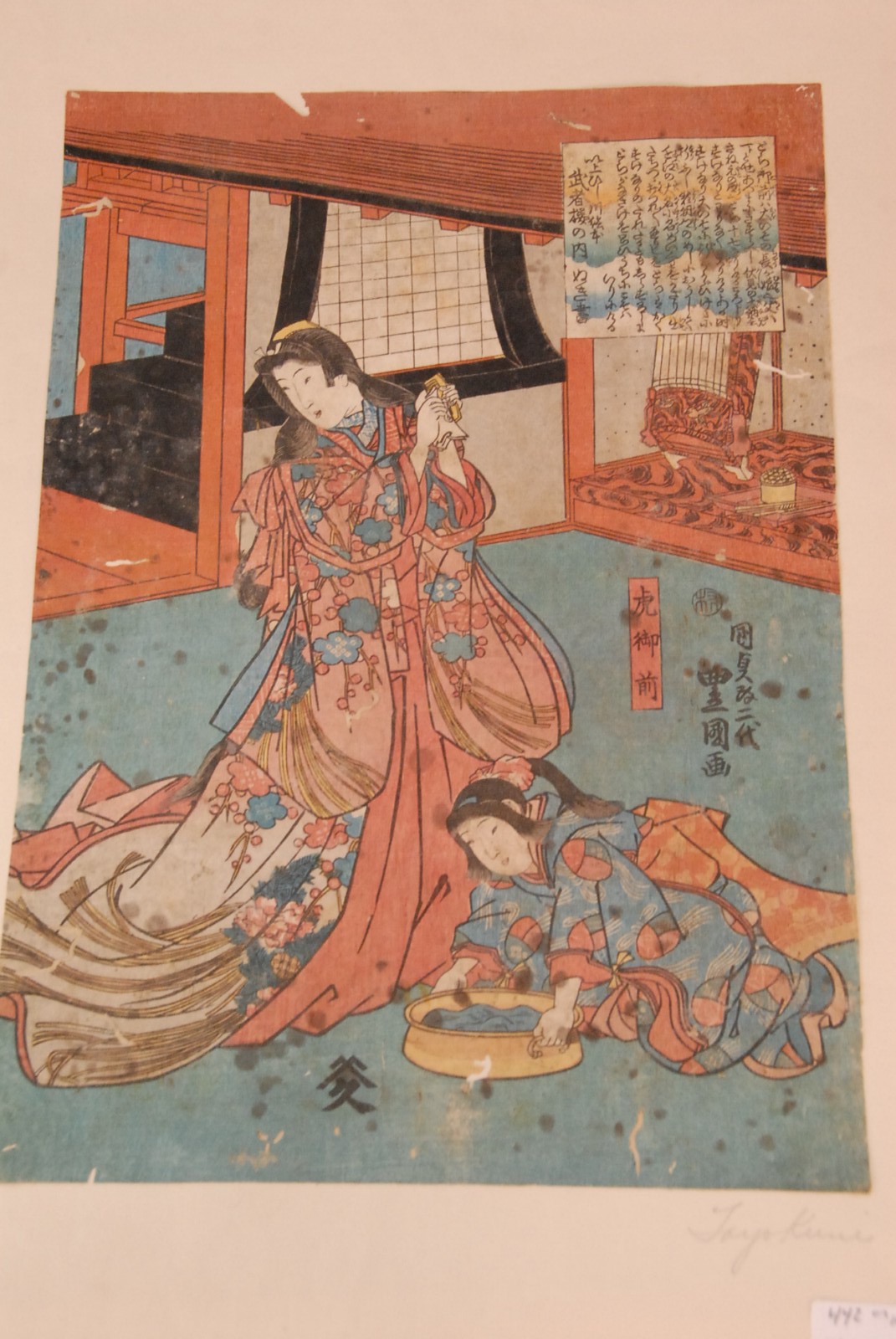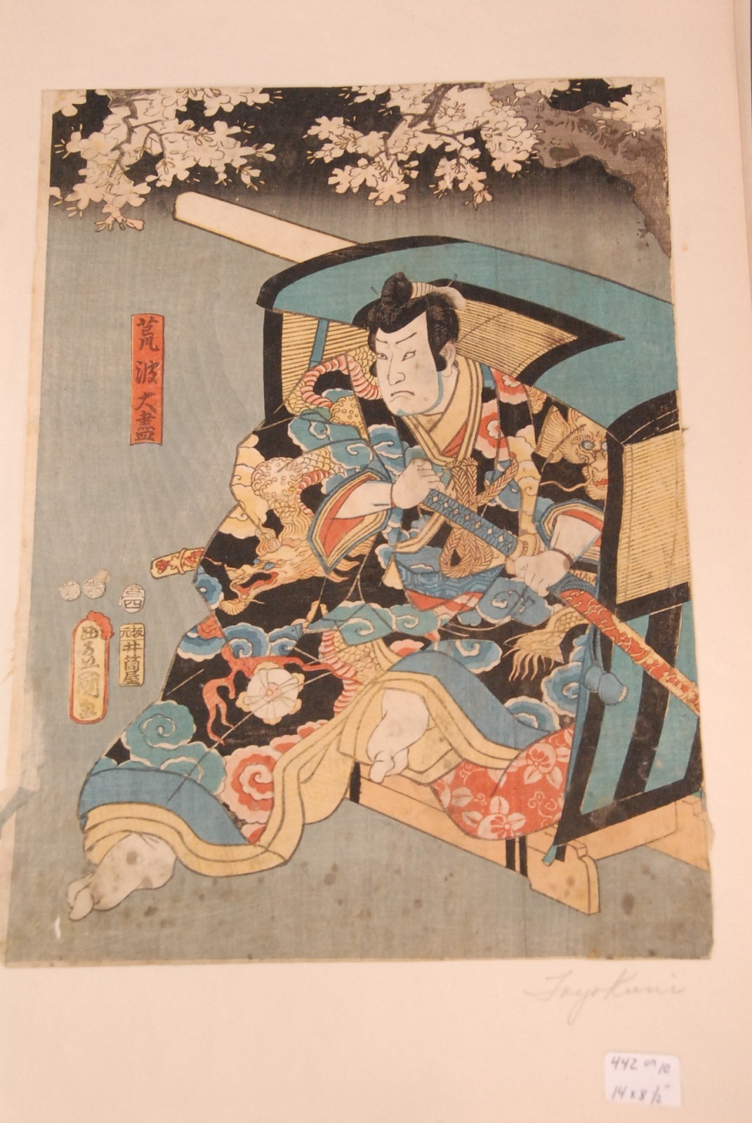 Ten Japanese woodblock prints, pencil signed Toyokuni.