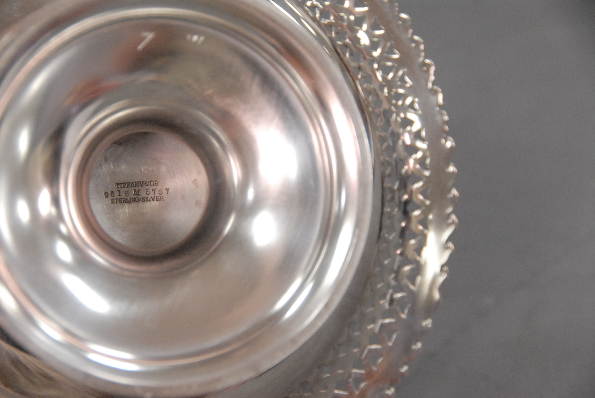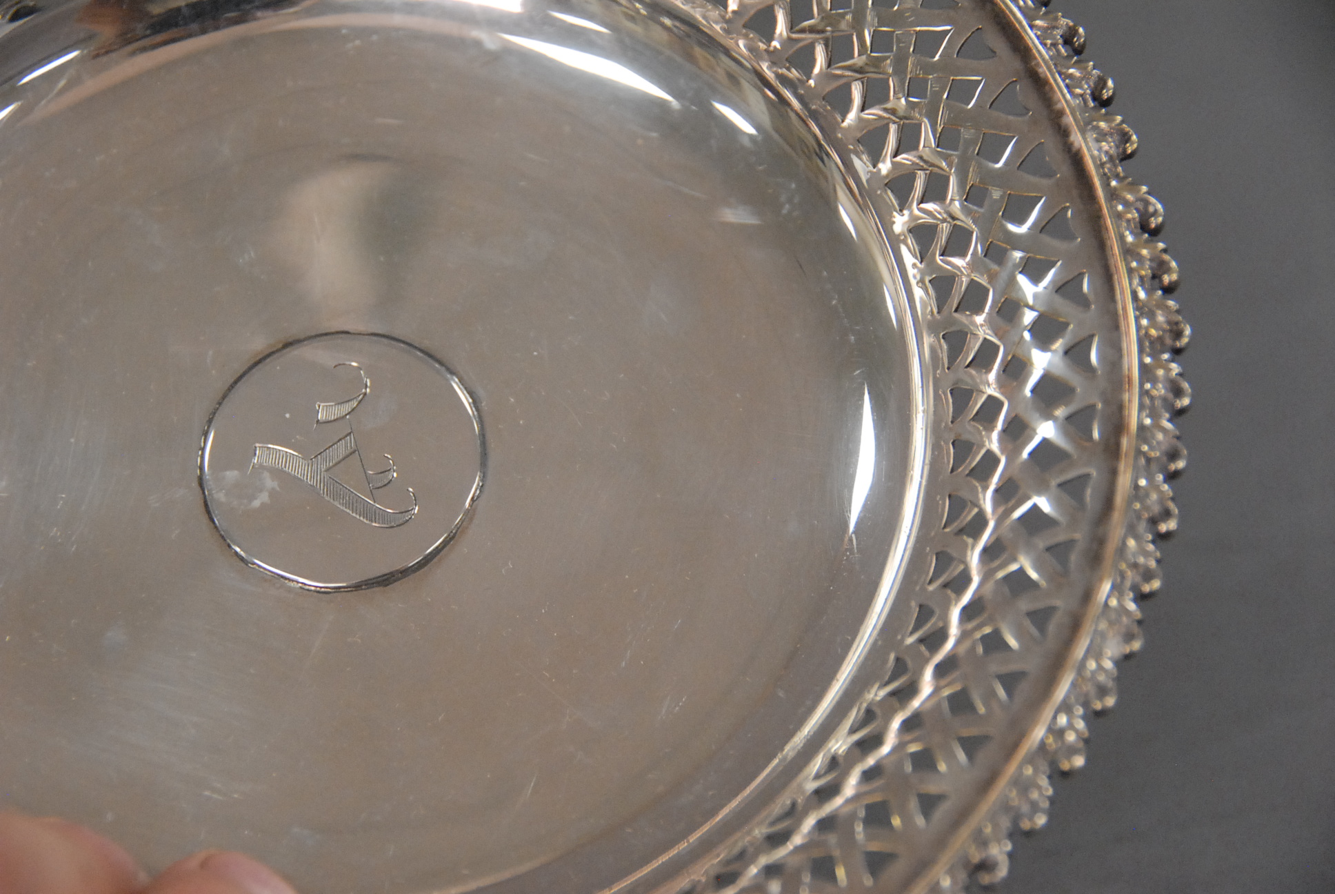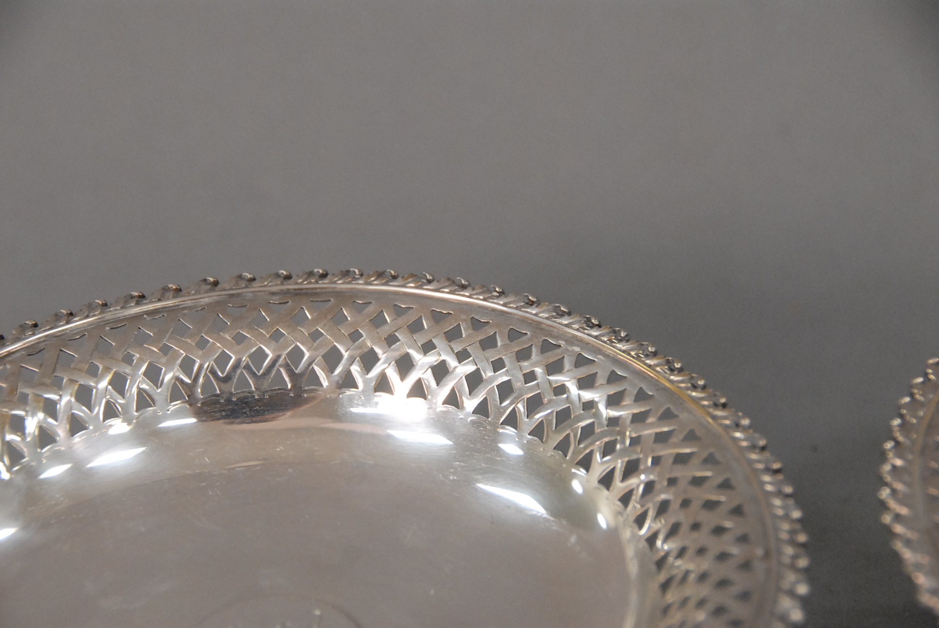 Tiffany & Co. pair of sterling silver compotes with reticulated edges, monogrammed.