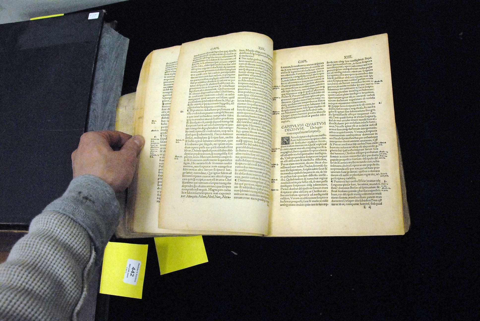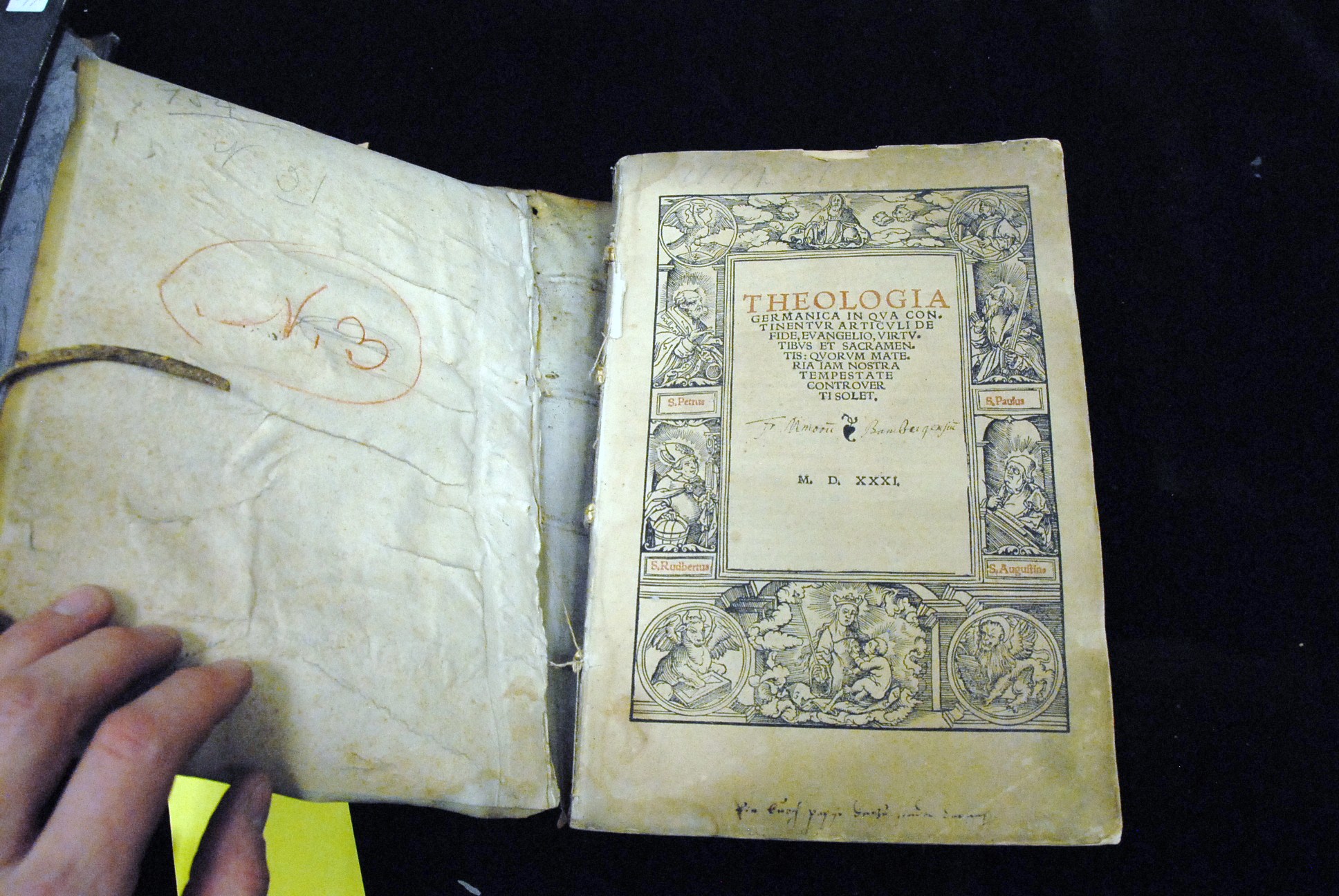 Hyde covered German bible, 1531, Theologia Germanieain Qua Con.