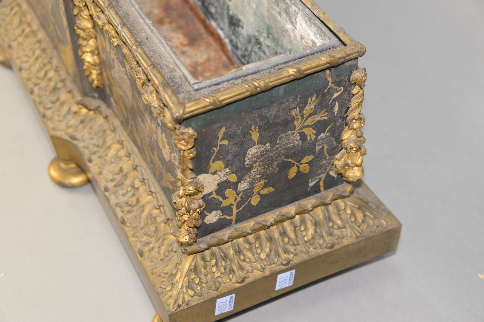 Lot 443: Large Victorian Dore Bronze Rectangular Planter having brass and silvered flower and bird design, bronze garland and flower mounts…