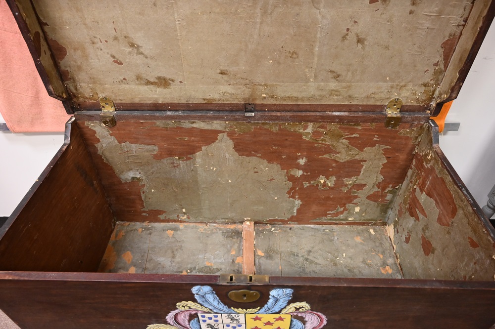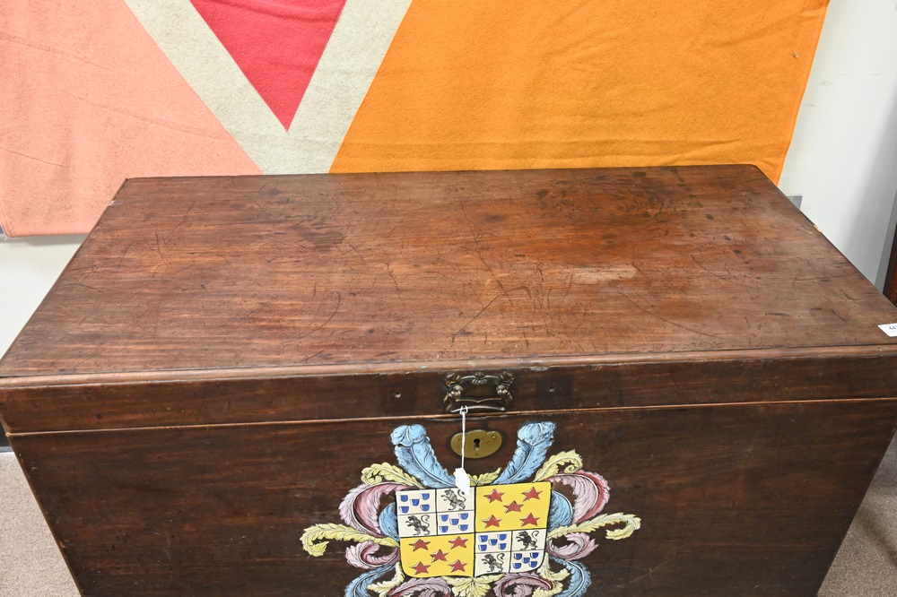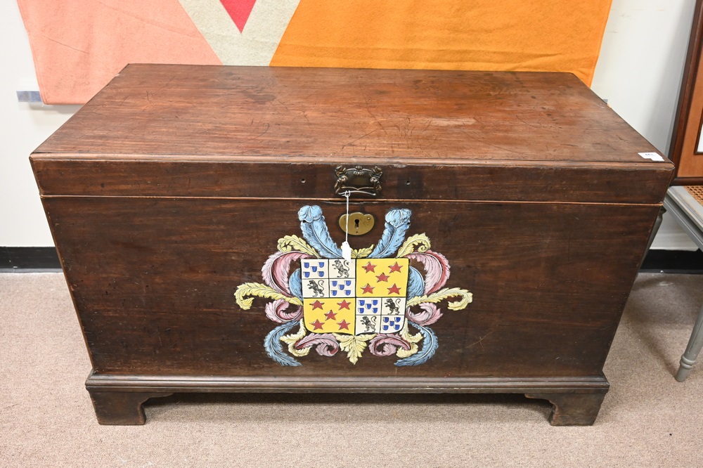 Lot 443: Mahogany Lift Top Chest, on bracket feet, early 19th century, height 28 inches, top 23 x 48 inches.