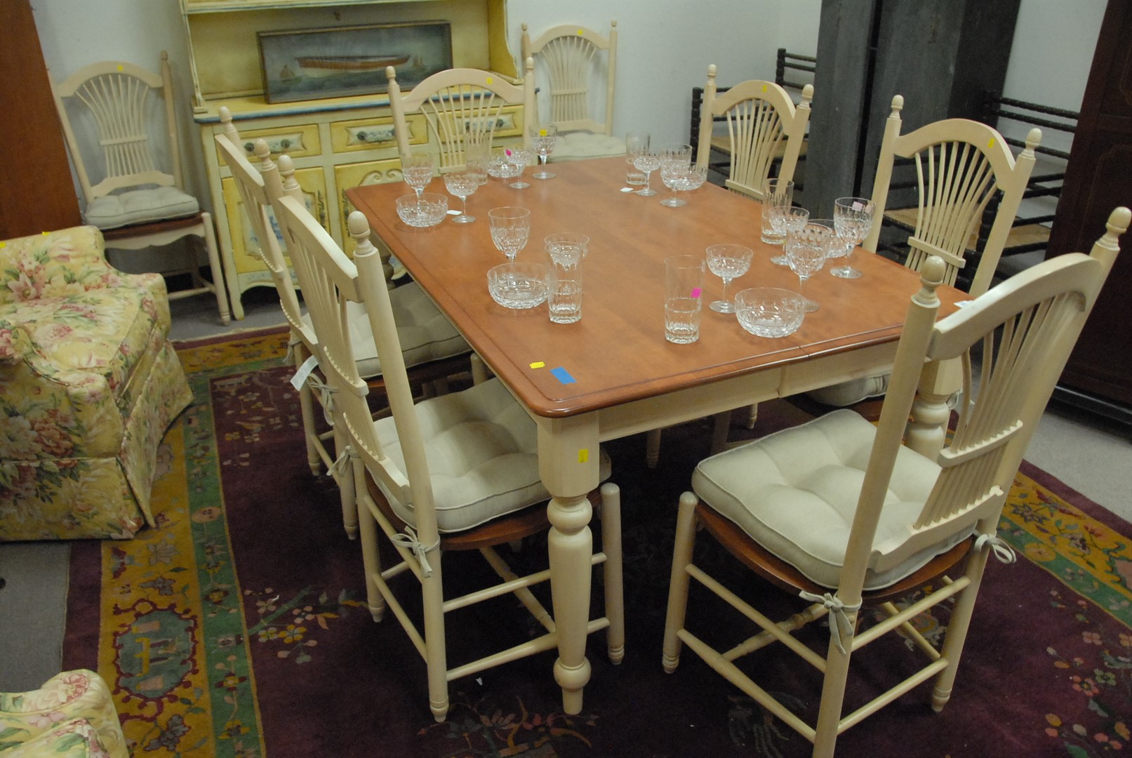 Lot 443: Nine piece contemporary dining set with eight chairs. ht. 29 1/2 in. top: 49 x 60 opens to 60 x 60