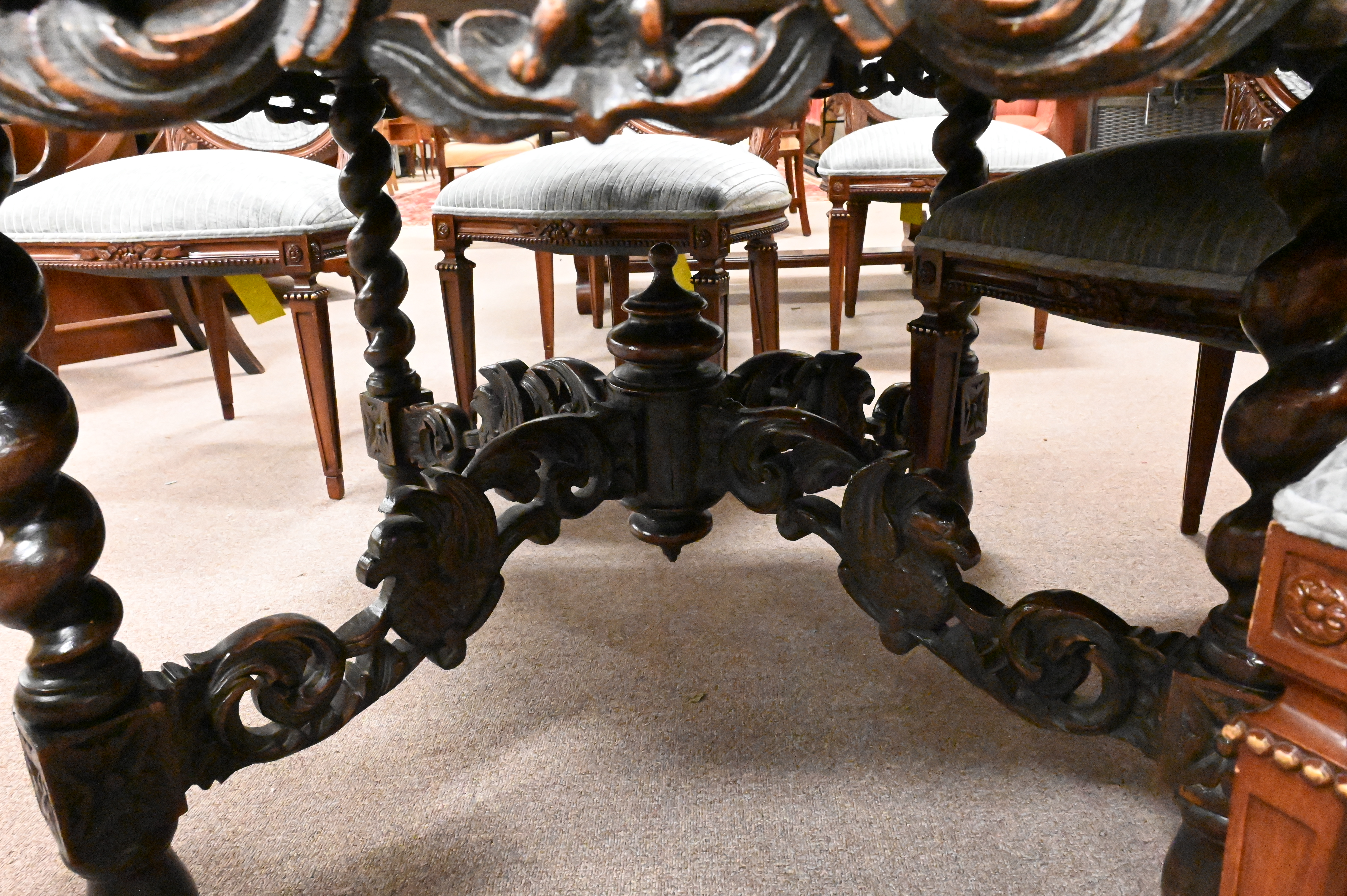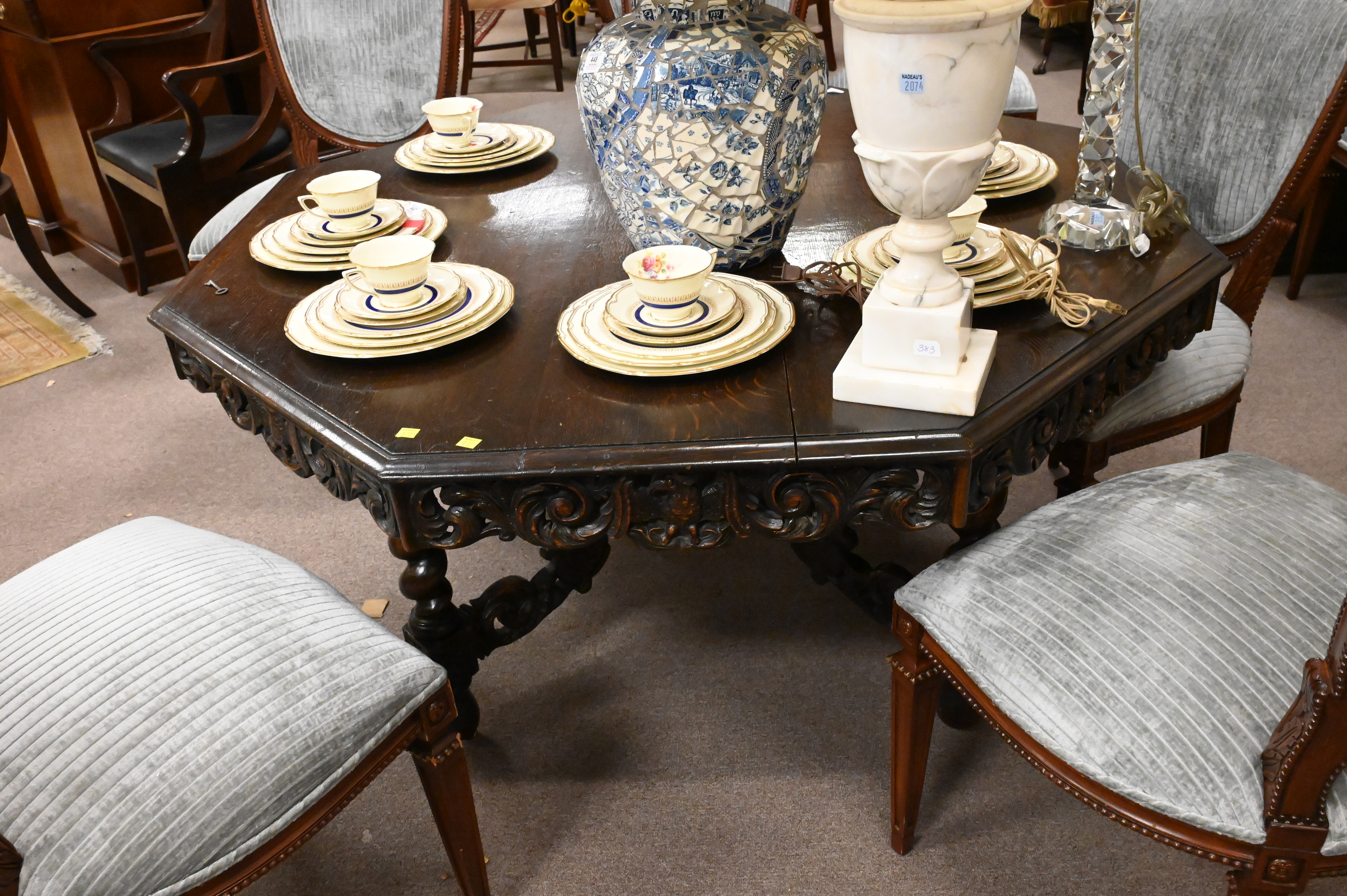 Oak Octagon Table, with carved skirt and base, height 27 inches, diameter 53 inches