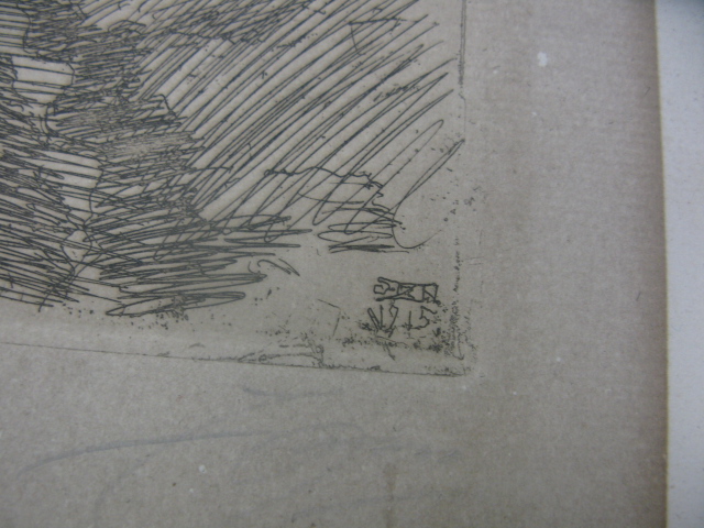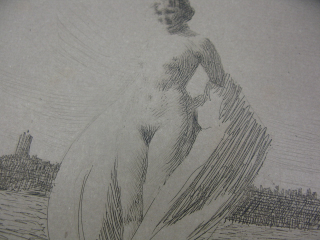 Anders Zorn 1860-1920, etching, nude draped female, 7.5 X 9.5 plate, full paper, losses to margins, foxing and discoloration