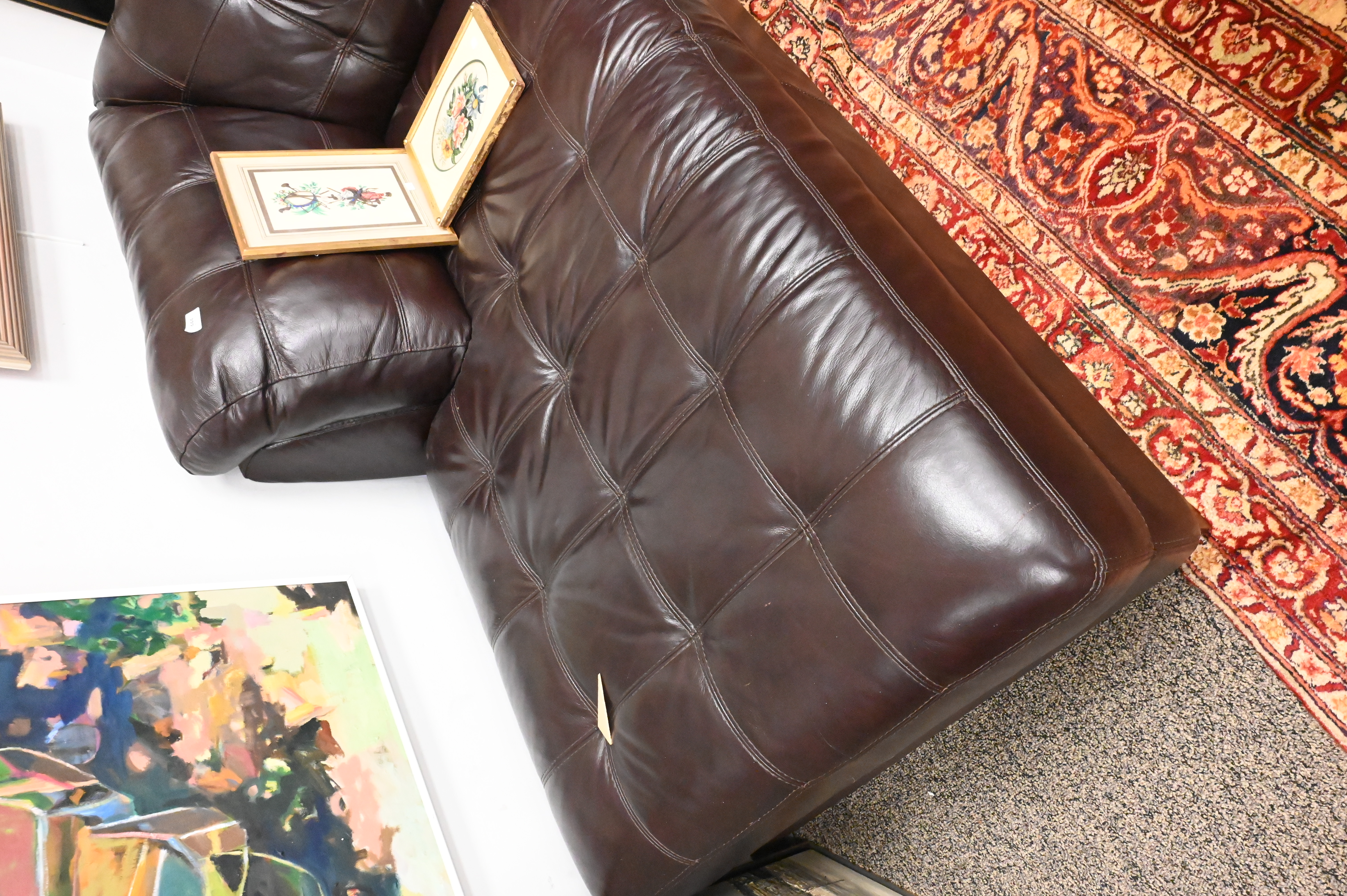 Lot 444: Brown Tufted Leather Chaise Lounge