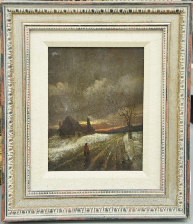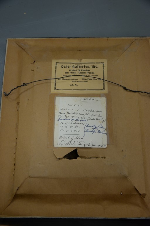Lot 444: Dubois Fenelon Hasbrouck American 1860-1934, figure in road, oil on canvas, Legere Gallery White Plains, NY label, 7 1/2 x 5 1/2.