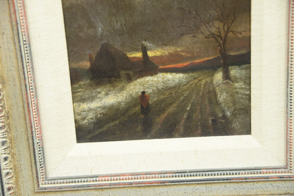 Dubois Fenelon Hasbrouck American 1860-1934, figure in road, oil on canvas, Legere Gallery White Plains, NY label, 7 1/2 x 5 1/2.