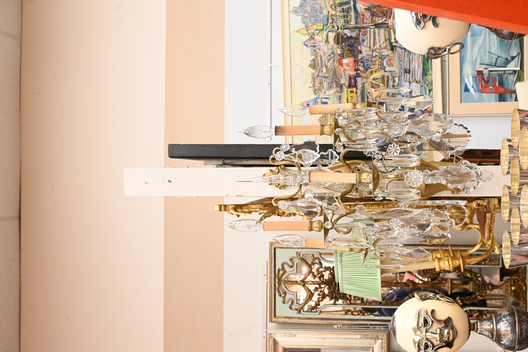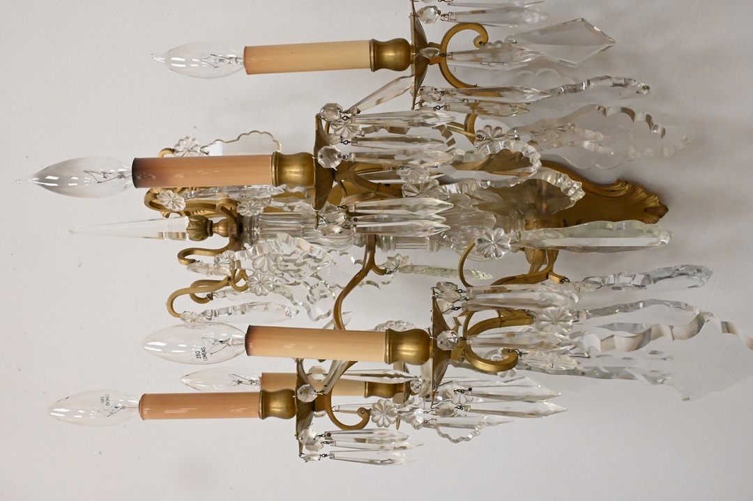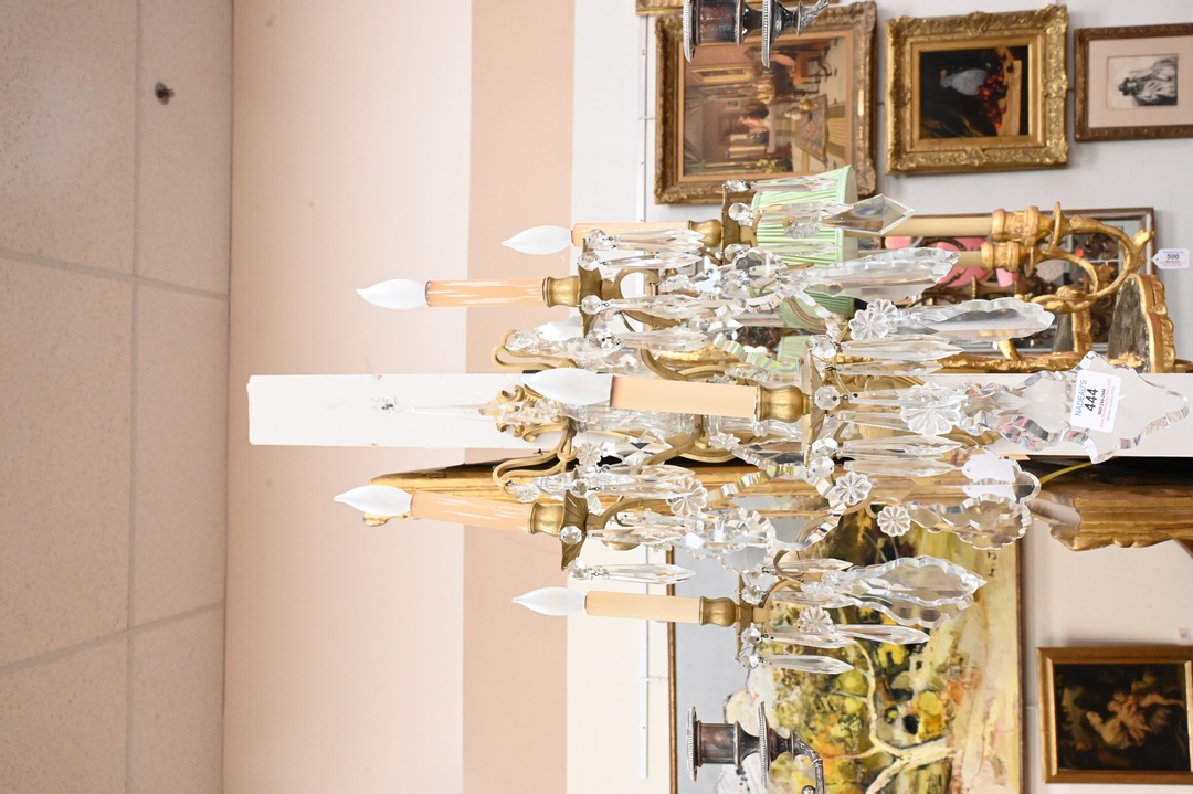 Lot 444: Pair of Gilt Bronze and Cut Glass Five Light Sconces