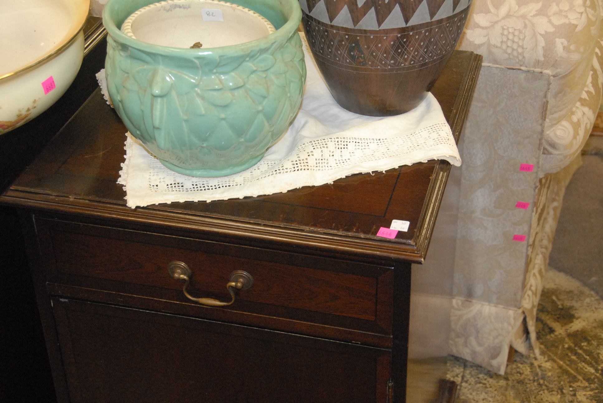Pair of mahogany one drawer over one door stands, ht. 30, wd. 20.
