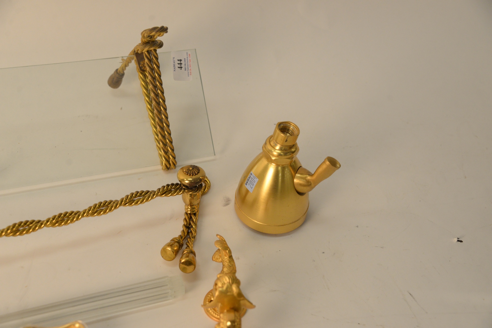 Lot 444: Seven Piece Lot of Bathroom Hardware, attributed to Sherle Wagner, to include two towel racks; one towel ring; one glass shelf; a shower head; along with a soap dish. Provenance: The Estate of Alina Roisen, Park Avenue, New York.