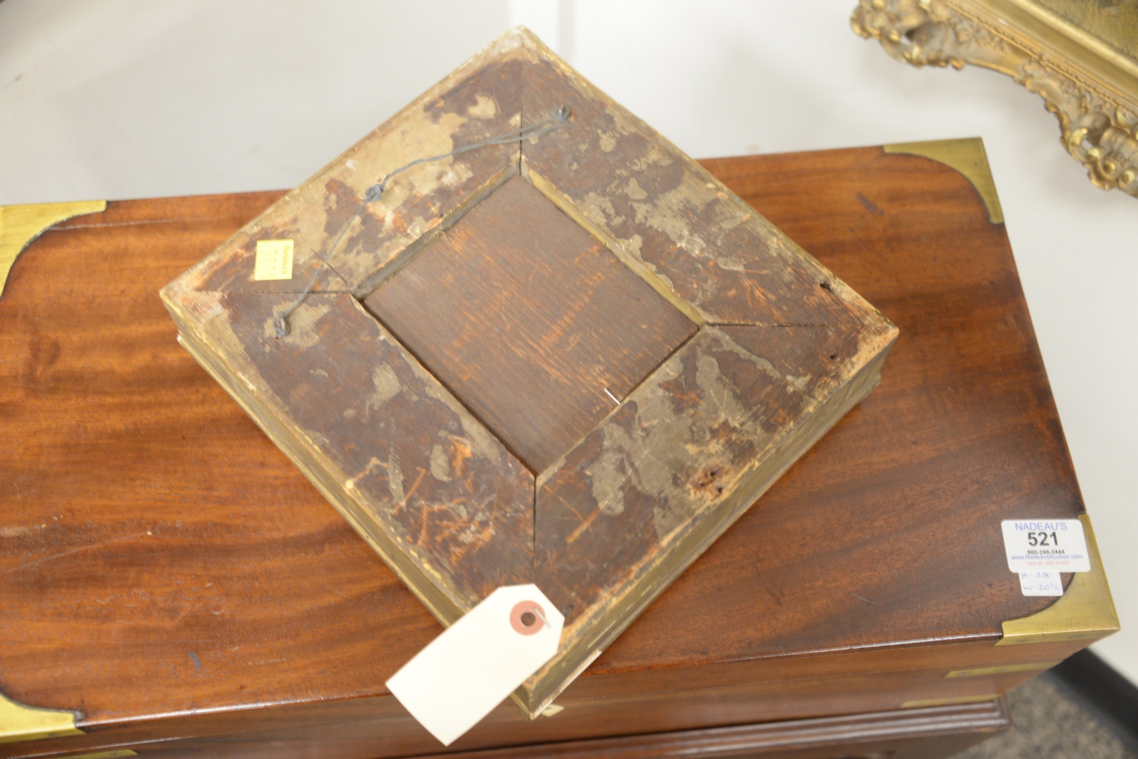 Lot 445: American School early 19th Century Pair of Primitive portraits of a man and a woman, watercolor, in deep gilt frame, image 3 x 2 1/4.