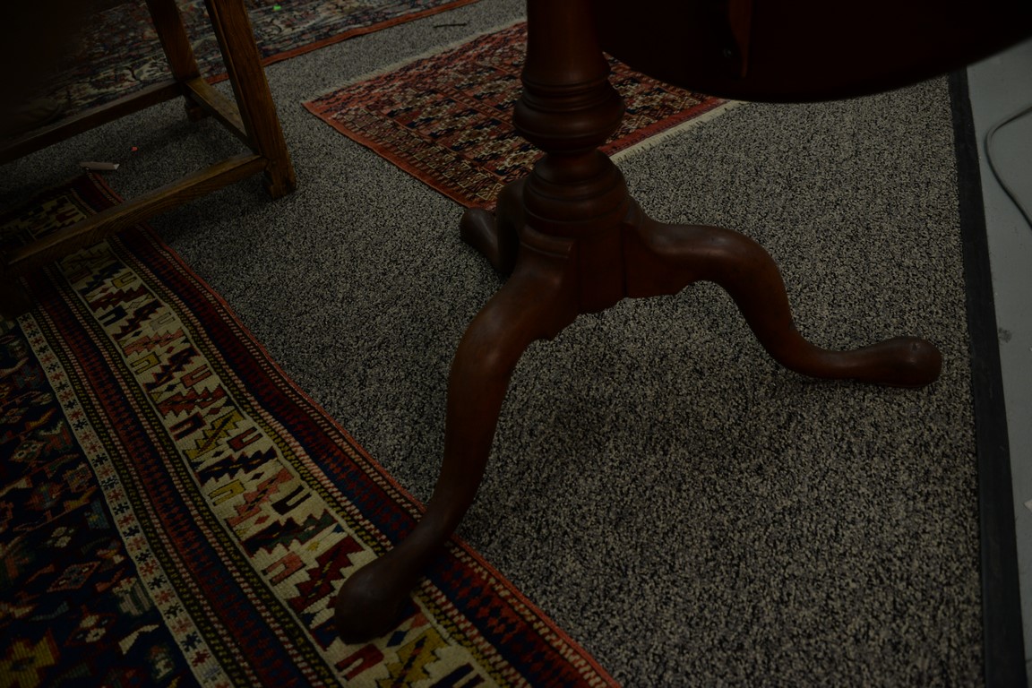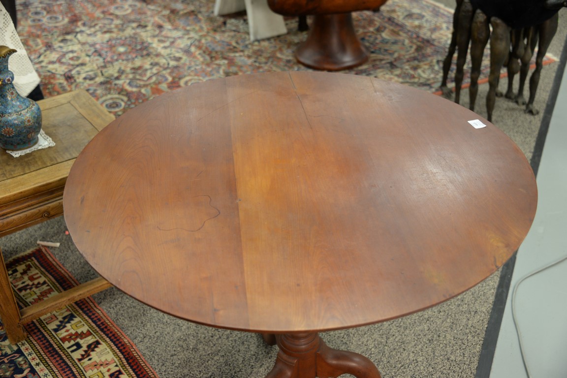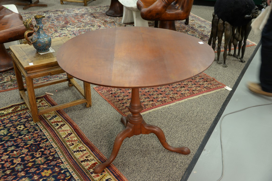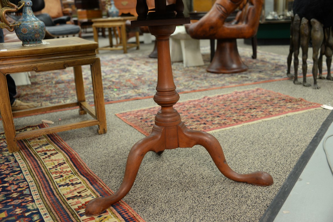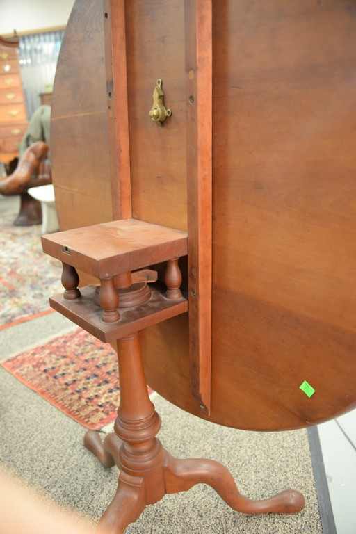 Lot 445: Cherry Chapin tea table having round top on birdcage set on turned shaft set on tripod base, attributed to Eliphalet Chapin, East Wi…