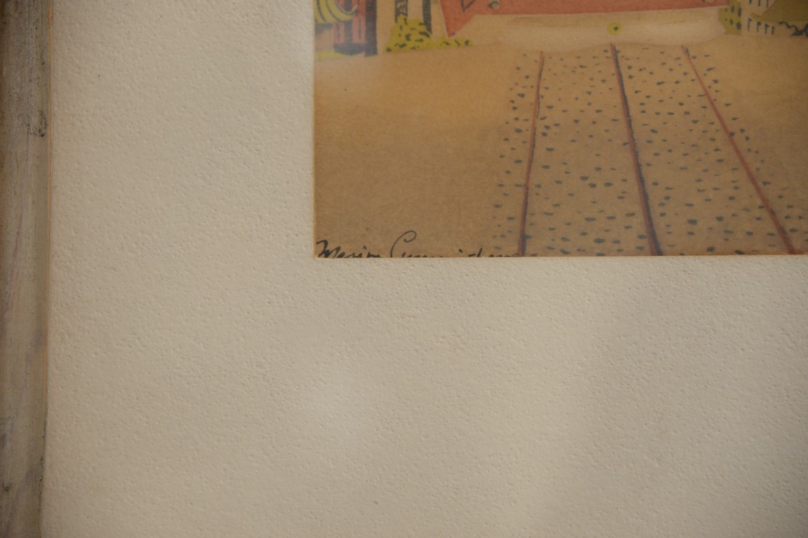 Four framed pieces to include a pair of George Traver 1864-1928 watercolors, Autumn and Spring Morning, signed Geo A Traver, and a pair of Marion Cunningham serigraphs. all approximately 7 1/2 x 5 1/2 Provenance: Estate of Arthur C. Pinto, MD