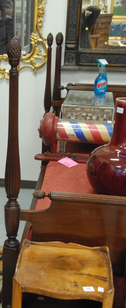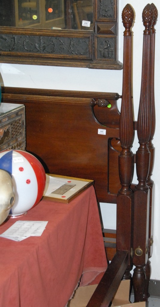 Pair of Margolis twin four post beds with pineapple tops and fluted posts, unsigned.
