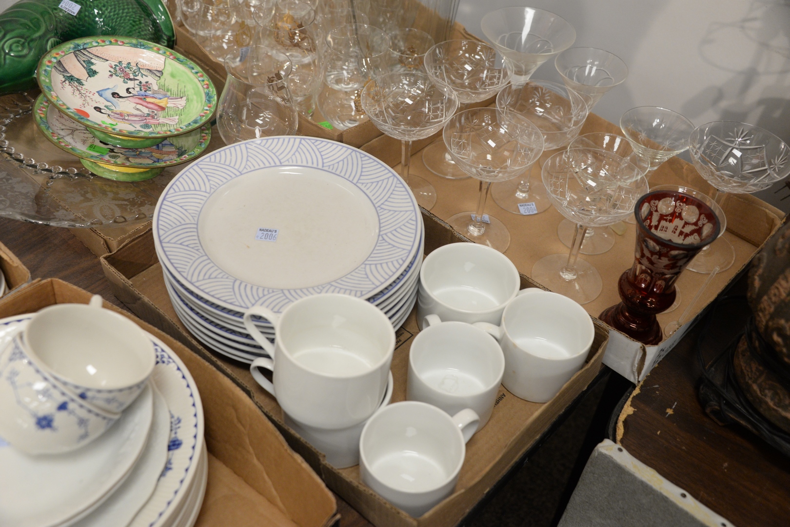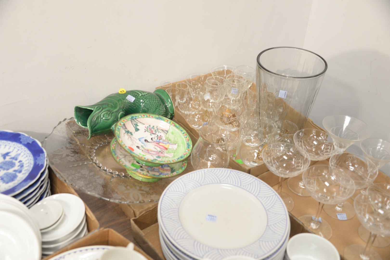 Lot 445: Six Tray Lots of Crystal Stems, China, along with enameled Chinese Compotes, etc. Provenance: The Estate of Alina Roisen, Park Avenue, New York.