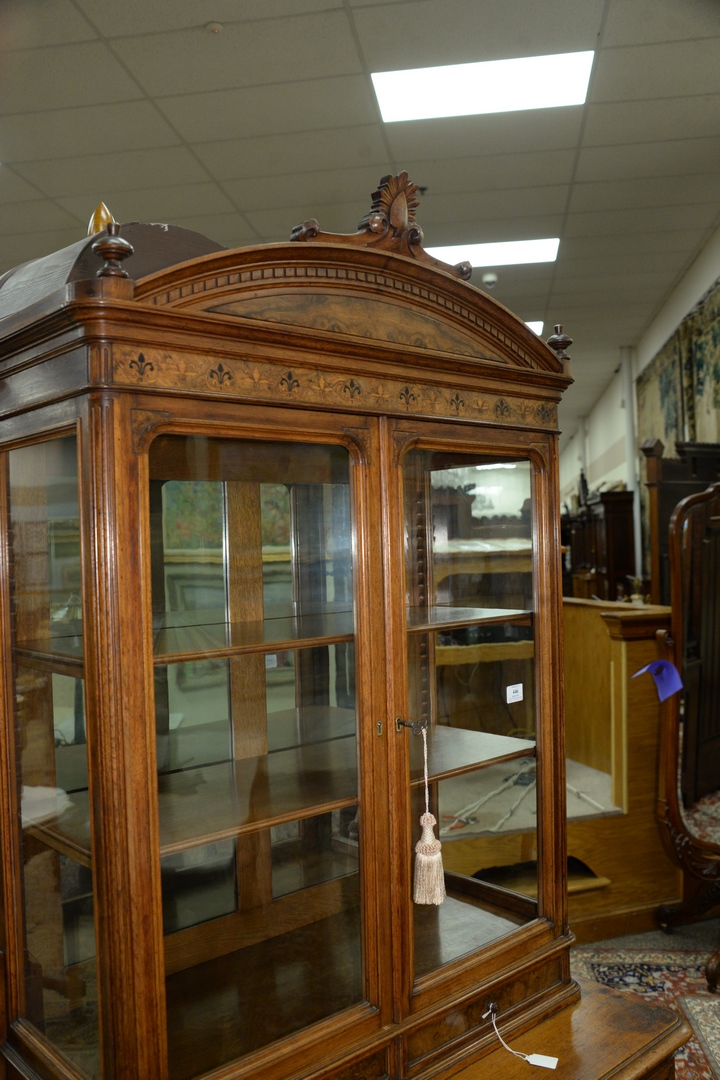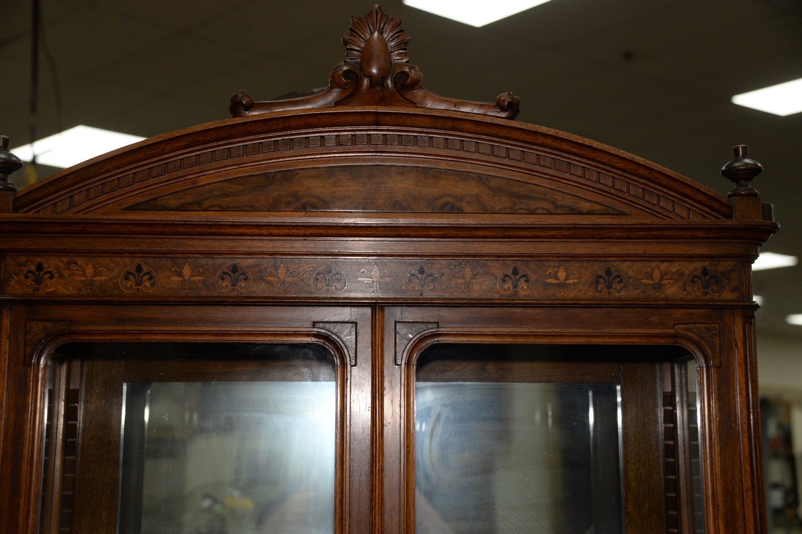 Lot 446: Aesthetic Walnut Cabinet with two doors over two drawers over pull-out writing surface set on fluted legs with stretcher base, top a…