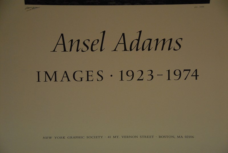 Ansel Adams poster Images 1923-1974 Moonrise, Hernandez N.M. 1944 with N.Y. Graphics Society label, poster signed Ansel Adams 201/350 36 x 25