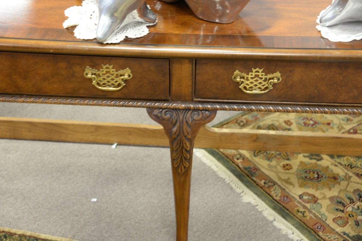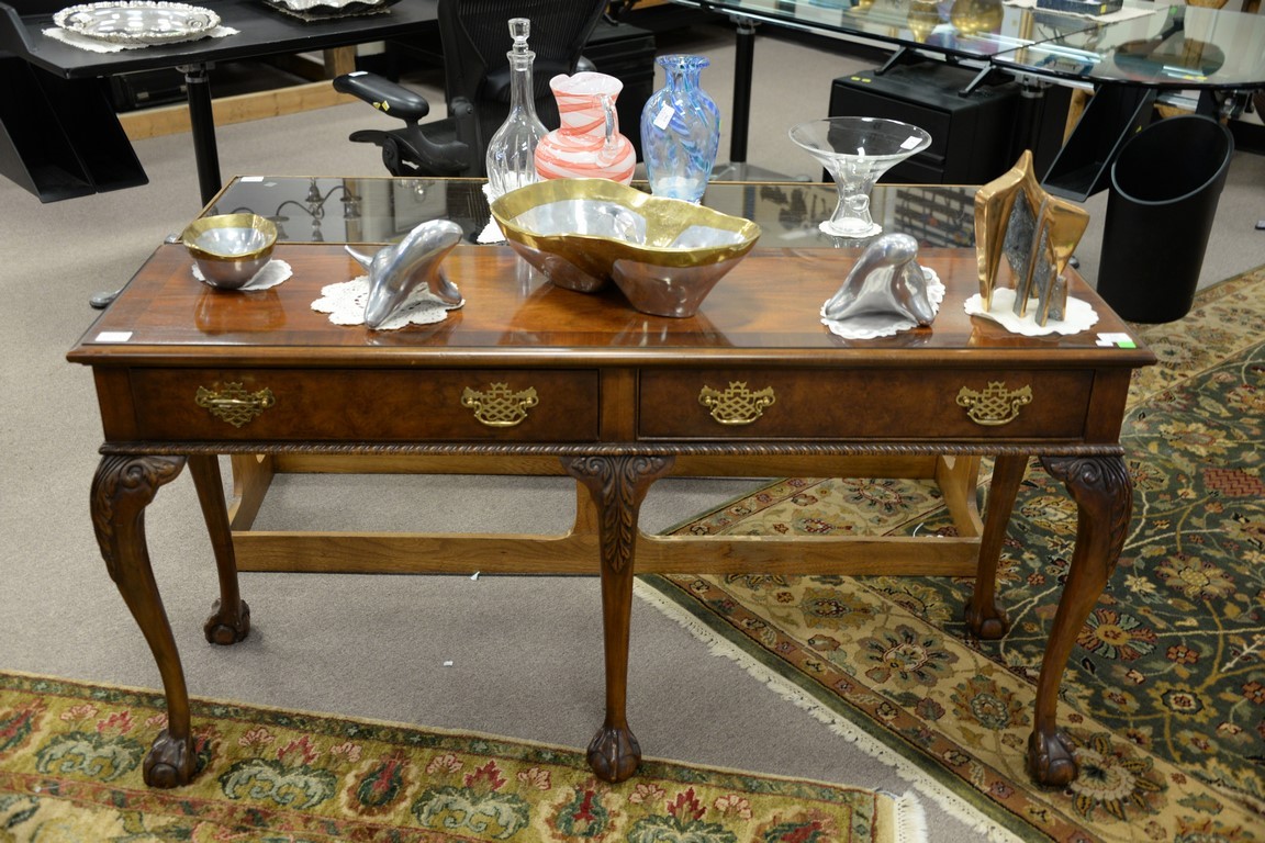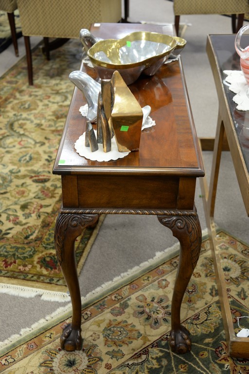 Lot 446: Baker mahogany server/hall table with ball and claw feet. ht. 28in., top: 16 x 54
