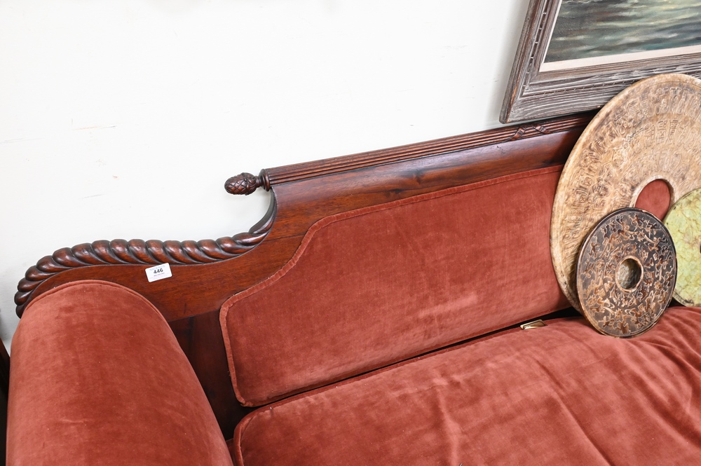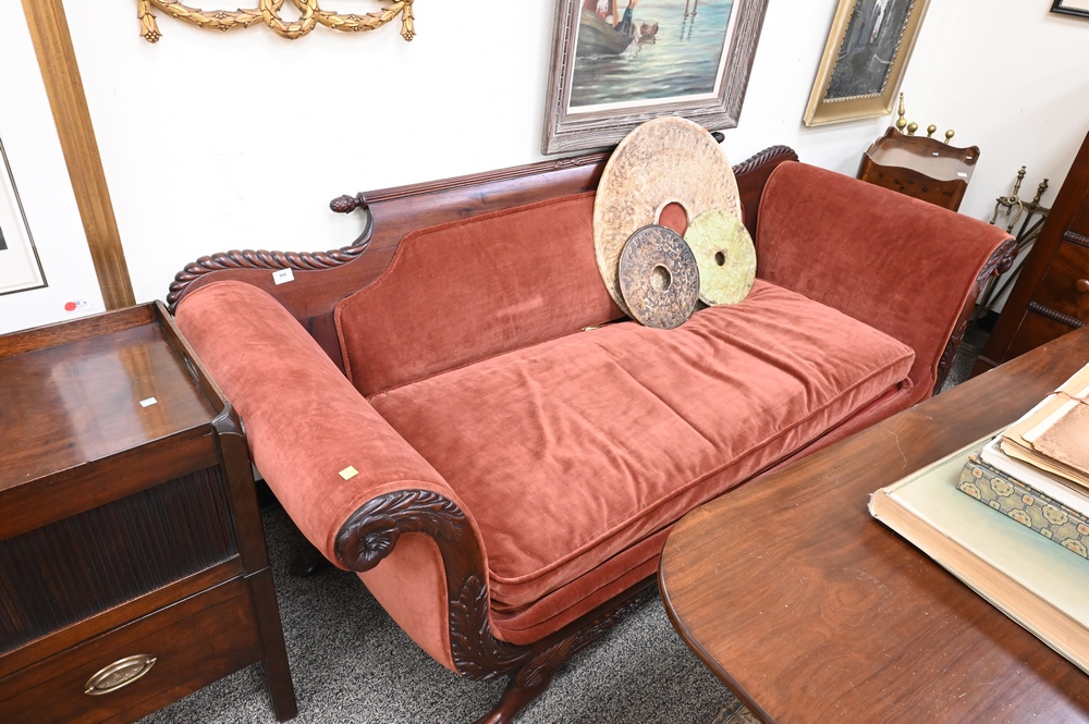 Lot 446: Federal Style Mahogany Sofa, having paw feet, length 79 inches.