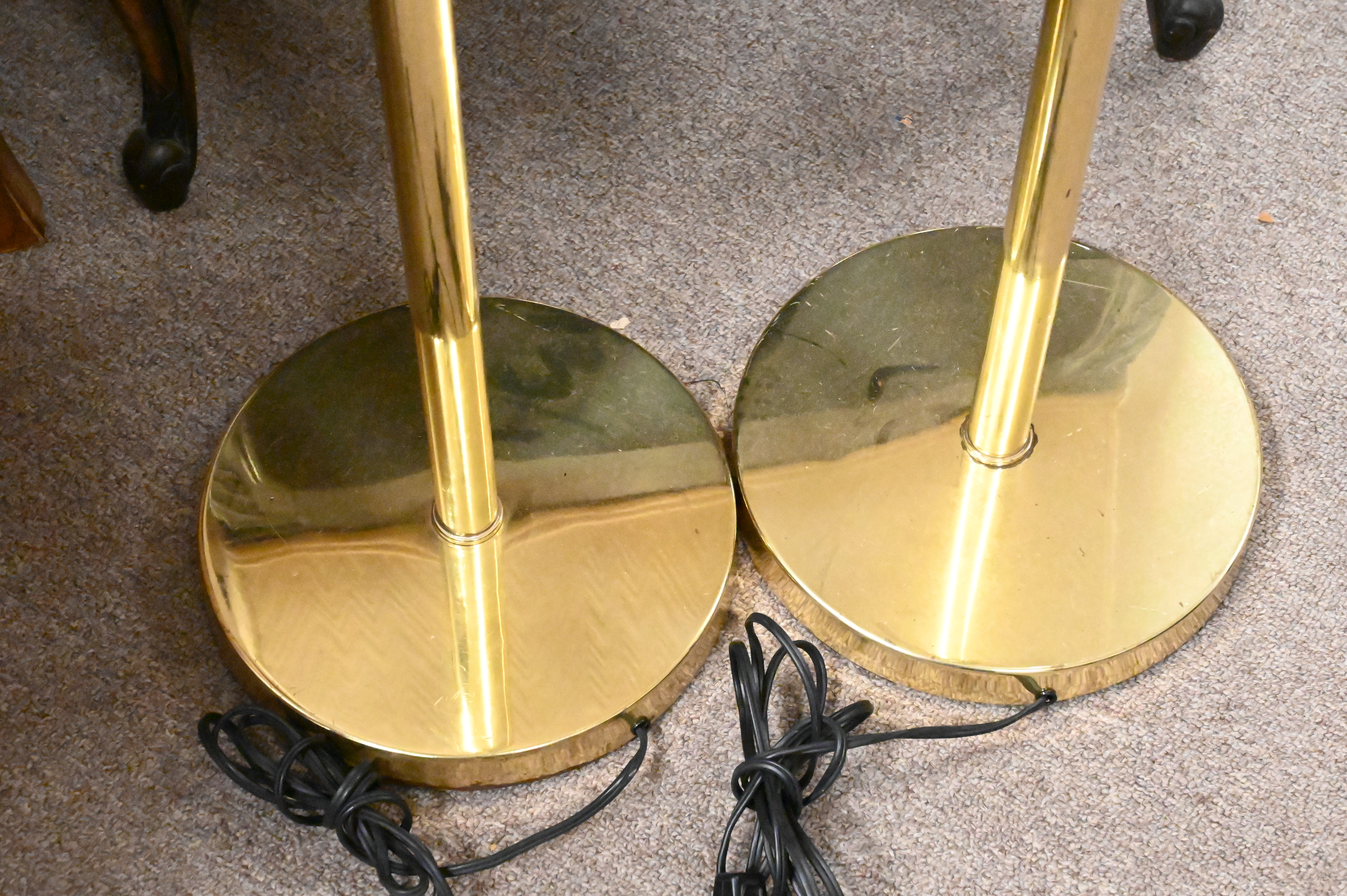 Four Brass Adjustable Floor Lamps, two are matched pair, one with square base. Tallest approx 43 inches.