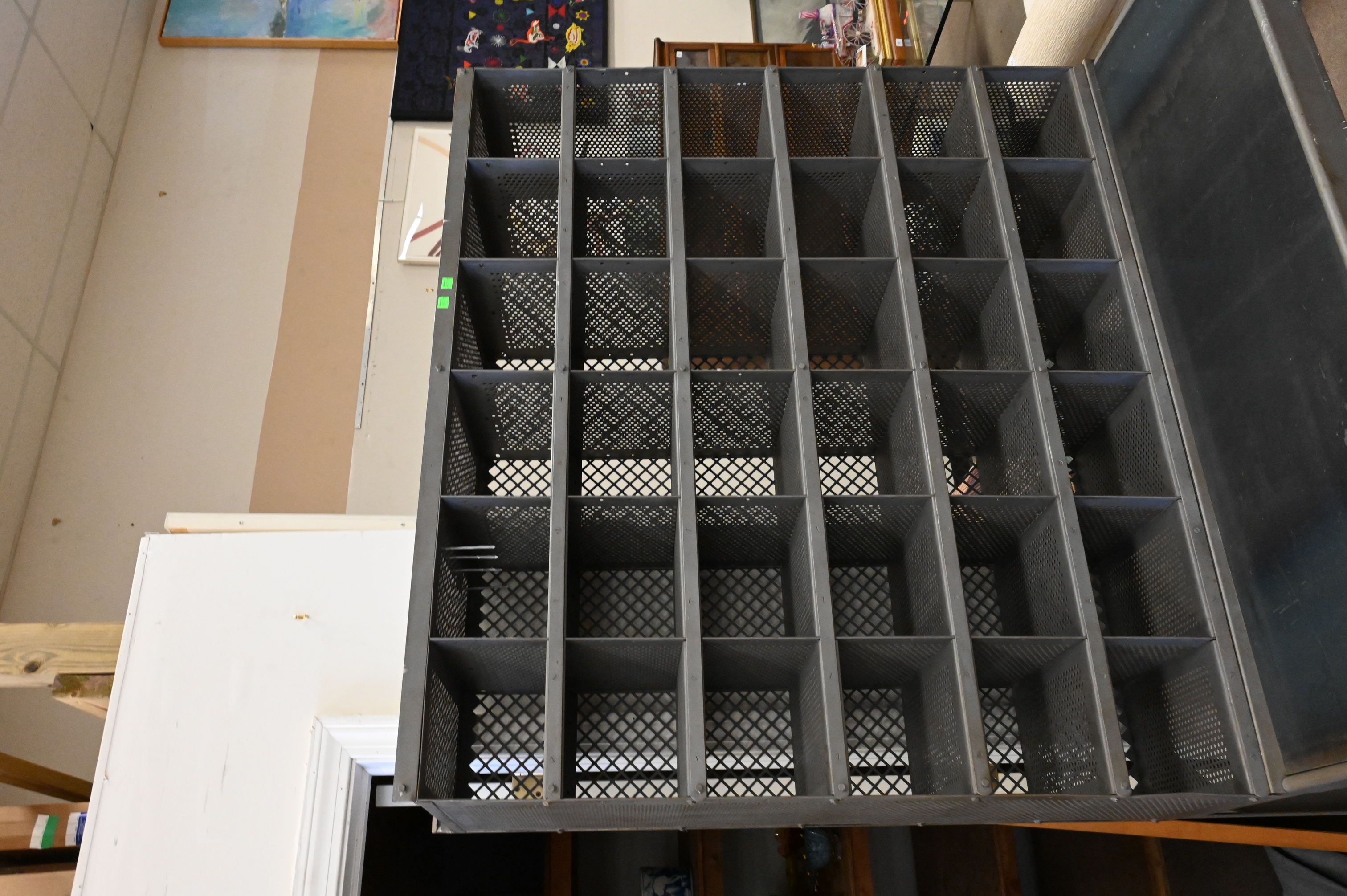 Lot 446: Industrial Metal Mail Slot Holder on Desk